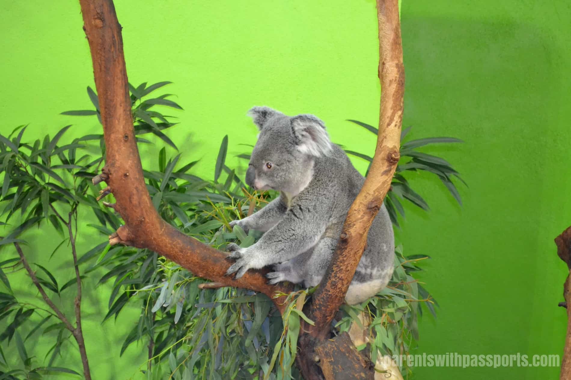 Some of the boys’ favorite animals are housed indoors so that breaks up the outdoor time as well. The penguins, gorillas, and koalas are all viewed from indoor locations. The penguins and gorillas also have animal demonstrations if you want to time your visit: the penguin presentation is at 11:30 and the gorilla feeding at 1:30. The koalas do not have a demonstration but you can get extremely close to them for excellent viewing opportunities. They definitely aren’t the most dynamic animals to watch but boy are they cute! We even had the rare opportunity to see one awake and on the move (albeit very slowly).