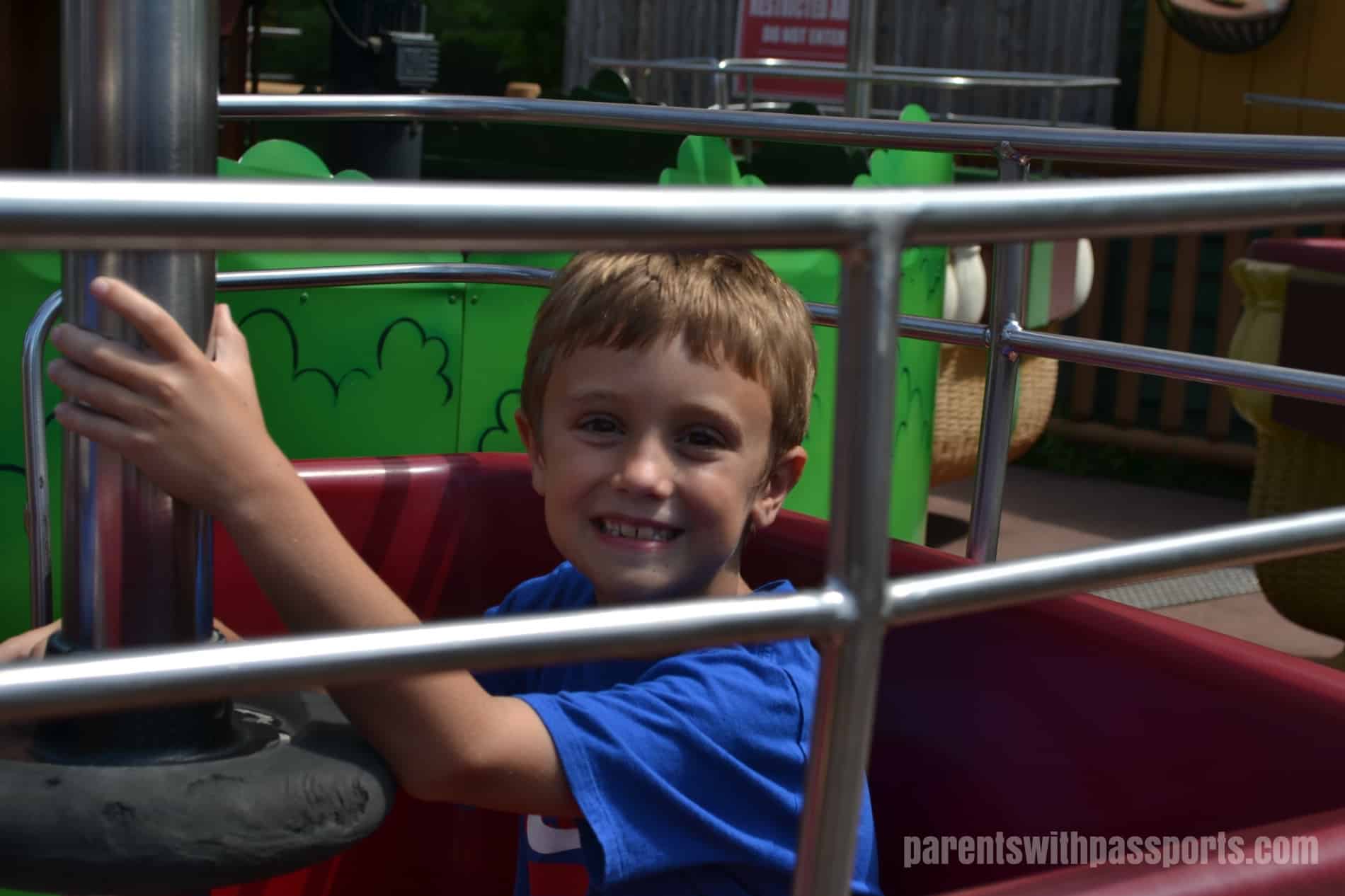 All told, we spent over two hours on the safari and it was the highlight of our visit. We only went on a handful of rides after that. I found the park layout with 10 different lands to be somewhat confusing because there was no centralized area for kids rides. Several of the lands (like Adventure Seaport and Frontier Adventures) had their own kids areas with a group of rides for the younger set, but it would have been easier if there had been one single land with all the little kid rides together in one place. We hit a few rides and then gave up on navigating all over the park to get to more, and the kids were totally fine with that. Since we had kids of varying ages (we were there with cousins) and varying ride experience, it was for the best that nobody was especially interested in rides.