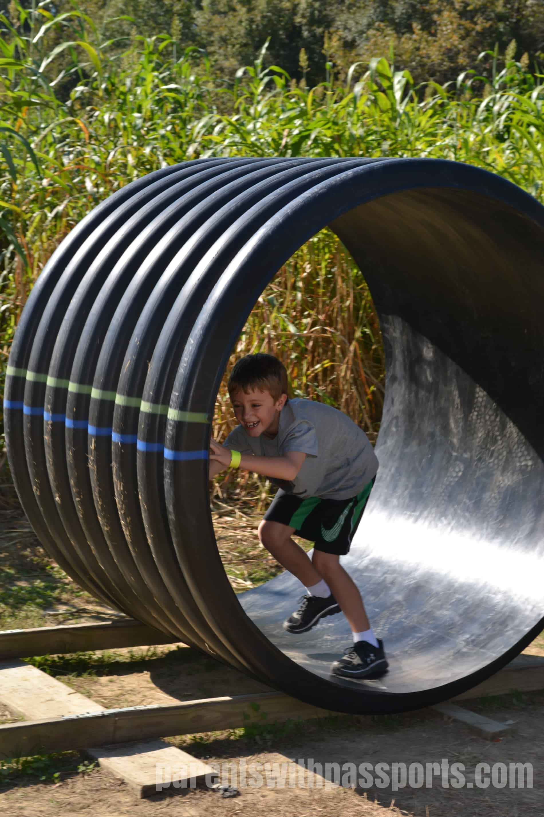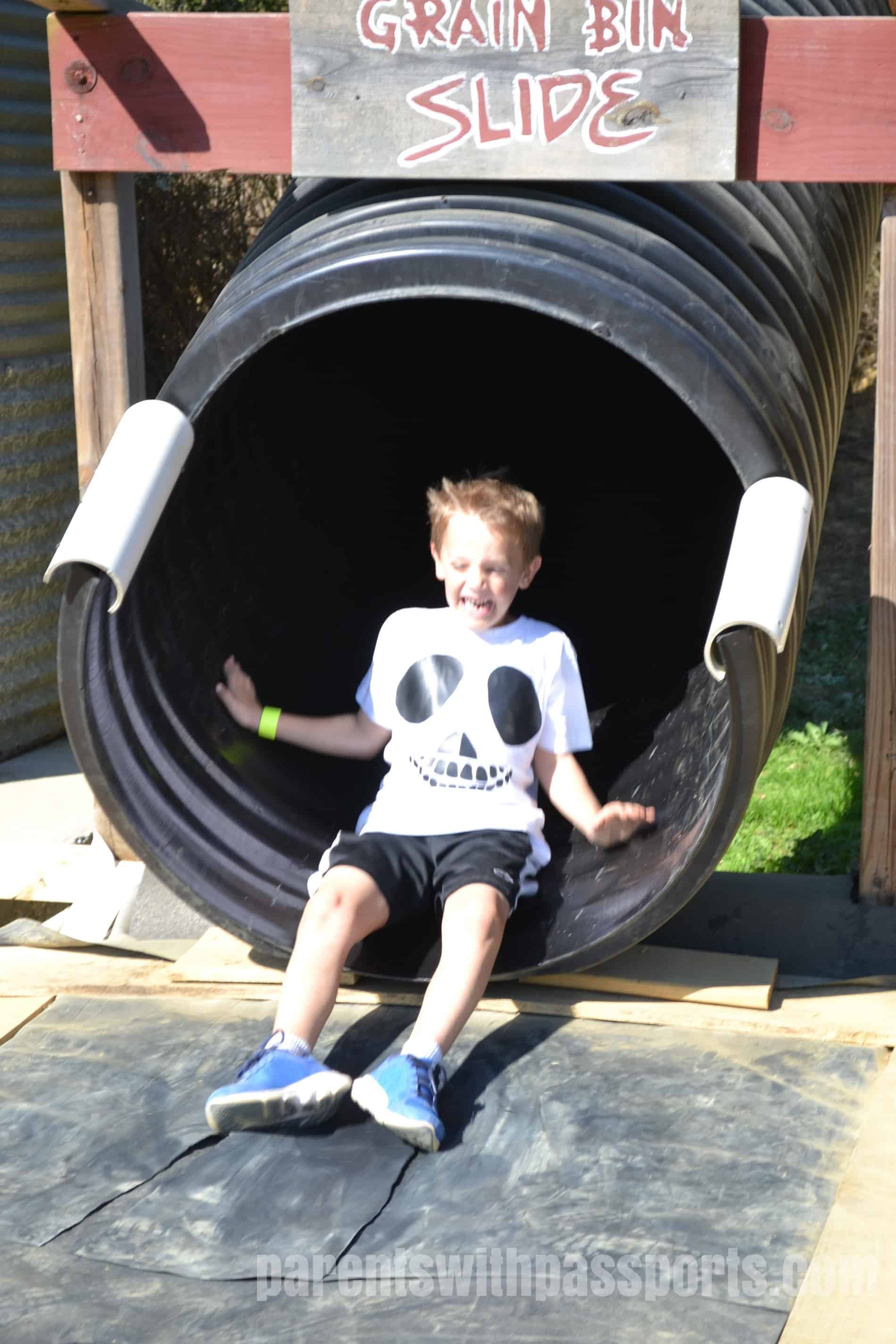 Some of our long-time favorite activities at the farm include the Tumbleweed Roll, the Grain Bin Slide, the Animal Barn, the Hay Bales and Fort Shucks. New this year was Human Foosball and gem mining – both a big hit with our older son.