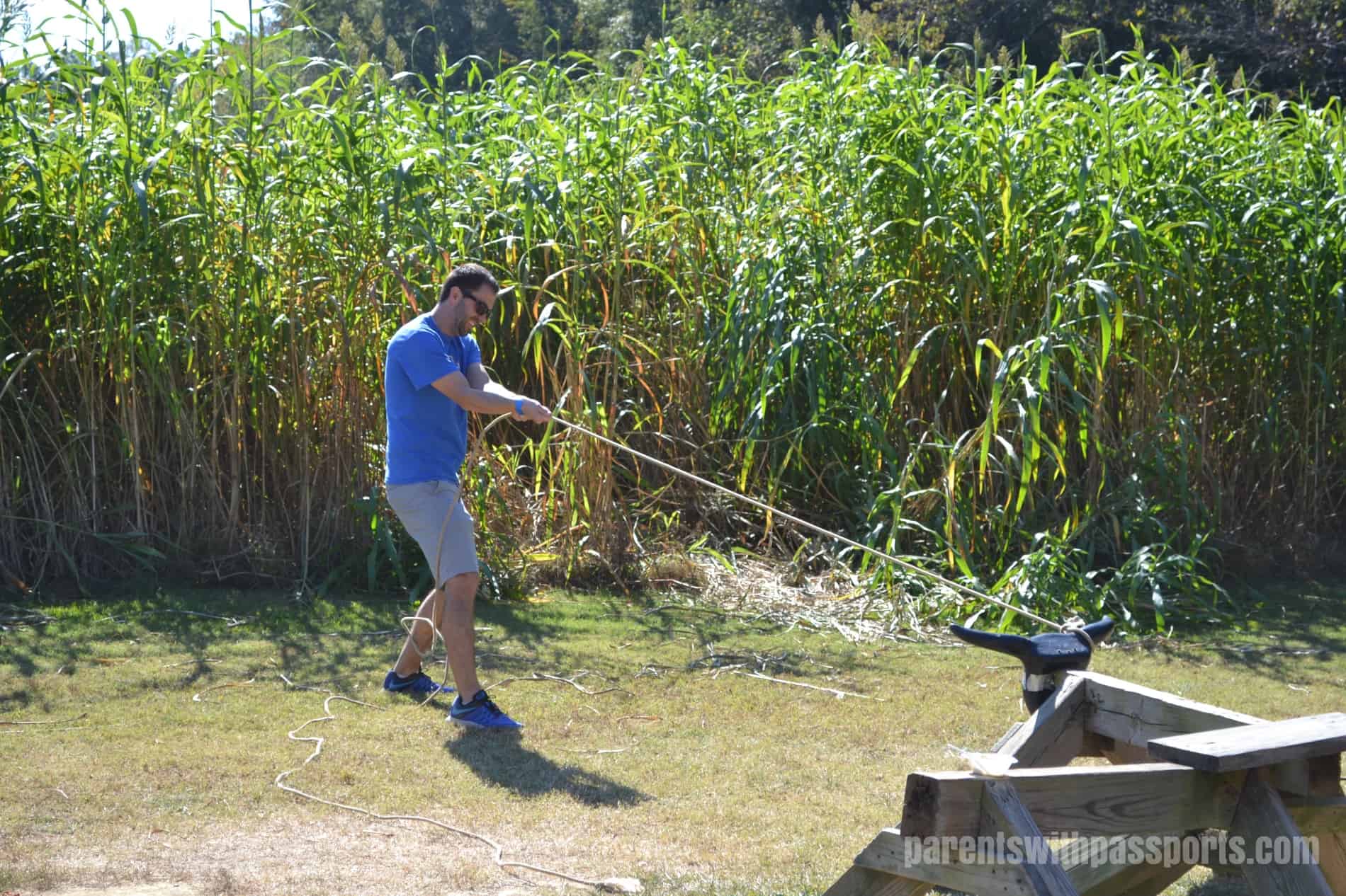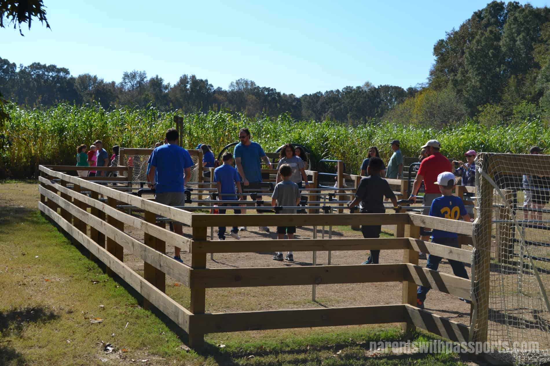 The main attraction is always the corn maze. The AW Shucks corn maze strikes a great balance between being challenging enough for older kids but not too overwhelming for younger ones. Each year it has a different theme – this year was the state of NC with the word “home” across it. You can get a (slightly) birds eye view from the viewing platform and then grab a map and head in. It usually takes less than half an hour to complete. There was one year where I think the kids forged their own path out through the corn stalks, but otherwise we have had great success there.