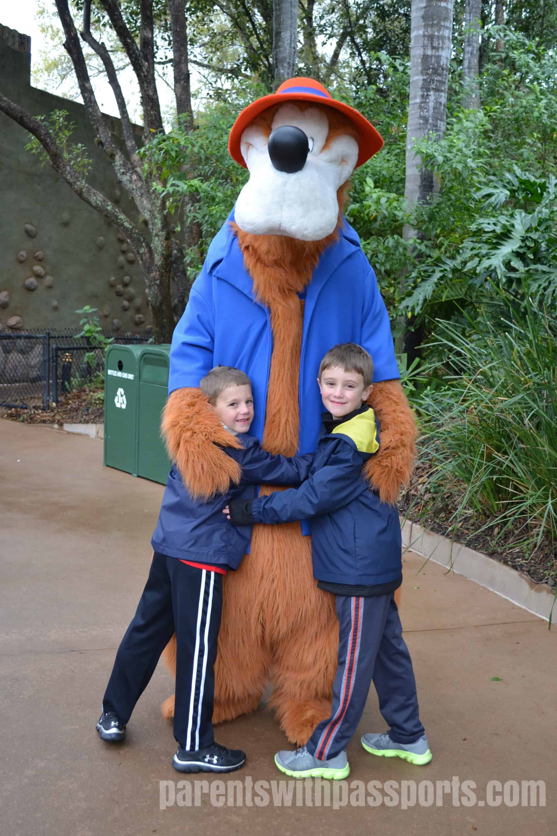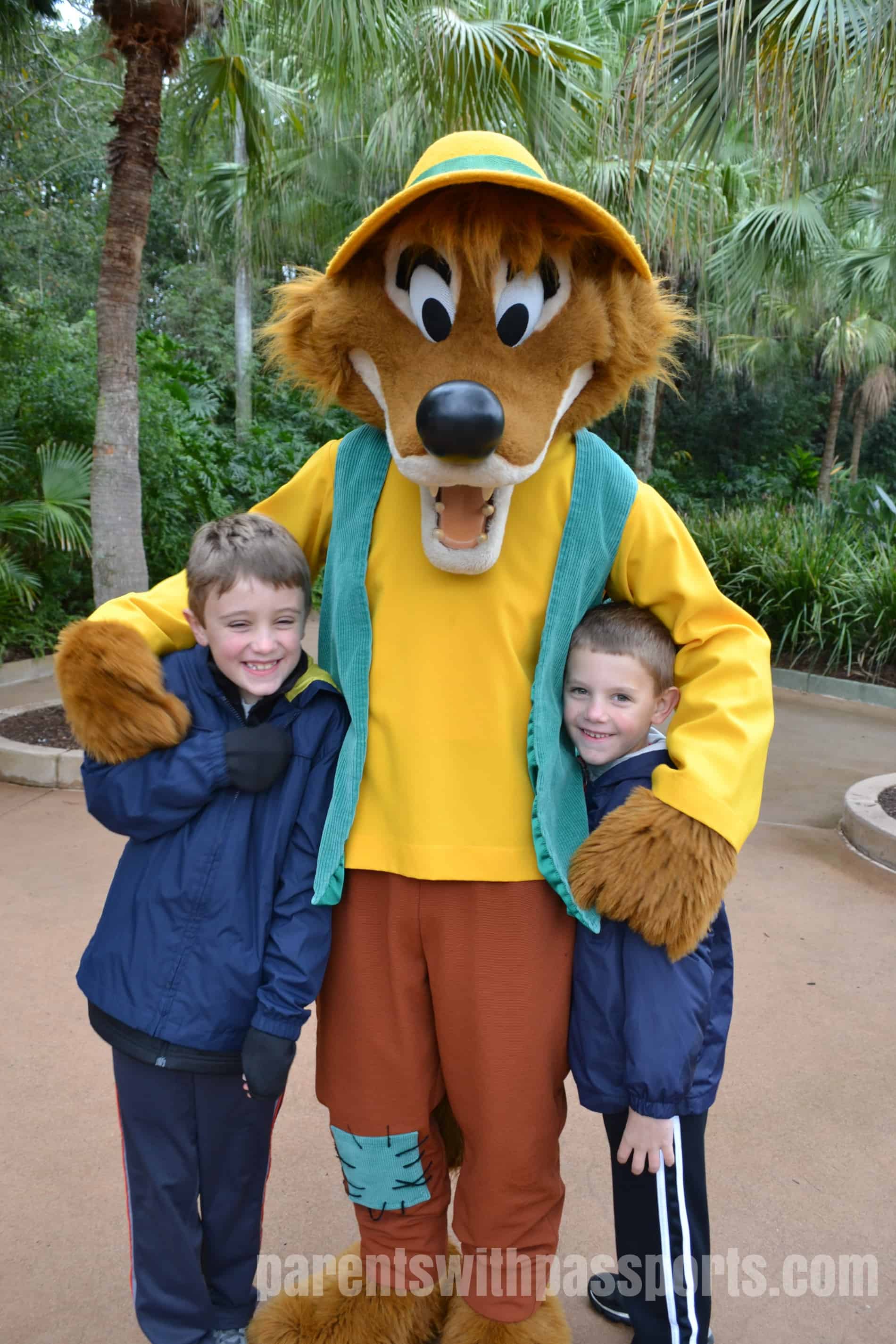 But we were in for one last Disney surprise. As we walked out of the exit, we had a super rare triple character spotting – Br’er Rabbit, Br’er Fox, and Br’er Bear! The boys loved Splash Mountain and had no idea you could see the characters anywhere in Disney World. Br’er Rabbit was just being led away so we didn’t get any pictures with him but Br’er Fox and Br’er Bear were walking around completely by themselves. We got some hugs from Br’er Bear first and then the mischievous Br’er Fox came over and started playing around with the boys. He kept covering up their heads and faces and just being generally silly. It was such an unexpected and fun way to end our trip.