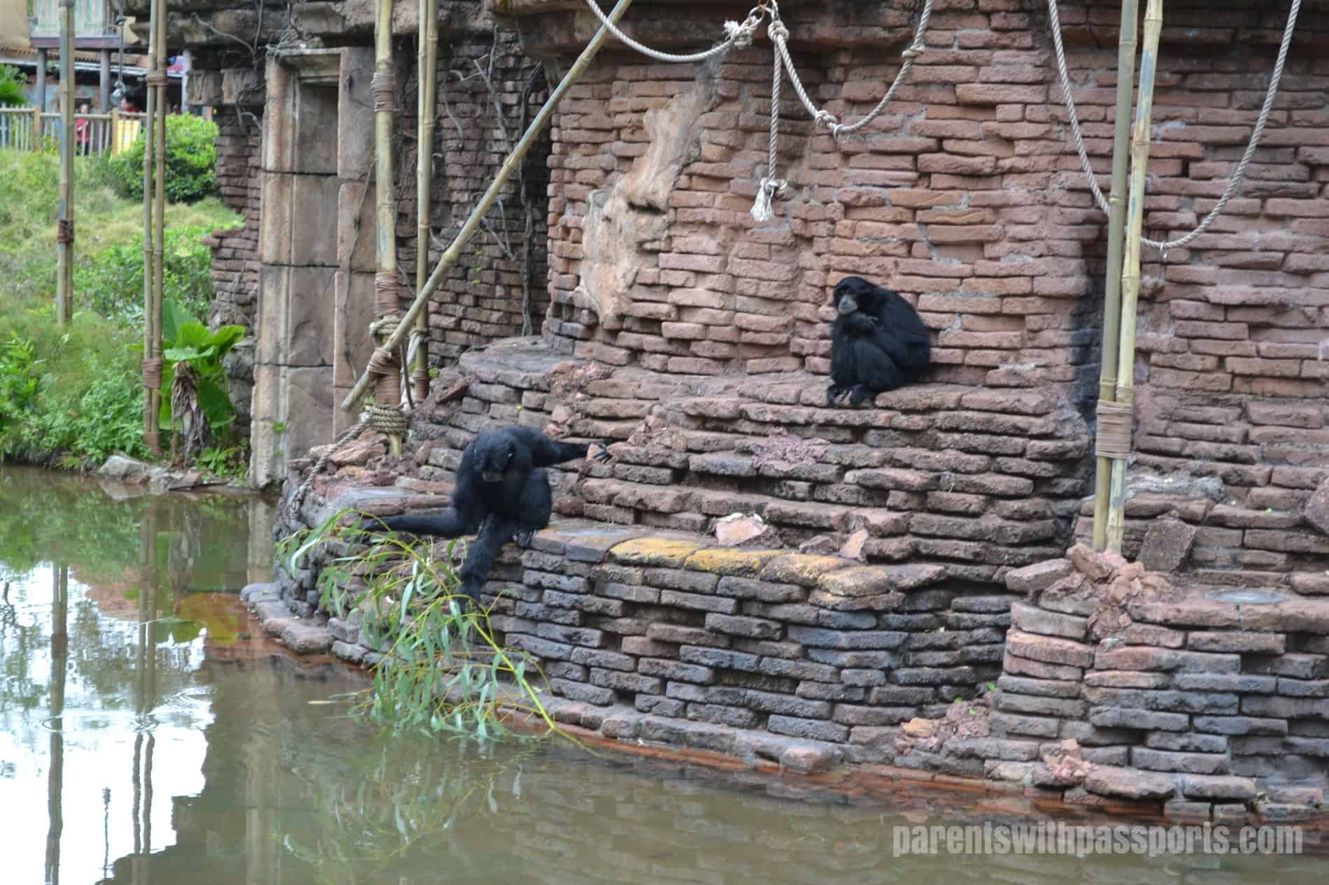 Well maybe we didn’t head exactly straight there despite our best intentions. Our route took us right past the gibbons and siamangs so obviously we had to stop. One of the Wilderness Explorer guides was stationed at the gibbon habitat and JB asked lots of thoughtful questions and had a really interesting and informative conversation with her. He found the gibbons so fascinating that he went back to ask more questions and watch them some more after we rode Expedition Everest.