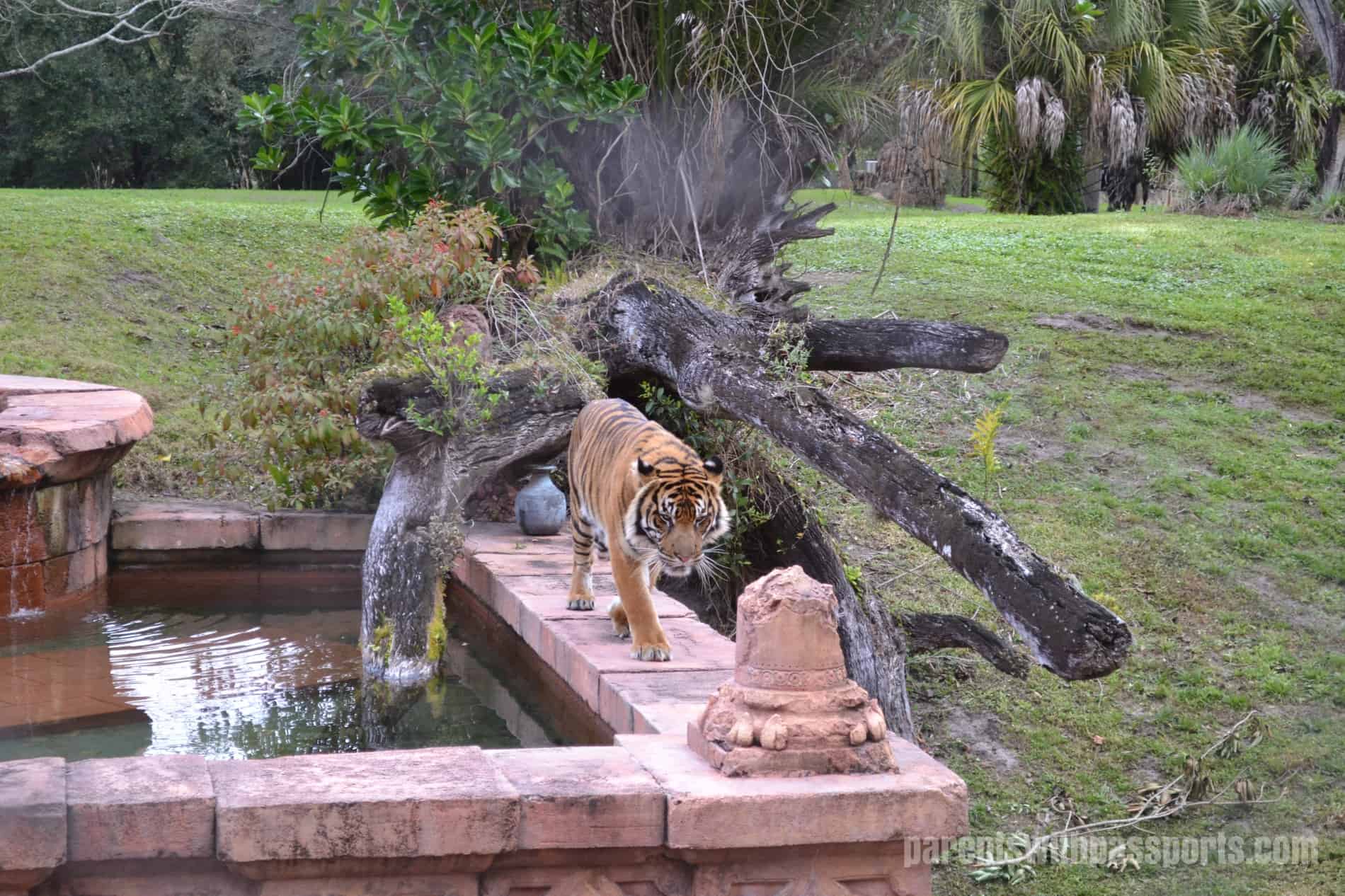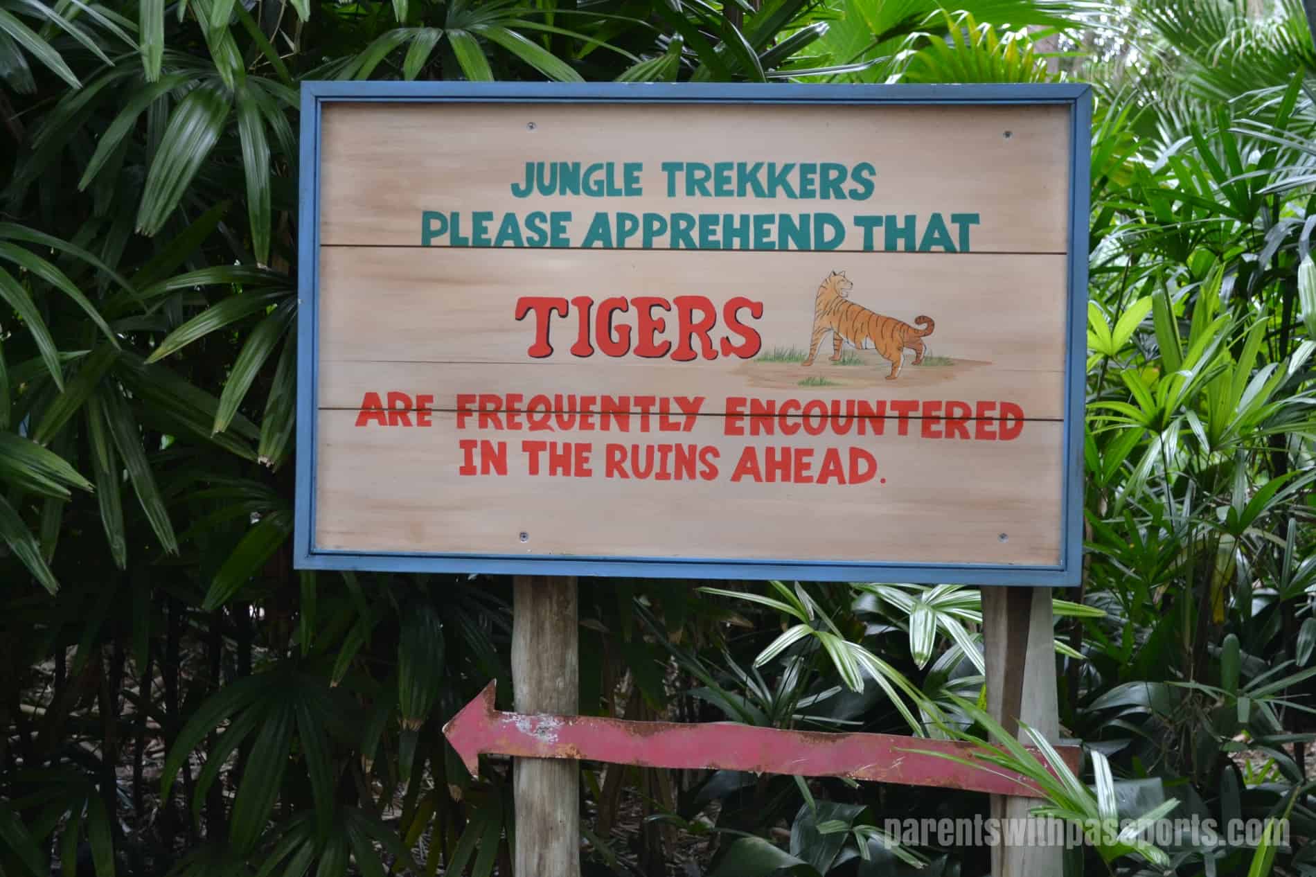 After the rides and gibbon watching, we headed to the Maharajah Jungle Trek to observe more animals. We got some amazing views of the tigers up close and really enjoyed trying to match the birds in the aviary to the information cards that were provided. As usual with Disney, the details and theming of the nature walk were phenomenal.
