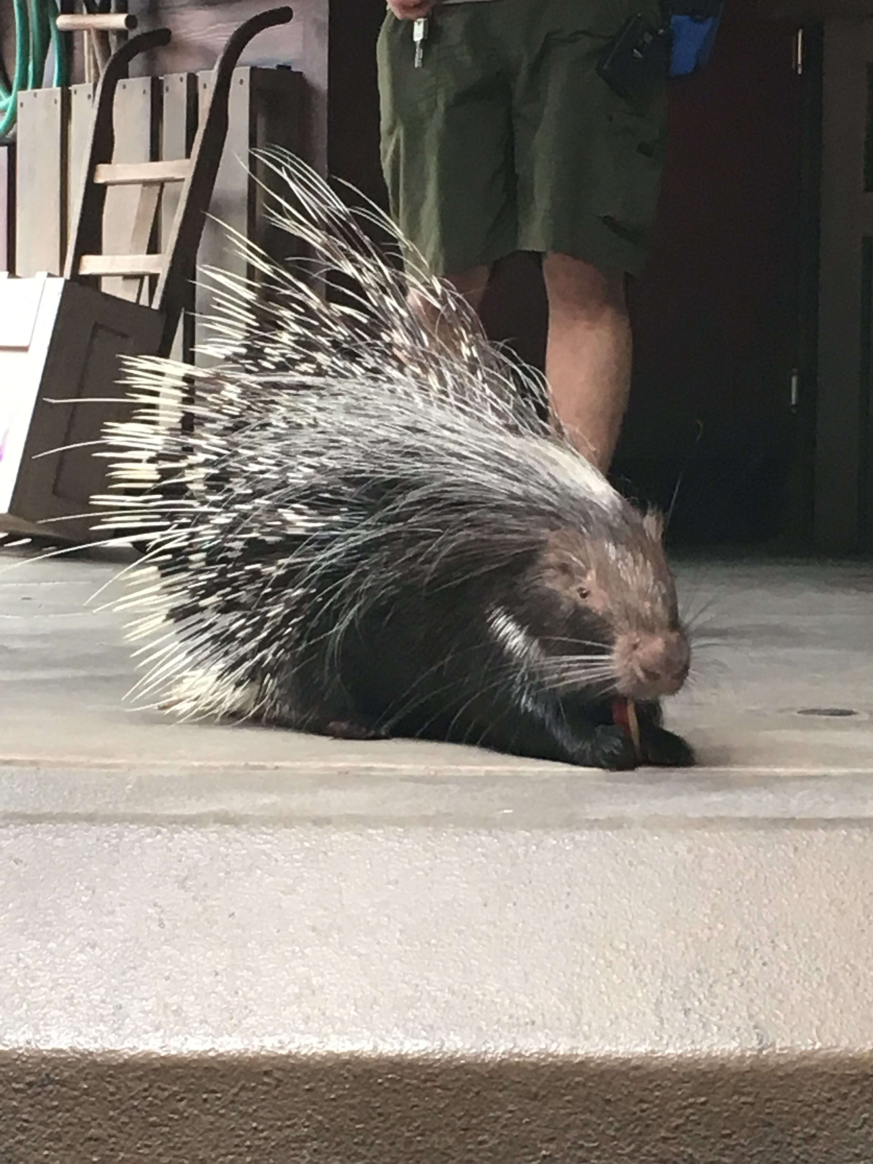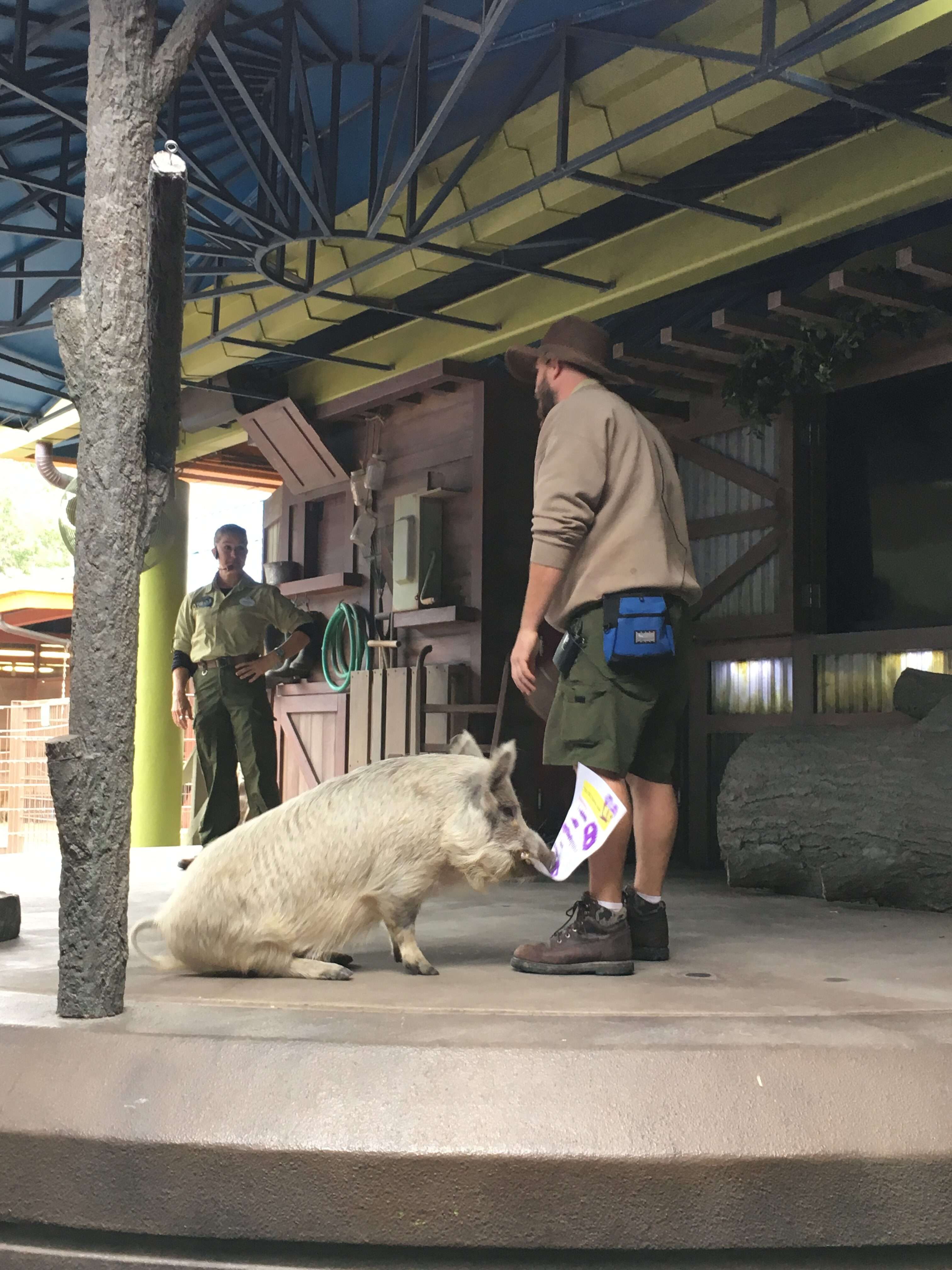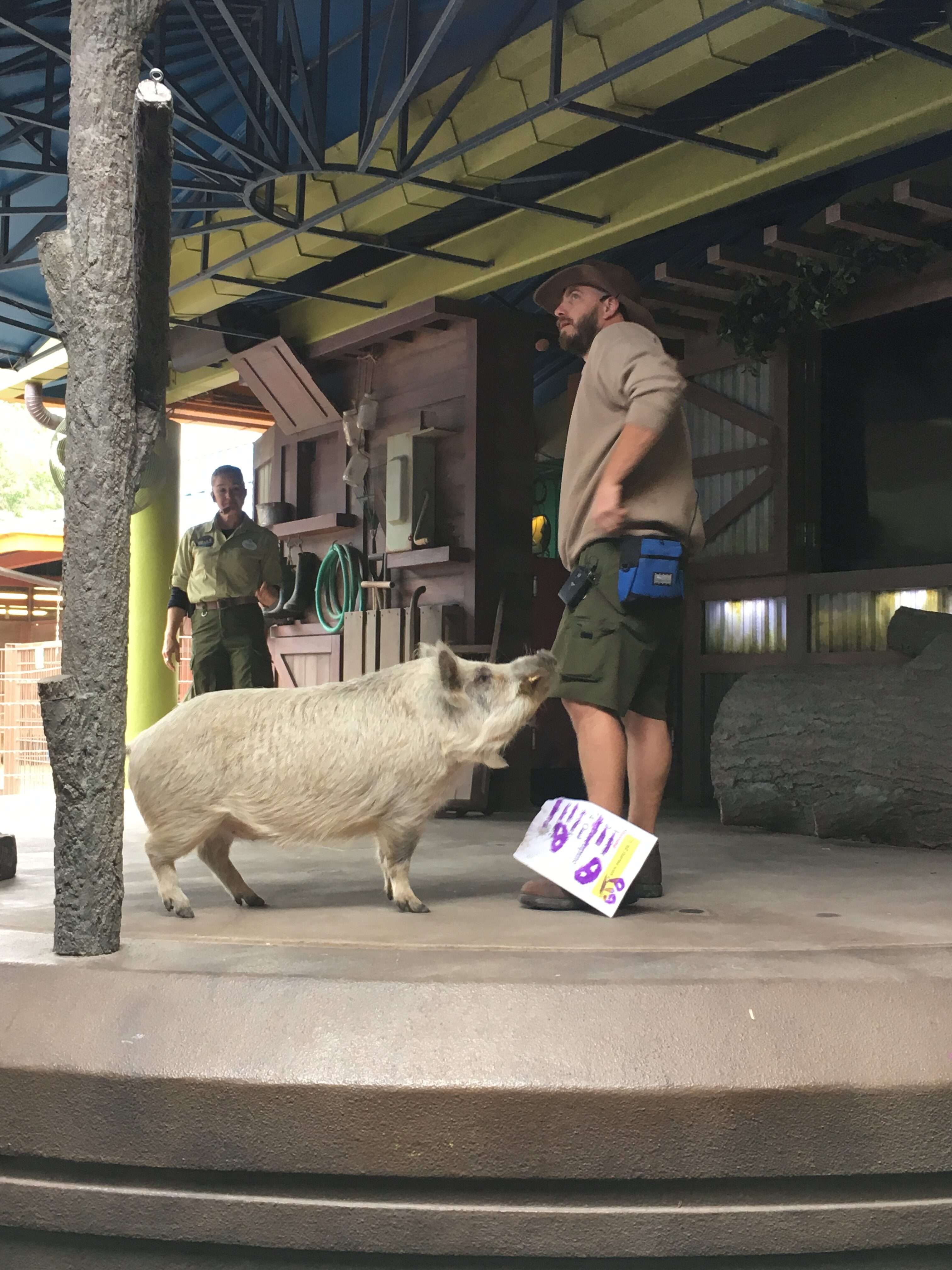 We headed back outside and watched the show “It All Started with a Mouse”. This was a great show for kids because you could get up really close to the action on the stage and they even walked some of the animals around in the crowd. Our favorites were the Kunekune pig that painted with his nose and the porcupine. At the end of the show you could meet and pet the animals (except the porcupine of course!).