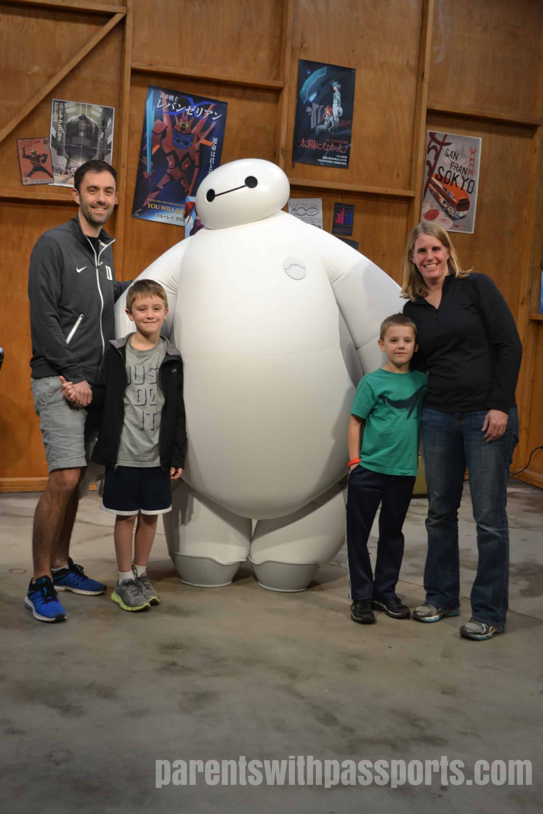 We also stopped to visit Baymax, and the boys thought it was hilarious that the cast member made them take off their pin lanyards so they didn’t pop Baymax.