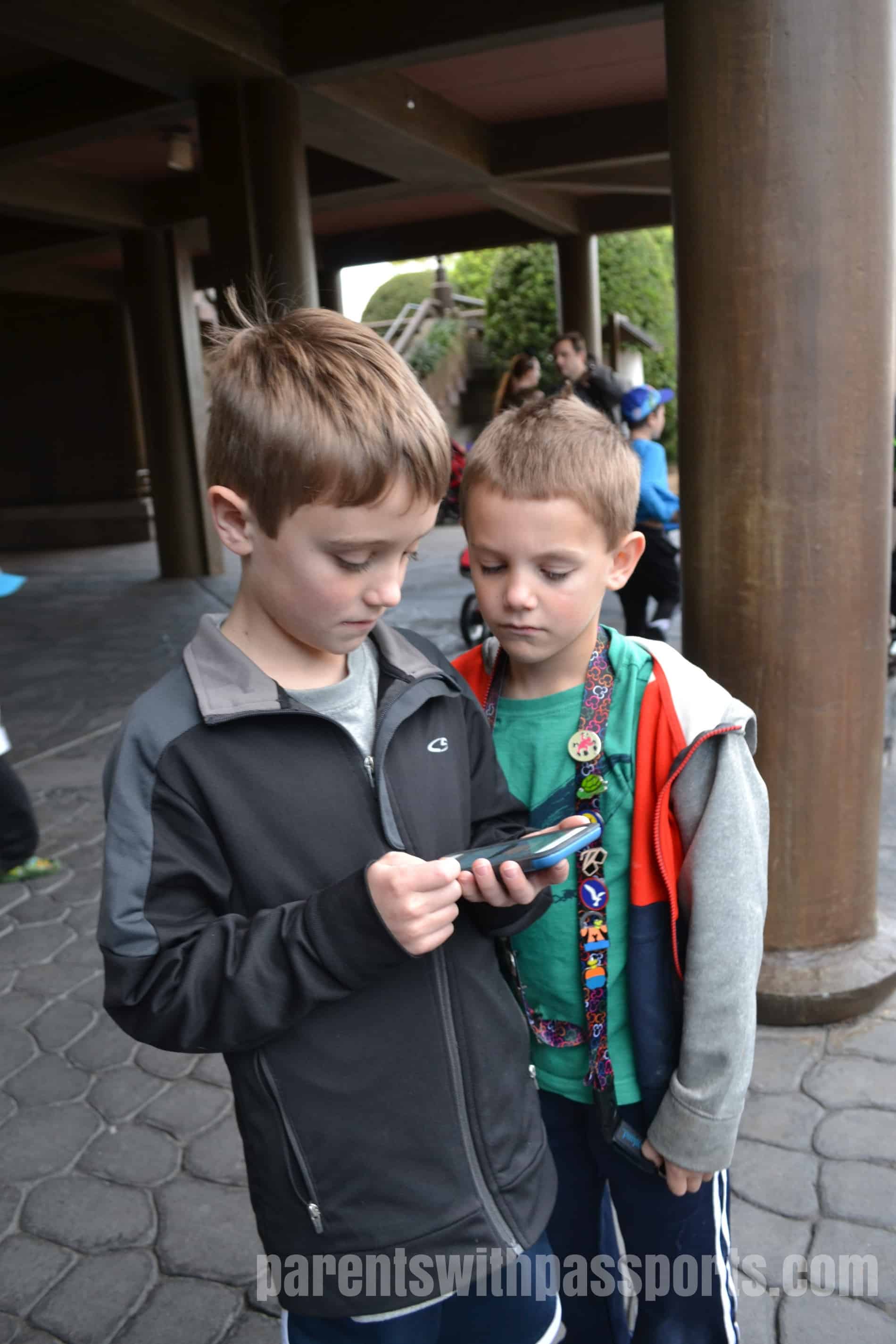 After exploring Morocco, we headed to Japan where we watched the talented and entertaining Japanese Taiko drummers and the boys started an Agent P mission. Japan was a great one to pick – it had some really impressive effects. By correctly following the clues, you can make Japanese characters magically appear on rocks, make the wind chimes rattle, and start a waterfall in the koi pond, all in an effort to stop Dr. Doofenschmirtz. Part of the fun of the game is that you really do feel like a secret agent. You’re following the clues and making all these things appear around you, and 99% of the people going by have no idea that it is happening. It’s fun to feel like you are in on something secret. The new smartphone interface was clean and easy to follow and the boys had a great time foiling the evil Dr. Doofenschmirtz. (“Curse you, Perry the Platypus!!!”)