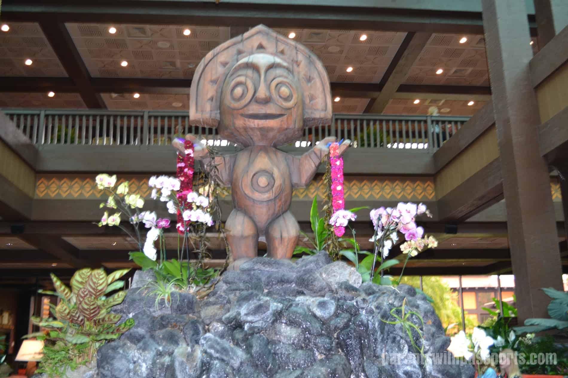 The Polynesian is probably one of the most strongly themed resorts and Disney, as usual, pulls it off so well. The boys loved the Hawaiian decor from the moment we arrived on the grounds. The lush gardens outside made you feel like you were actually in Hawaii. The tikis in the lobby and scattered through the grounds were a whimsical touch. The boys wandered around the beautiful lobby in the Great Ceremonial House while I checked us in. It was a really fun touch when they gave everyone in the family a lei to welcome us to their beautiful resort.
