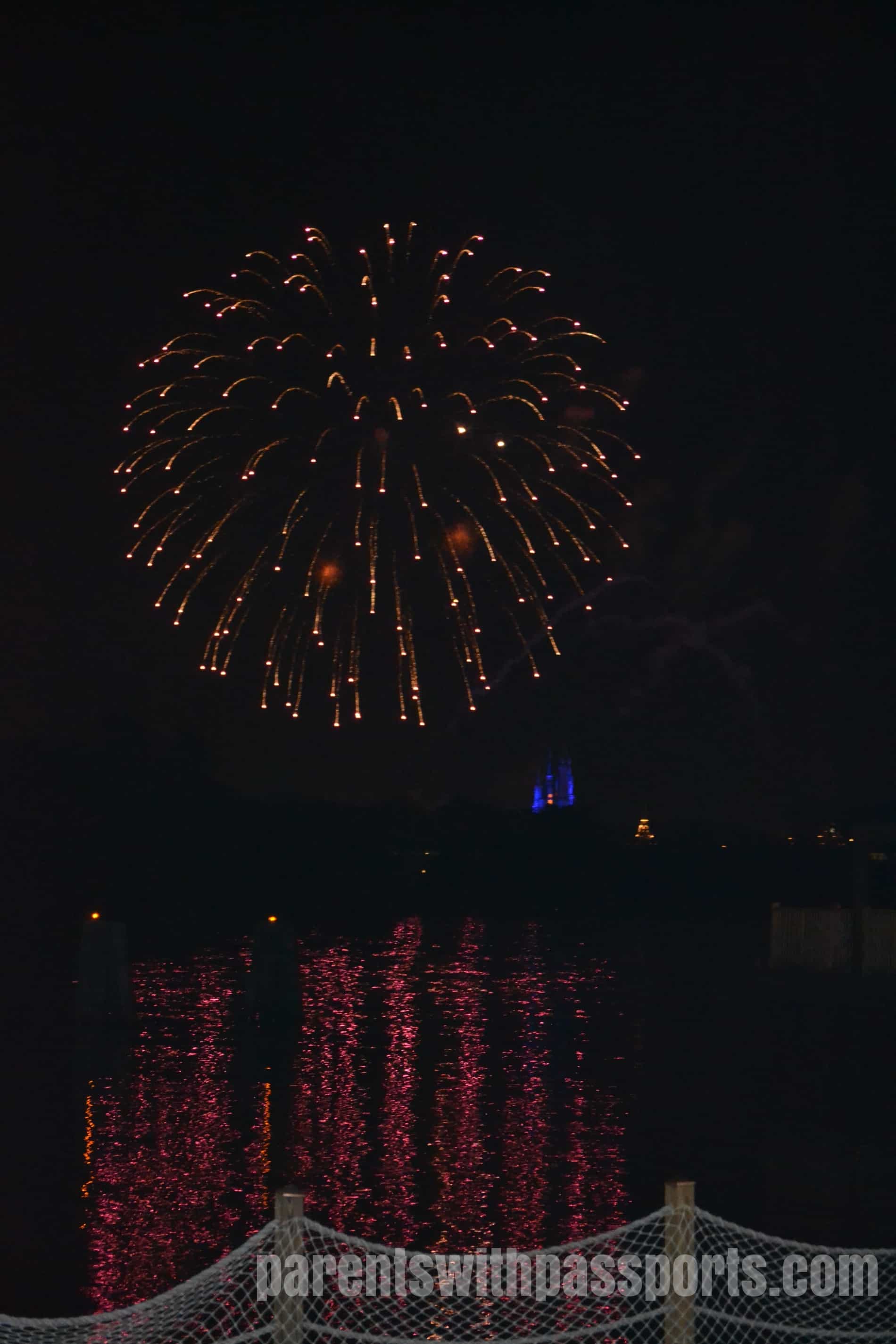 Since the boys opted to stay in the pool over returning to Magic Kingdom for Wishes, I went down to the beach to watch the fireworks. It was neat to get to see them and a unique perspective for sure, but it definitely felt far away. And I heard that they usually pipe in the music so that you can get the full effect of the show, but unfortunately that was not the case this night. It was better than not seeing the fireworks at all, but just barely.