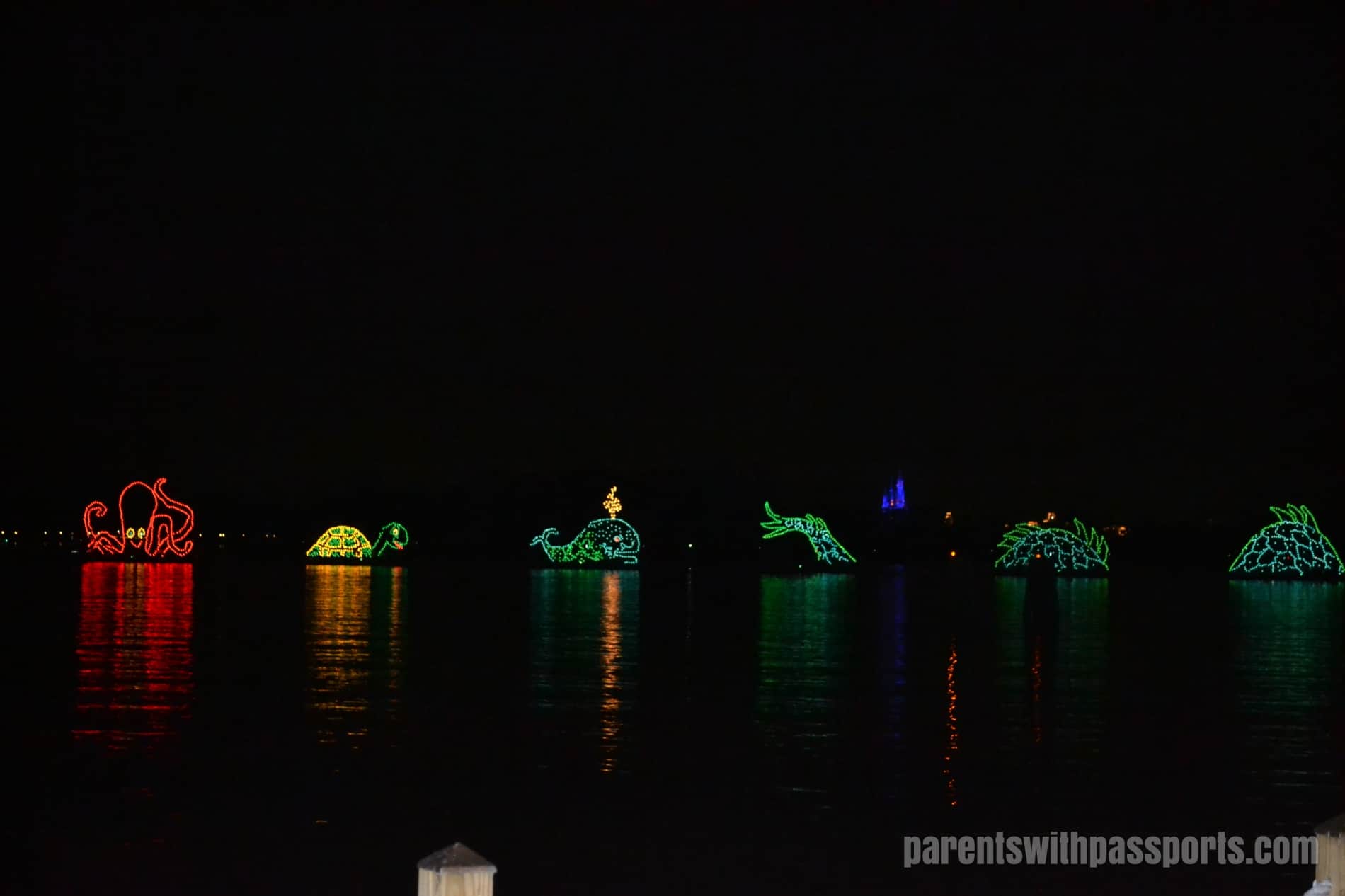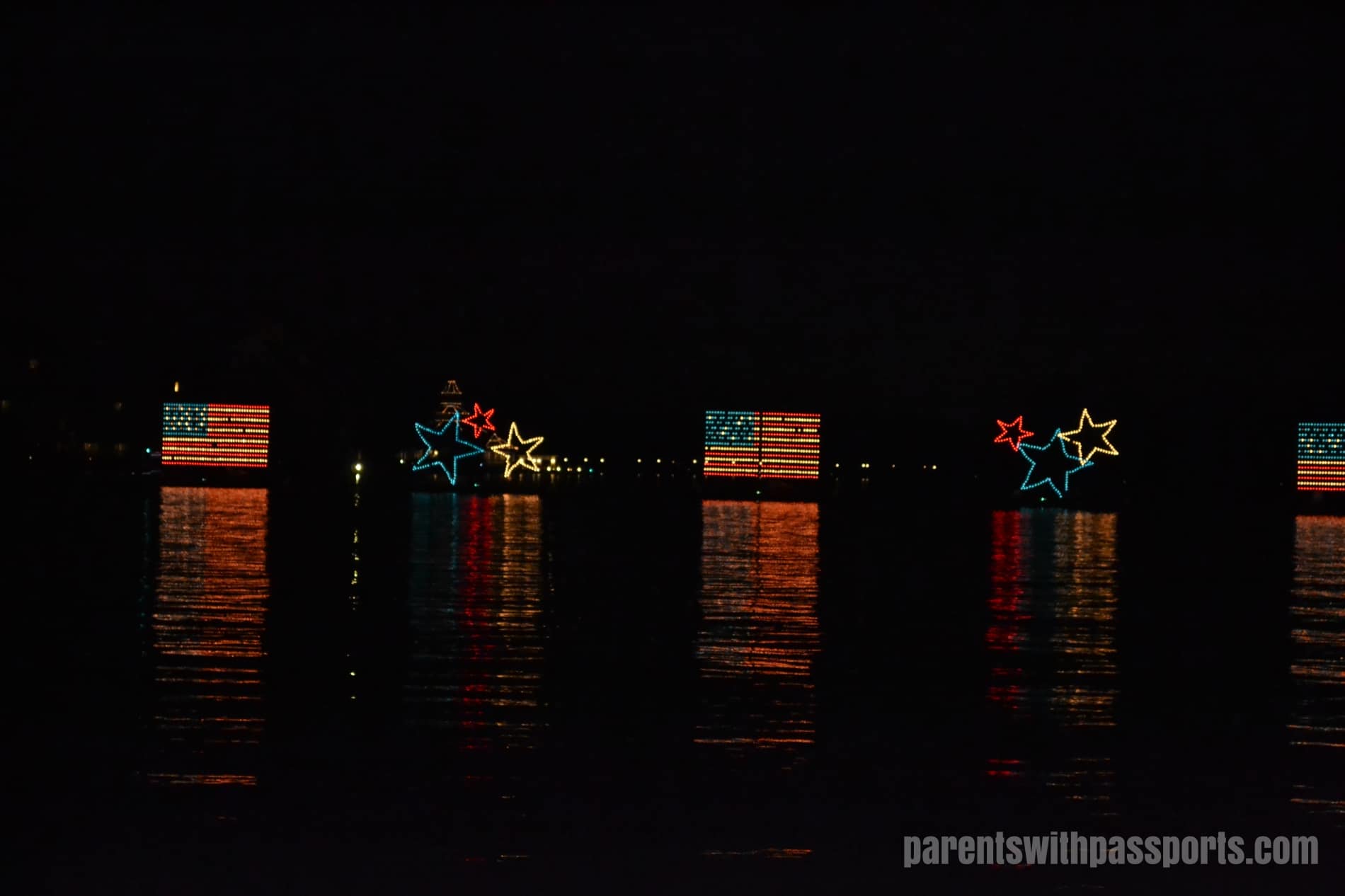 But the surprise of the evening was the Electrical Water Pageant. What a trip! This floating parade has been around since 1971 and it immediately transports you to that time. A series of barges floats by carrying different colorful animated light displays. The parade starts with King Triton being led by a variety of sea creatures who jump and swim to the synthesized music. The show ends with a patriotic sequence as Stars and Stripes plays while actual stars and stripes float by. It was strange yet oddly entertaining and I found myself smiling from ear to ear. In a place where you are surrounded by state of the art technology and effects, the simplicity of this parade was a welcome step back in time. It made me feel like a kid again.
