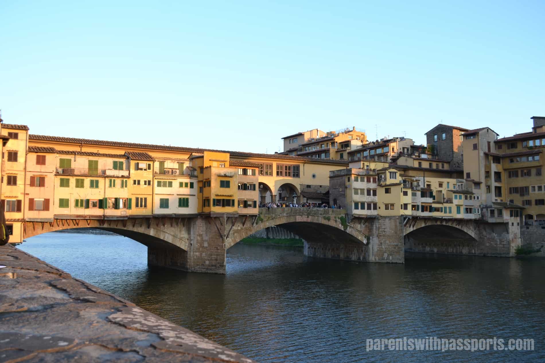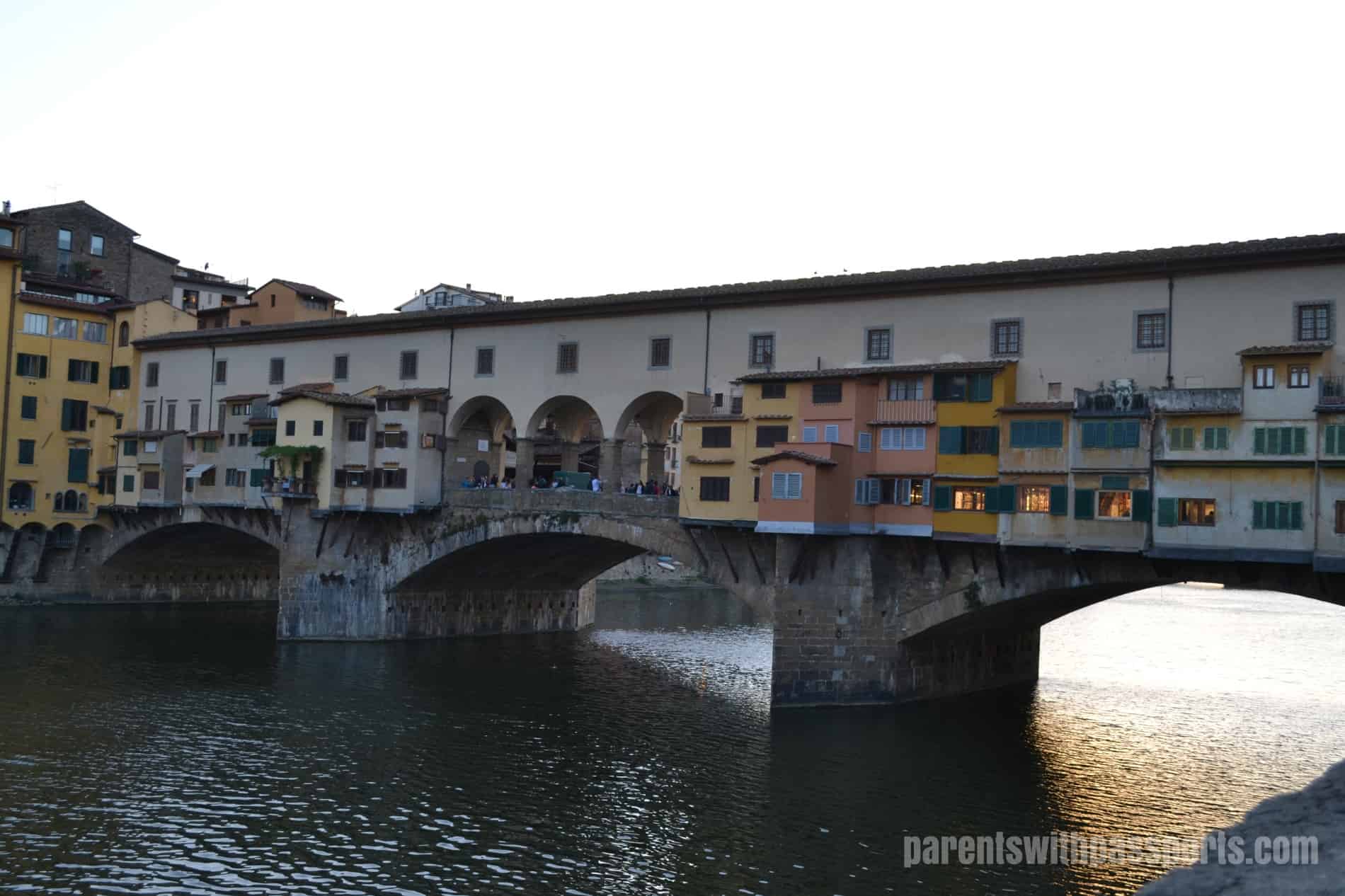 Ponte Vecchio is Florence’s iconic bridge – a pedestrian bridge across the Arno River known for the jewelry shops that line its sides. The bridge as it is today was built in 1350 and is the third iteration at that location – floods destroyed the original in 1117 and its replacement in 1333. The shops along the bridge were originally butchers shops and tanners but in 1593 Duke Ferdinand decreed that only goldsmiths and jewelers could conduct business there.
