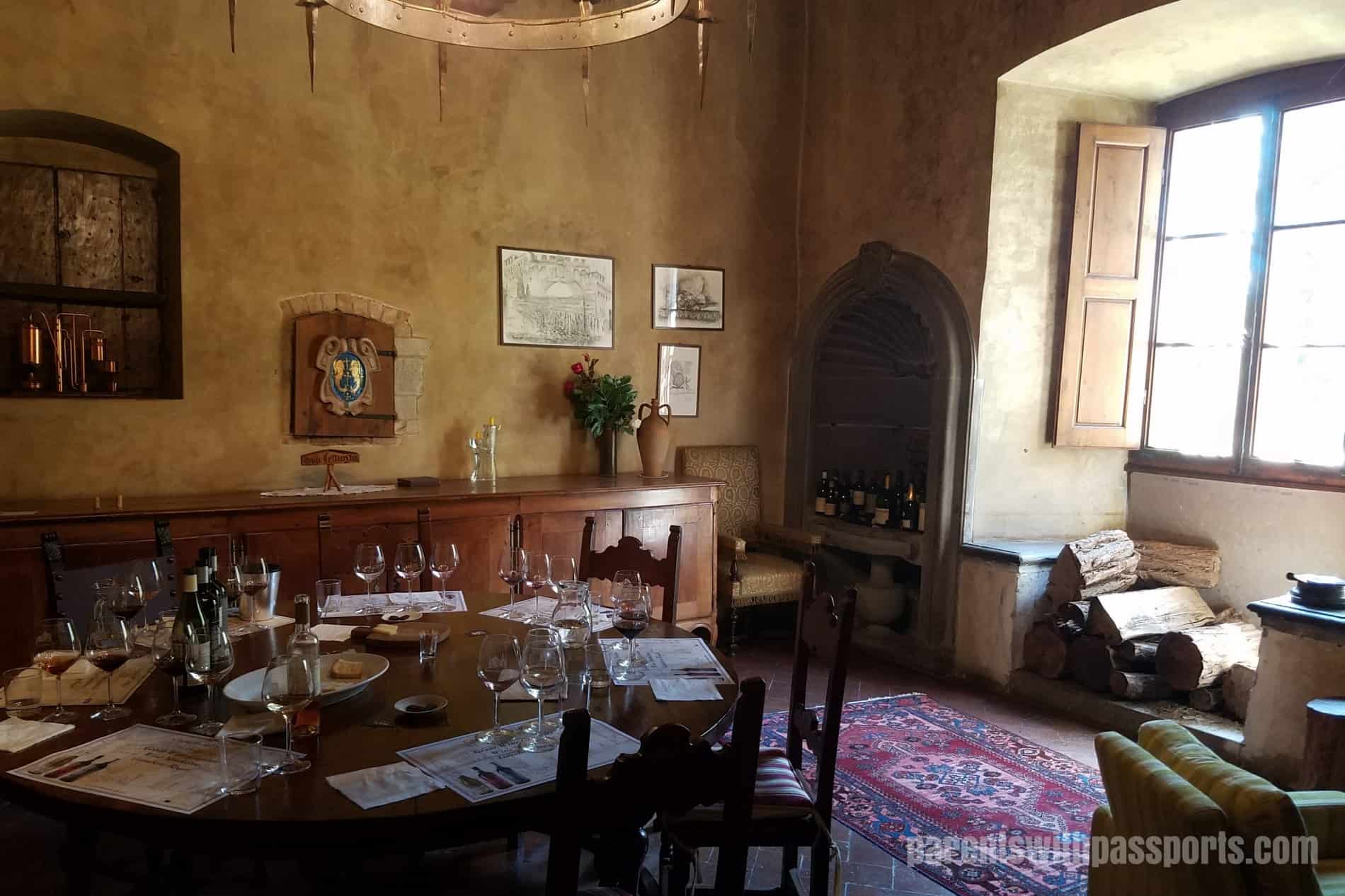 The history of the castle was fascinating. We were not expecting a story of murder and intrigue on a wine tour, but that is exactly what we got. The castle dates back to the 12th century and was built by the Pazzi family, the second most influential family in Florence. They were also enemies with the most influential family in Florence, the Medicis. Within the walls of this castle (in the room now dubbed The Conspiracy Room), the Pazzis plotted to overthrow the Medici family by killing the two leaders of the family, brothers Lorenzo and Guiliano. The plan was bold – they attacked the two brothers at High Mass in the Duomo. Guiliano was stabbed 19 times and killed. Lorenzo was wounded but escaped and survived.