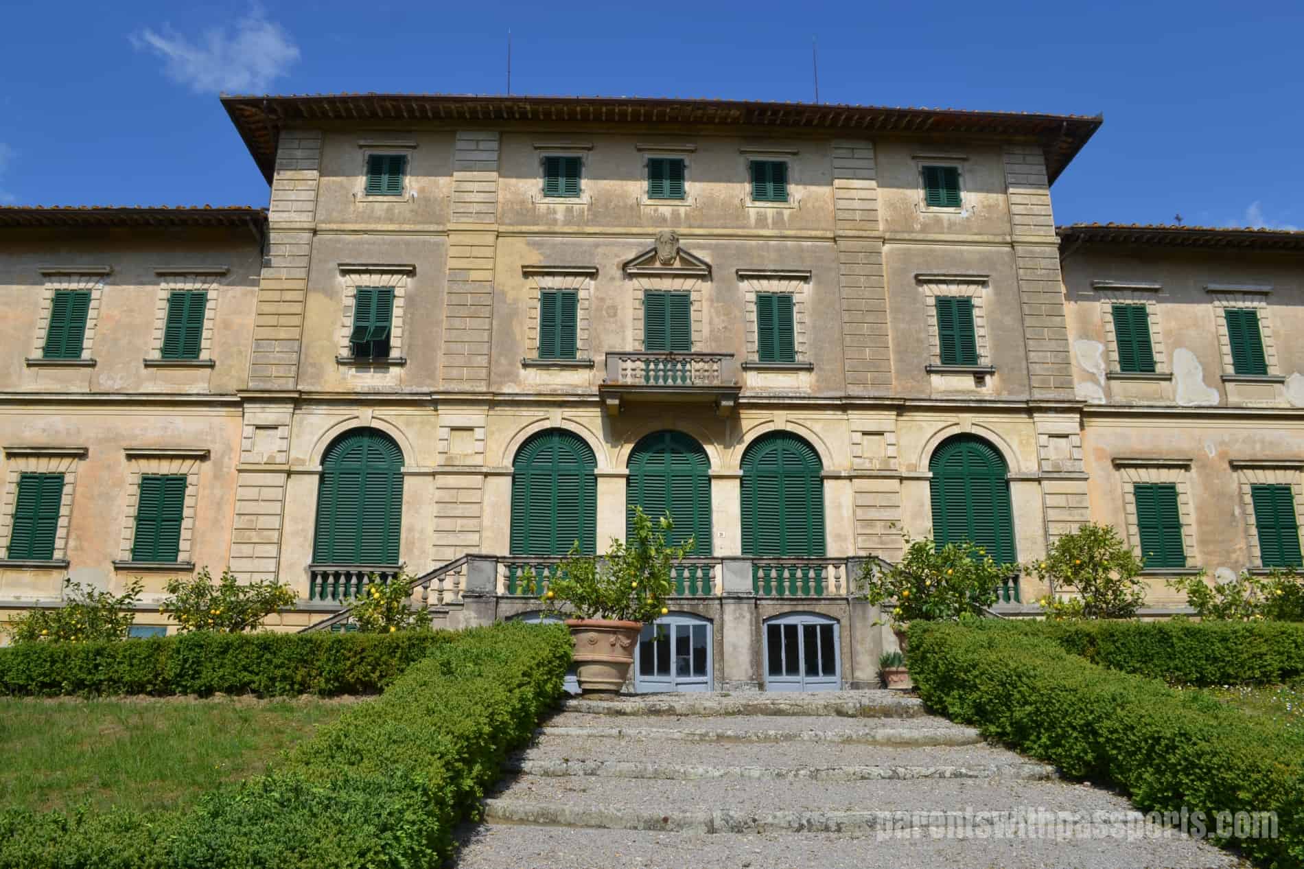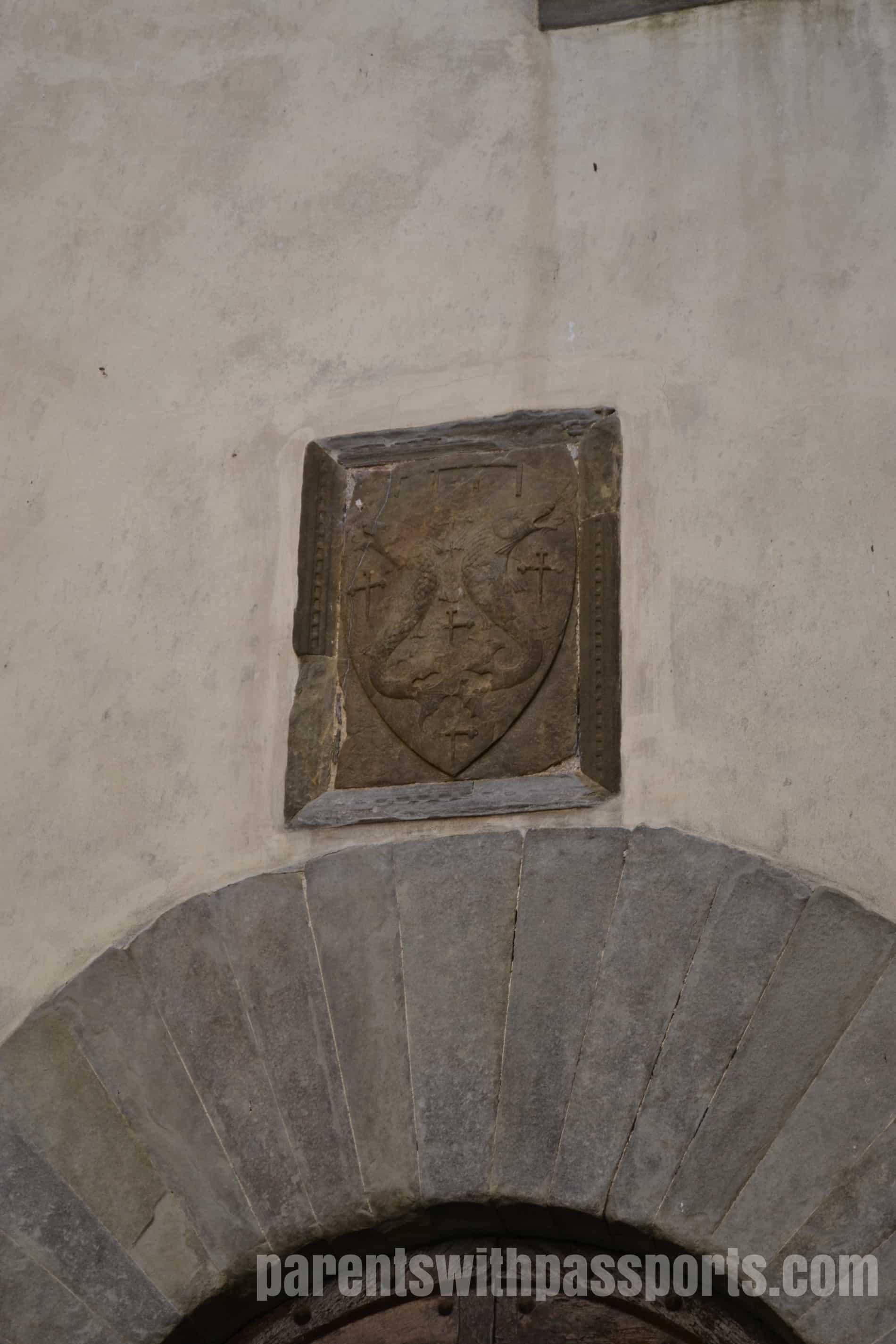 The consequences to the Pazzi family for the failed coup attempt were dire. Five of the conspirators were hanged, and the family was banished from Florence. Their land and properties, including Castle del Trebbio, were confiscated. Buildings and streets that bore the family name were renamed. Interestingly, their family crest was destroyed or removed from all but one location – over the main entrance to this castle. This stone carving of the family crest was made by famous artist Donatello, so the Medici family left it untouched.