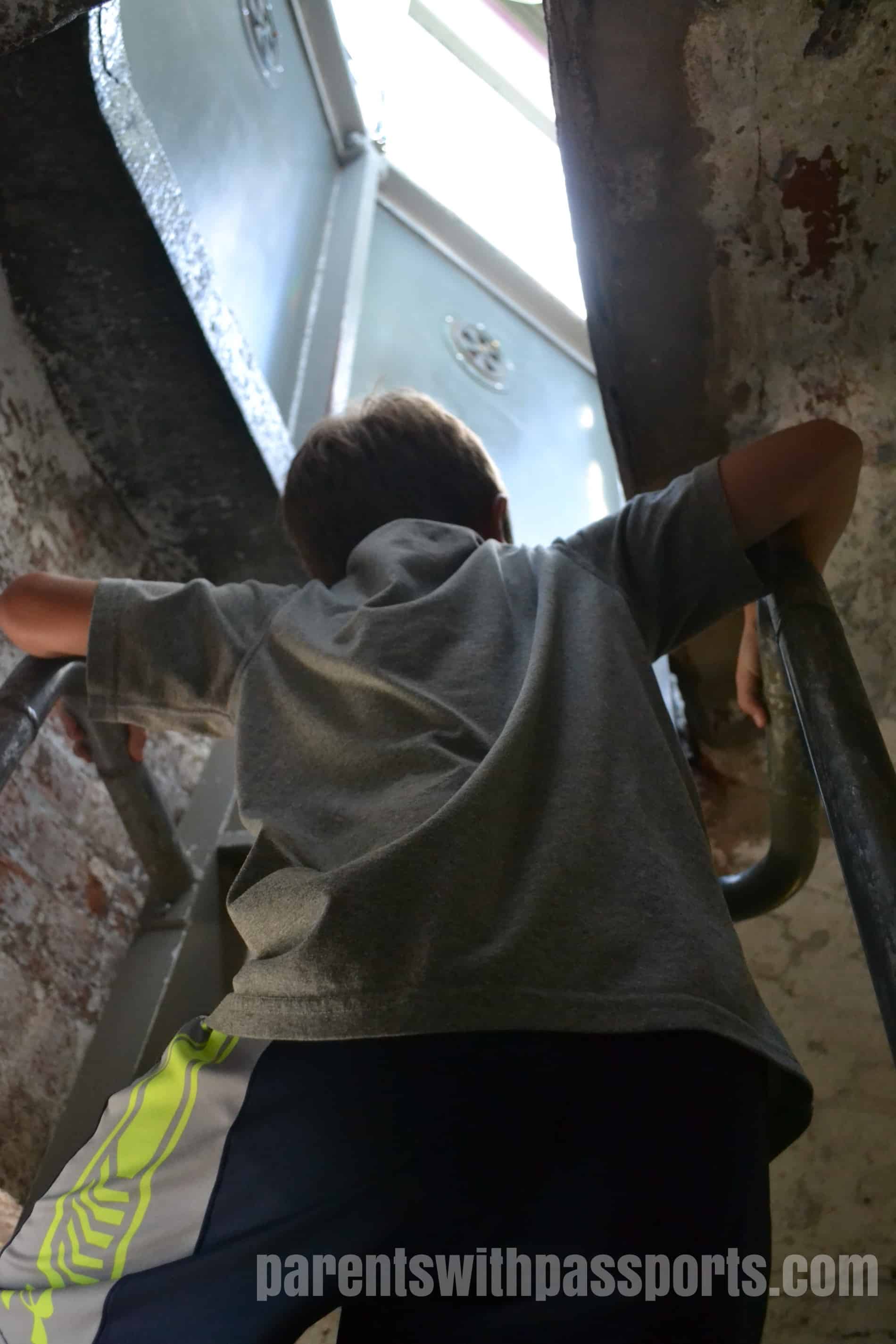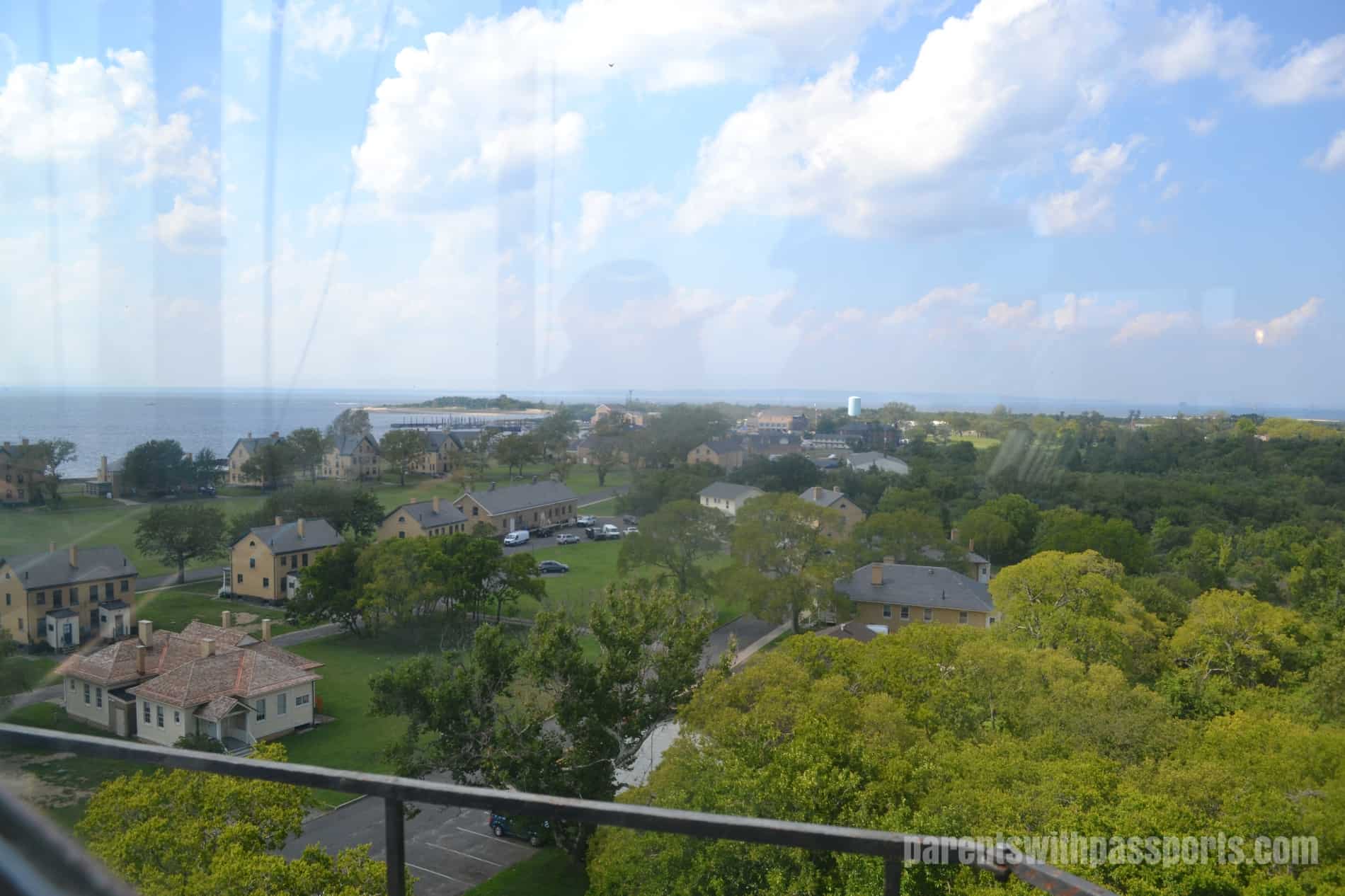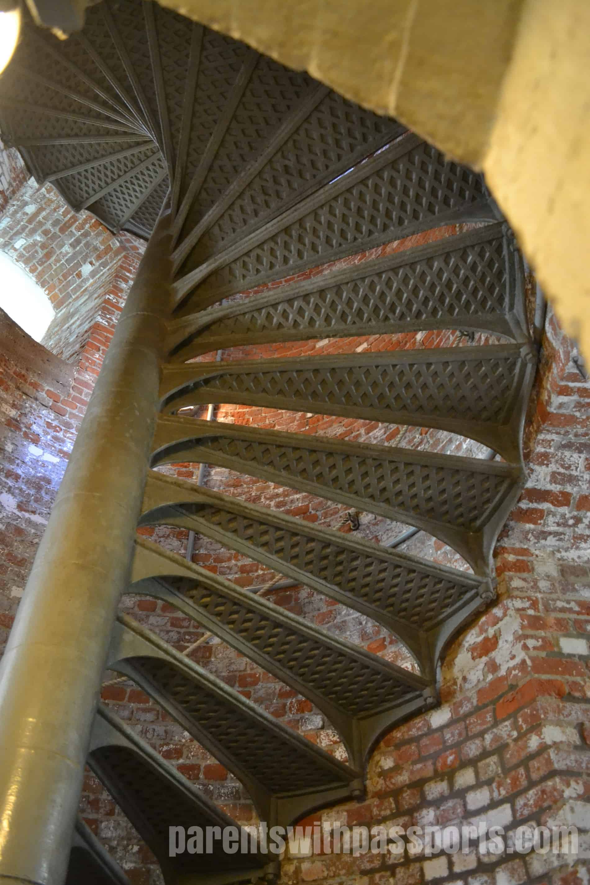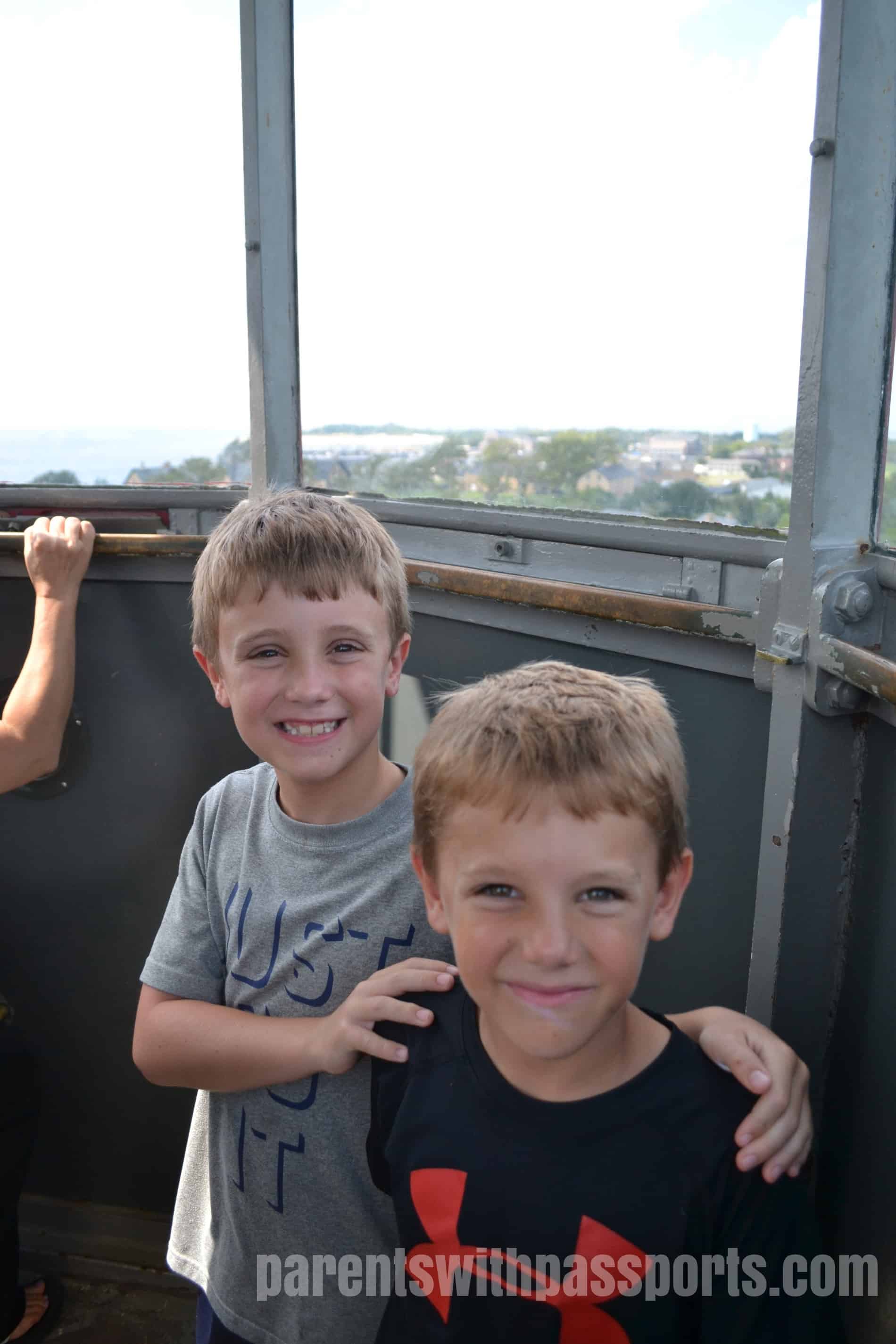 The top of the lighthouse is accessed by a tall circular iron stairway and then a ladder to get to the top platform. The kids enjoyed the adventure of climbing up to the top.