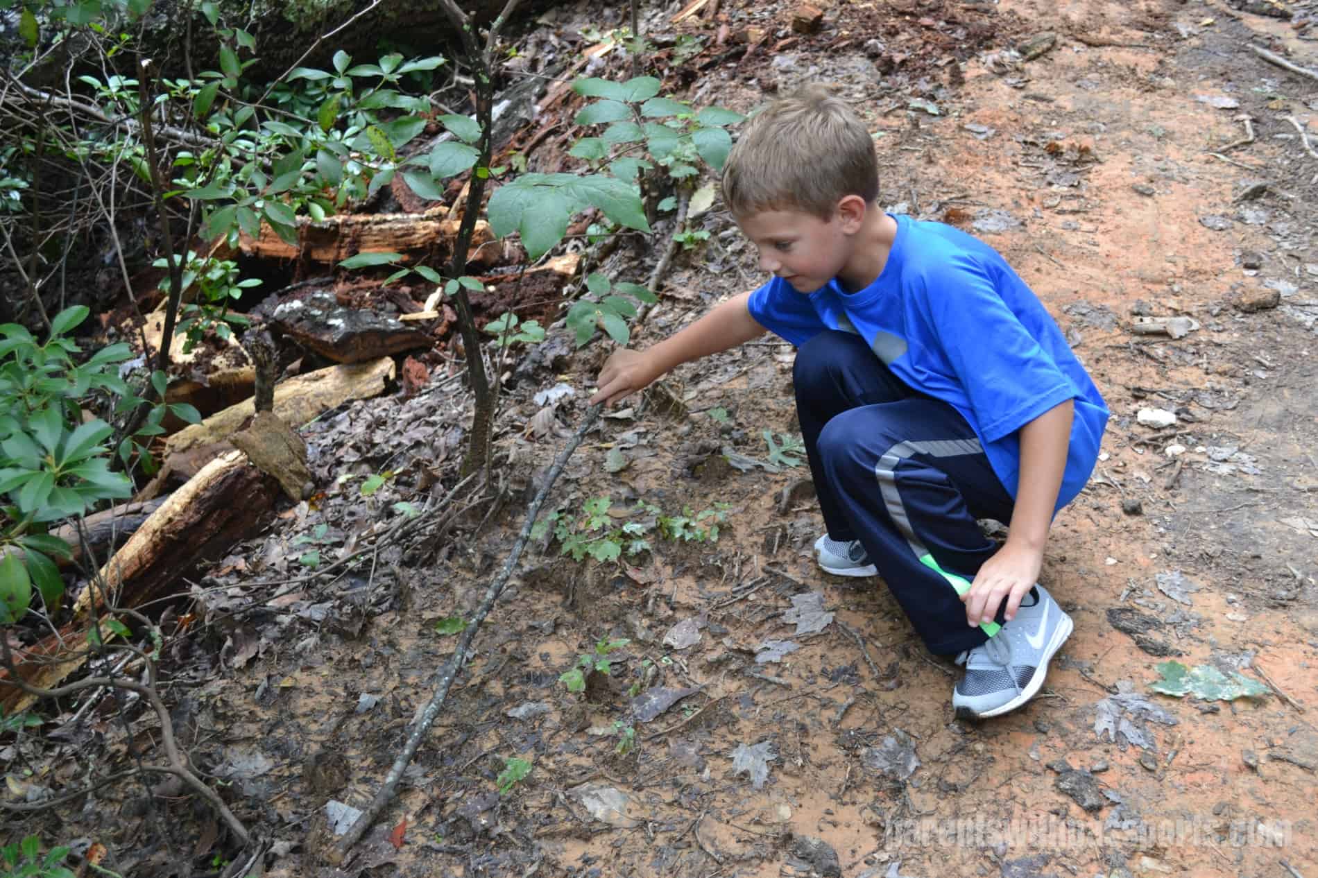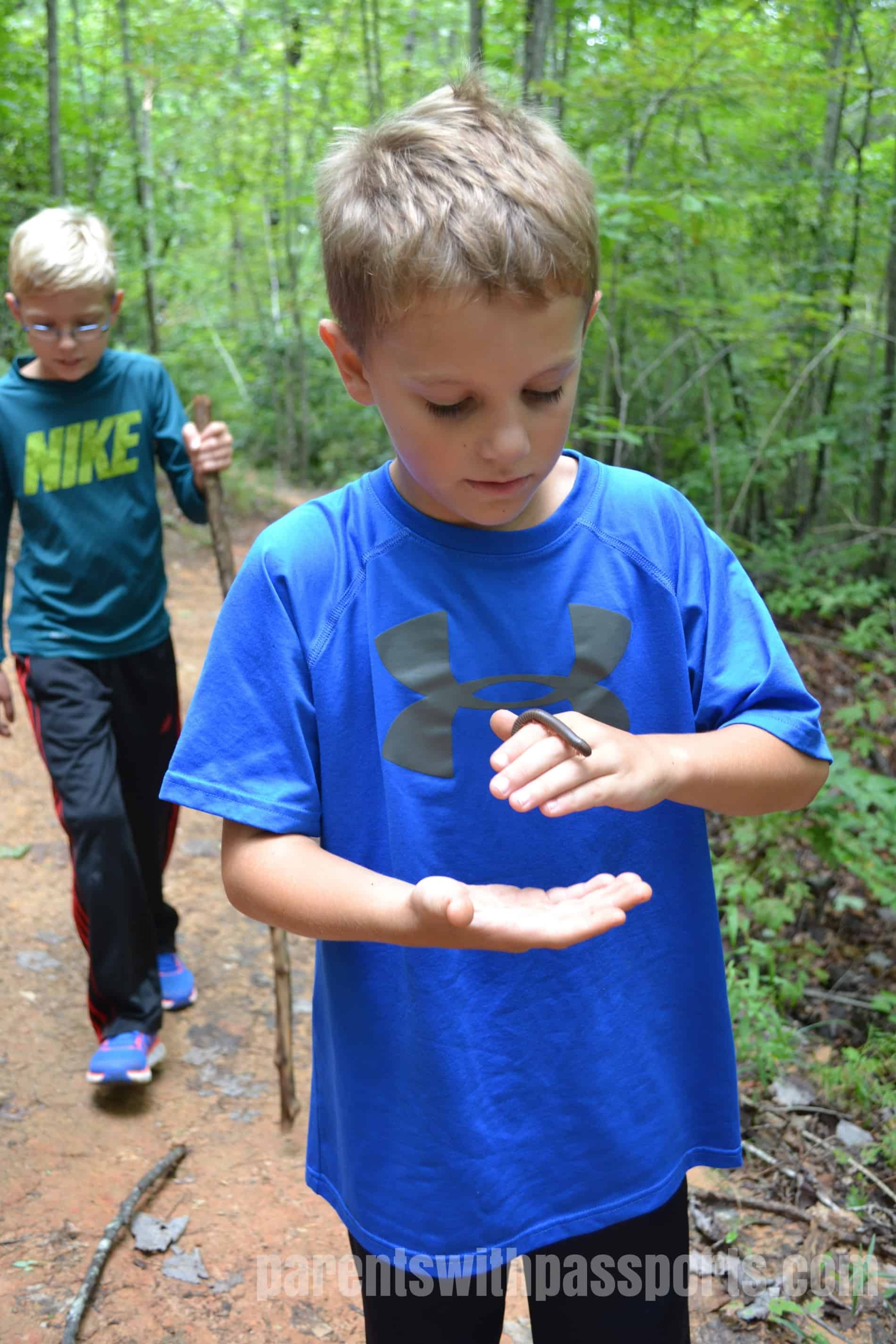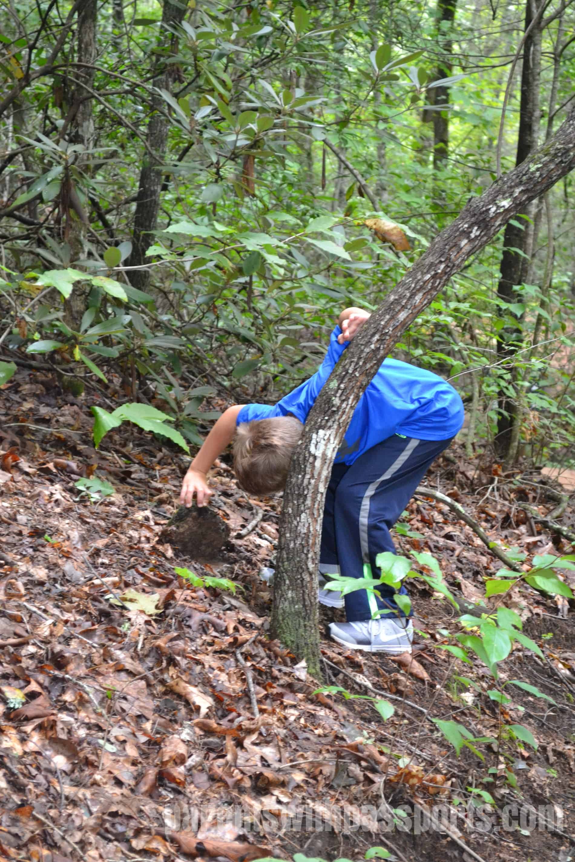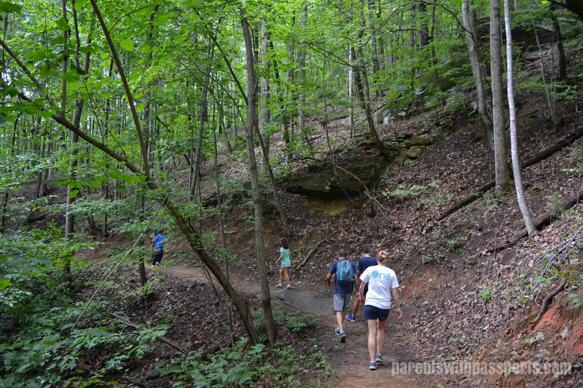 The trail we hiked was wide, well maintained, and relatively smooth, although some sections had a moderate amount of rocks and tree roots in the path.  The hike had some significant uphill portions and would be difficult for toddlers and young preschoolers so be prepared to put your young ones on your shoulders or back if you go out with them.  The kids enjoyed exploring and spotting different bugs and critters out on the trail.