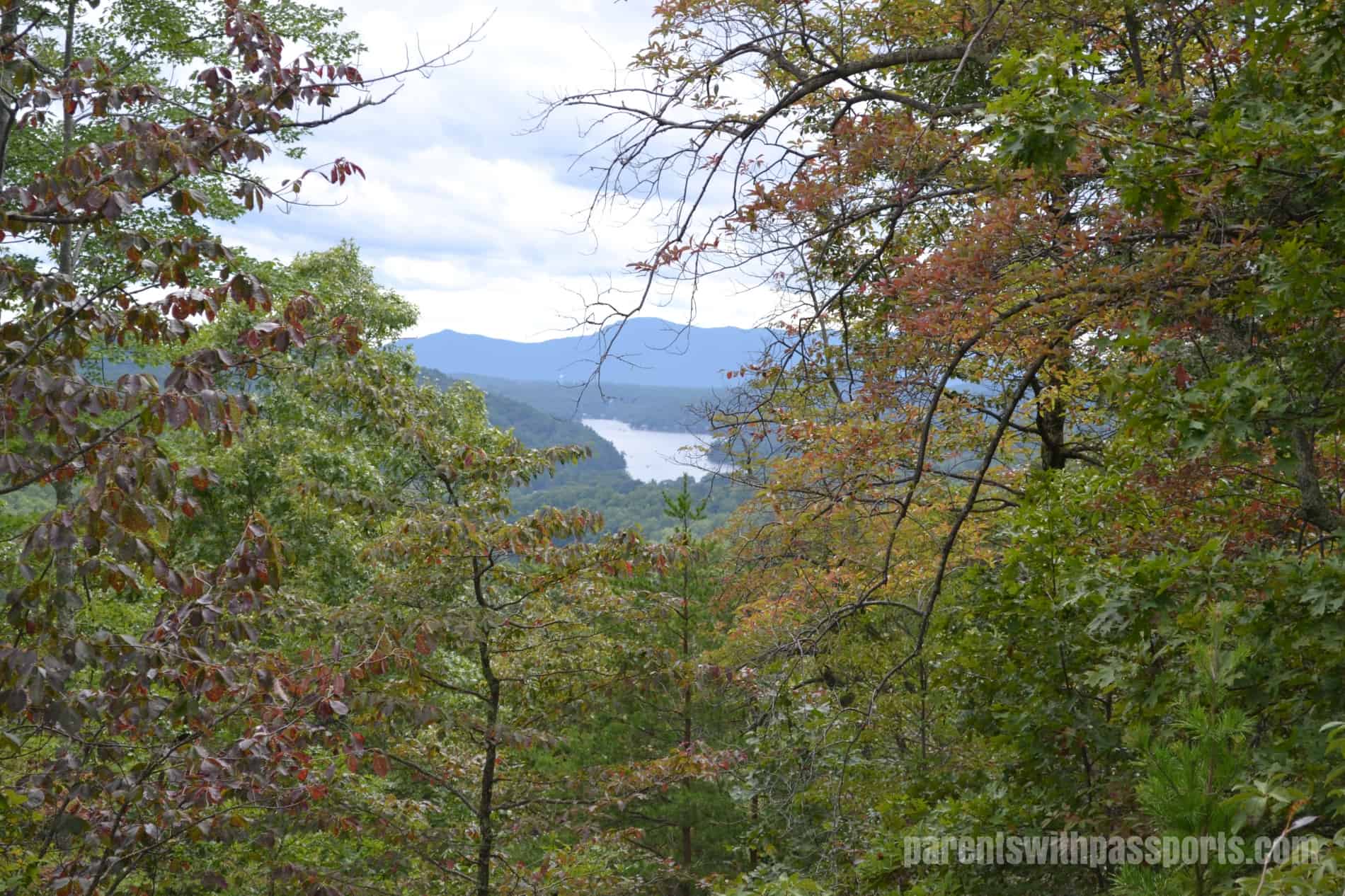 When you get towards the top of the trail, there are some incredible views of the surrounding mountains in one direction and the lake below in the other.  We were there over Labor Day weekend so it was too early for the leaves to be changing, but I can only imagine what a stunning view this is in mid-October.