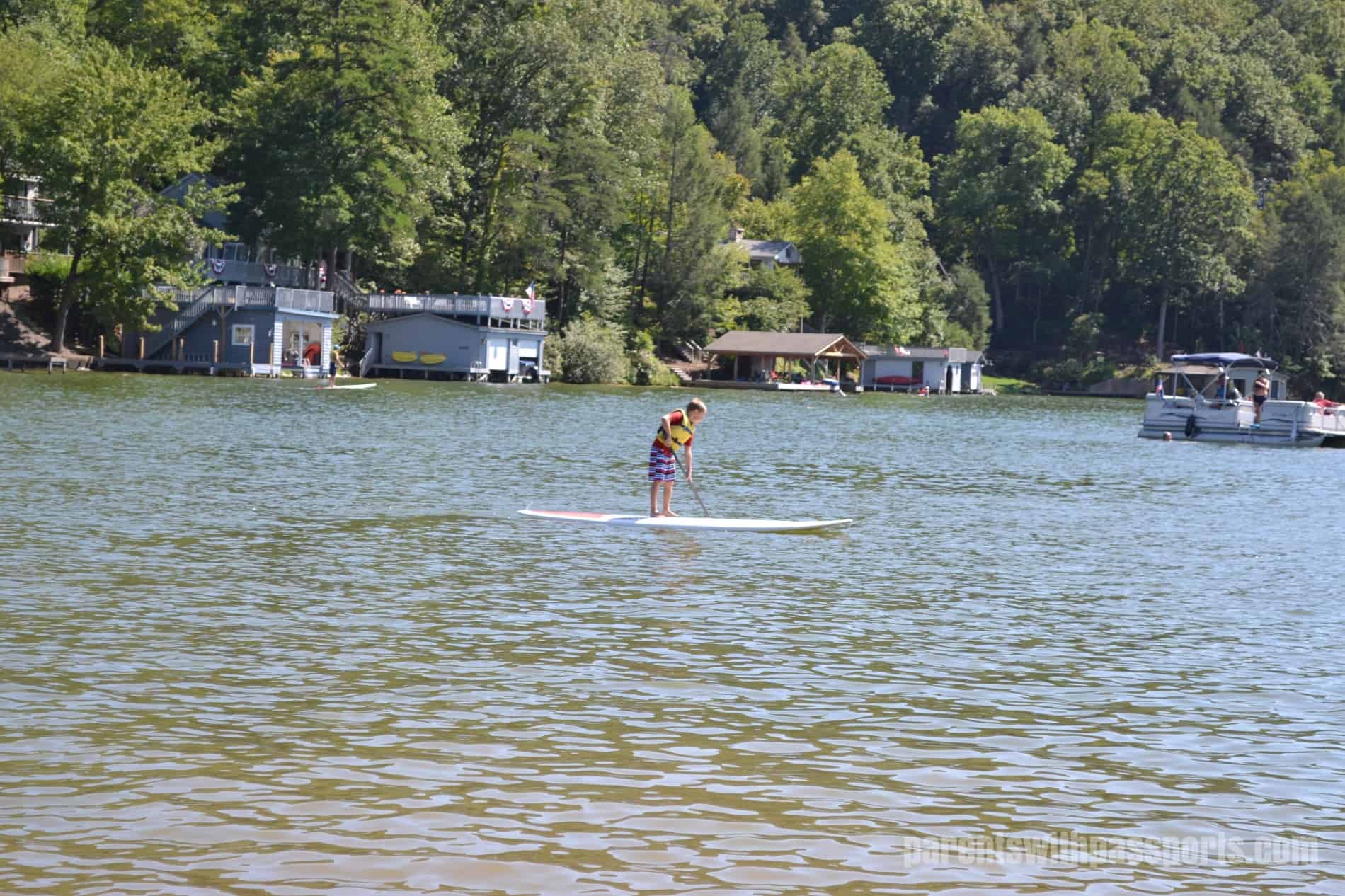 For those looking for more action, there are lots of lake activities available.  From kayaks to SUP boards, you can explore the lake in a variety of ways.  My husband and our youngest tried the stand-up paddle boarding and had a great time.