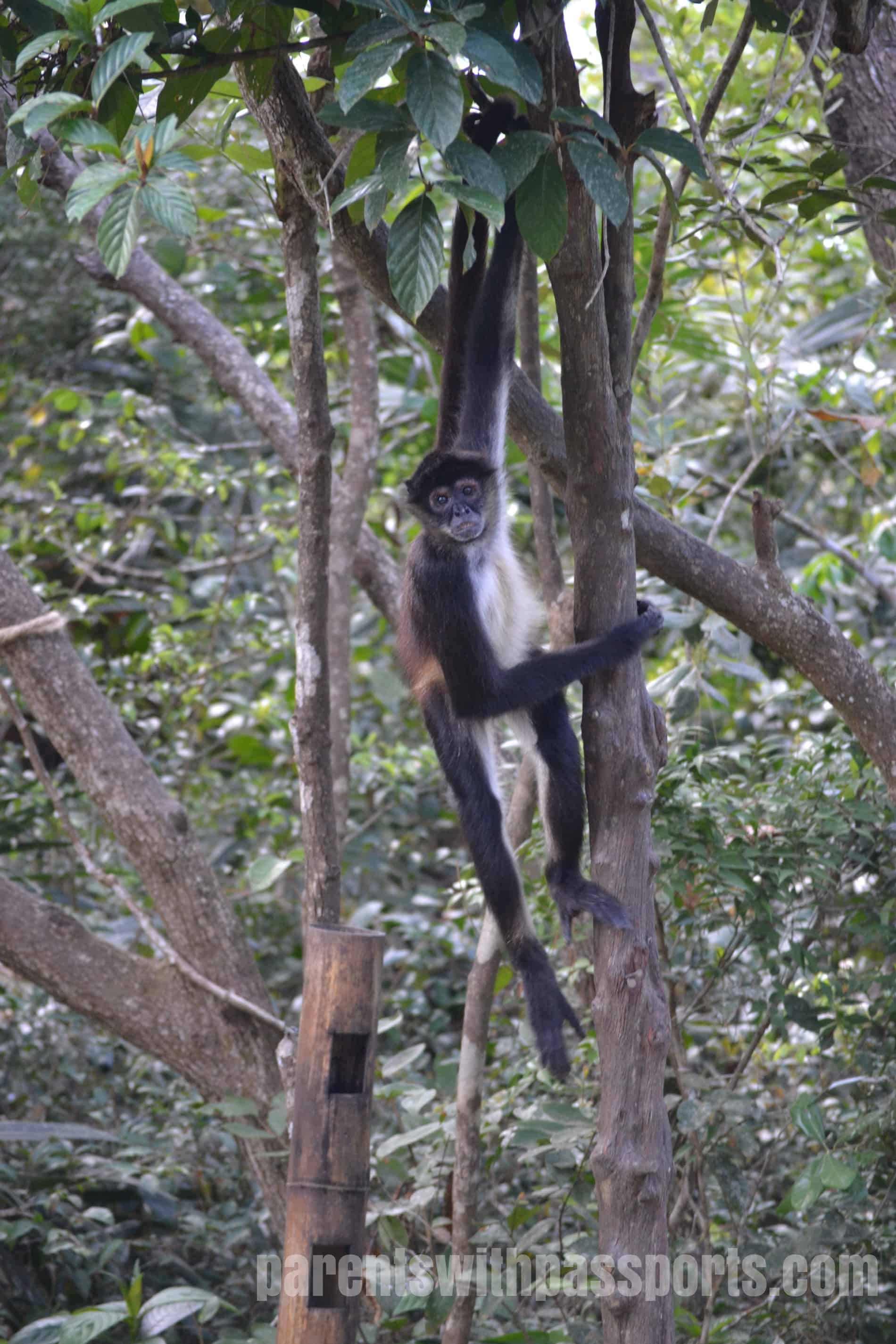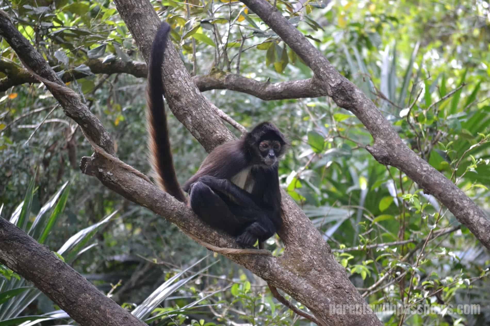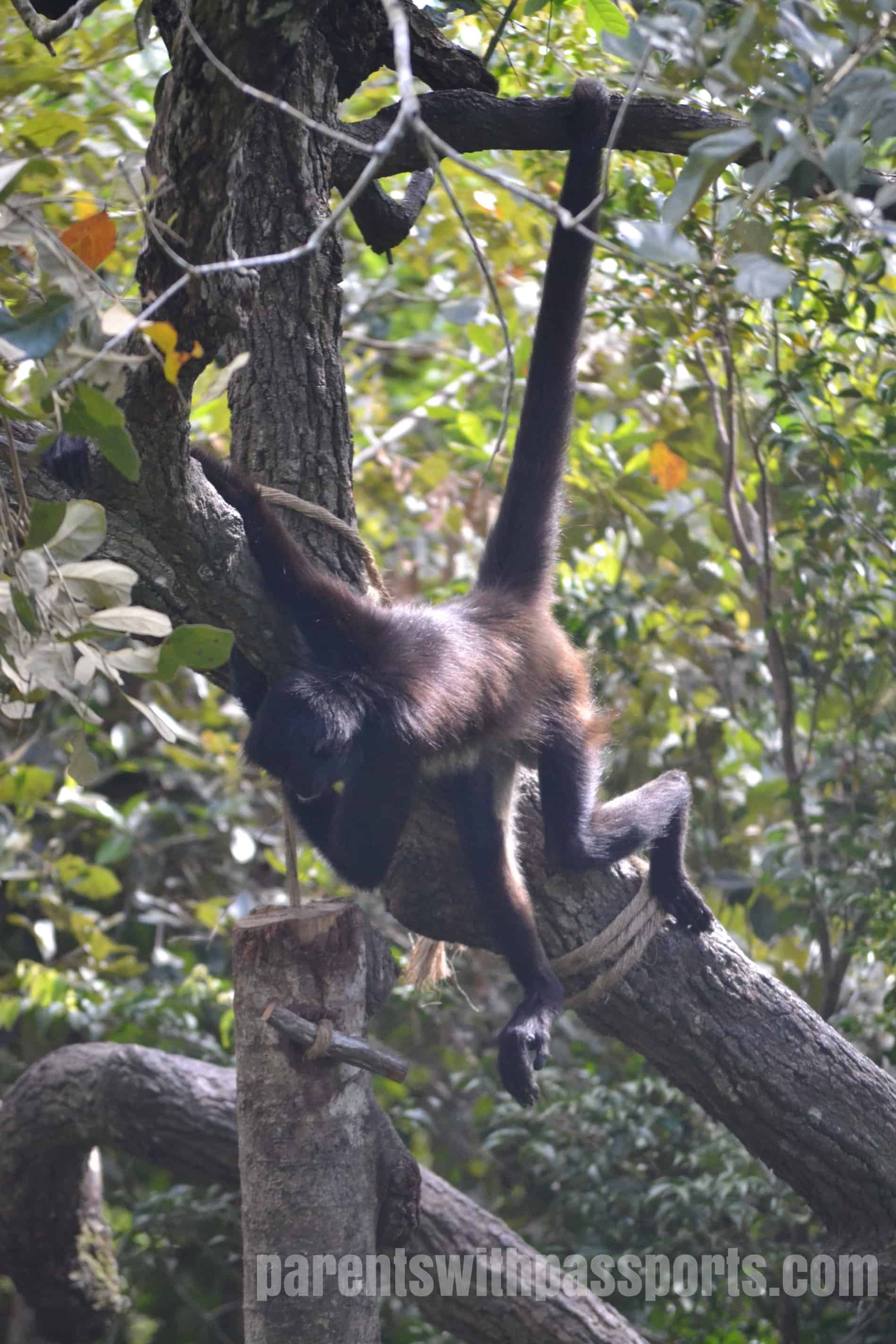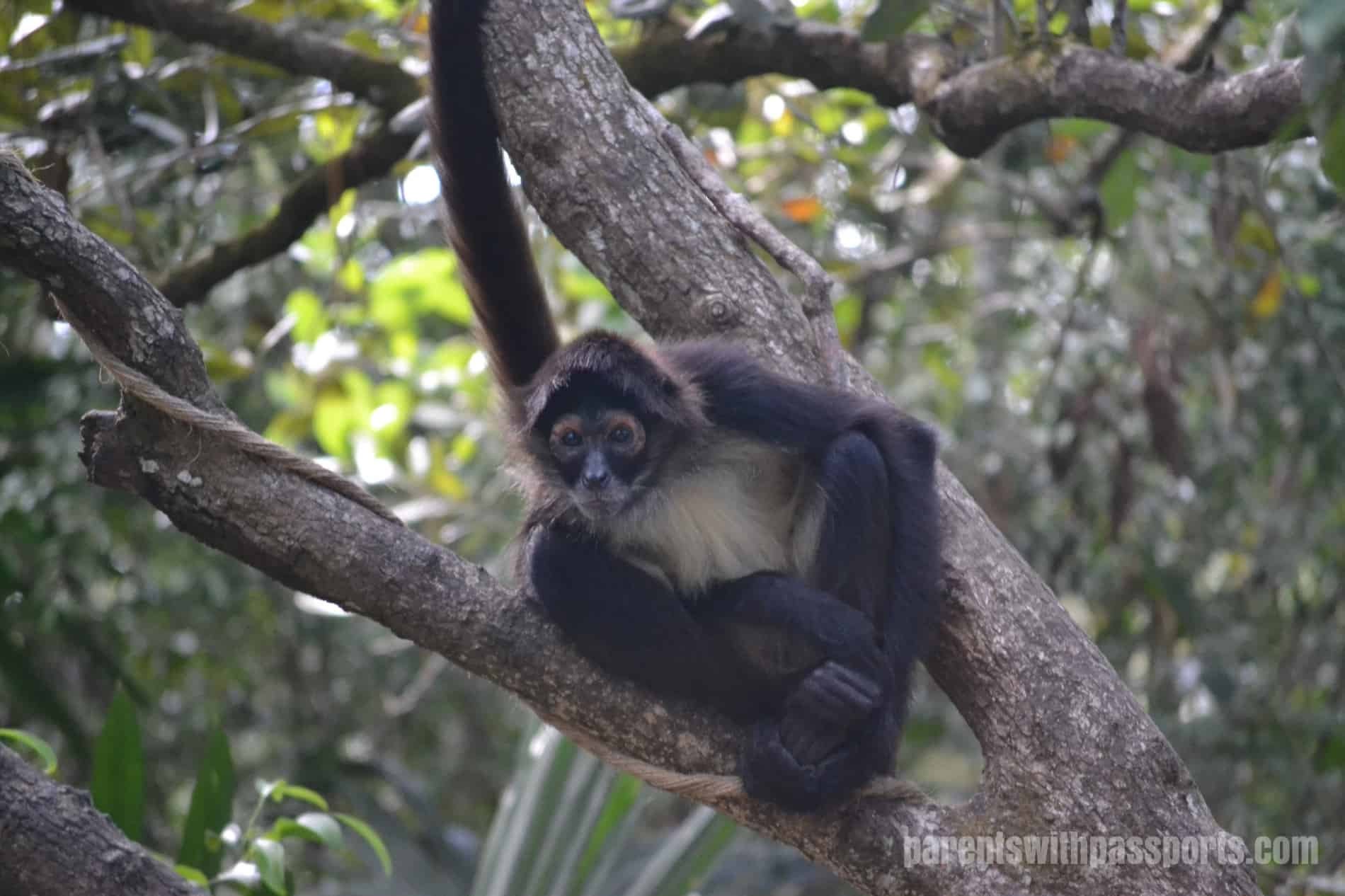 Belize is home to two different types of monkeys – Howler monkeys and Yucatan spider monkeys – and they roamed freely among the trees of the Belize Zoo. There were fences at ground level to keep visitors out but the monkeys could easily move around from tree to tree anywhere in the zoo. Spider monkeys are long and skinny and we loved watching them dangle from the trees by their tails or swing from tree to tree with their long arms. They were really active while we were there.
