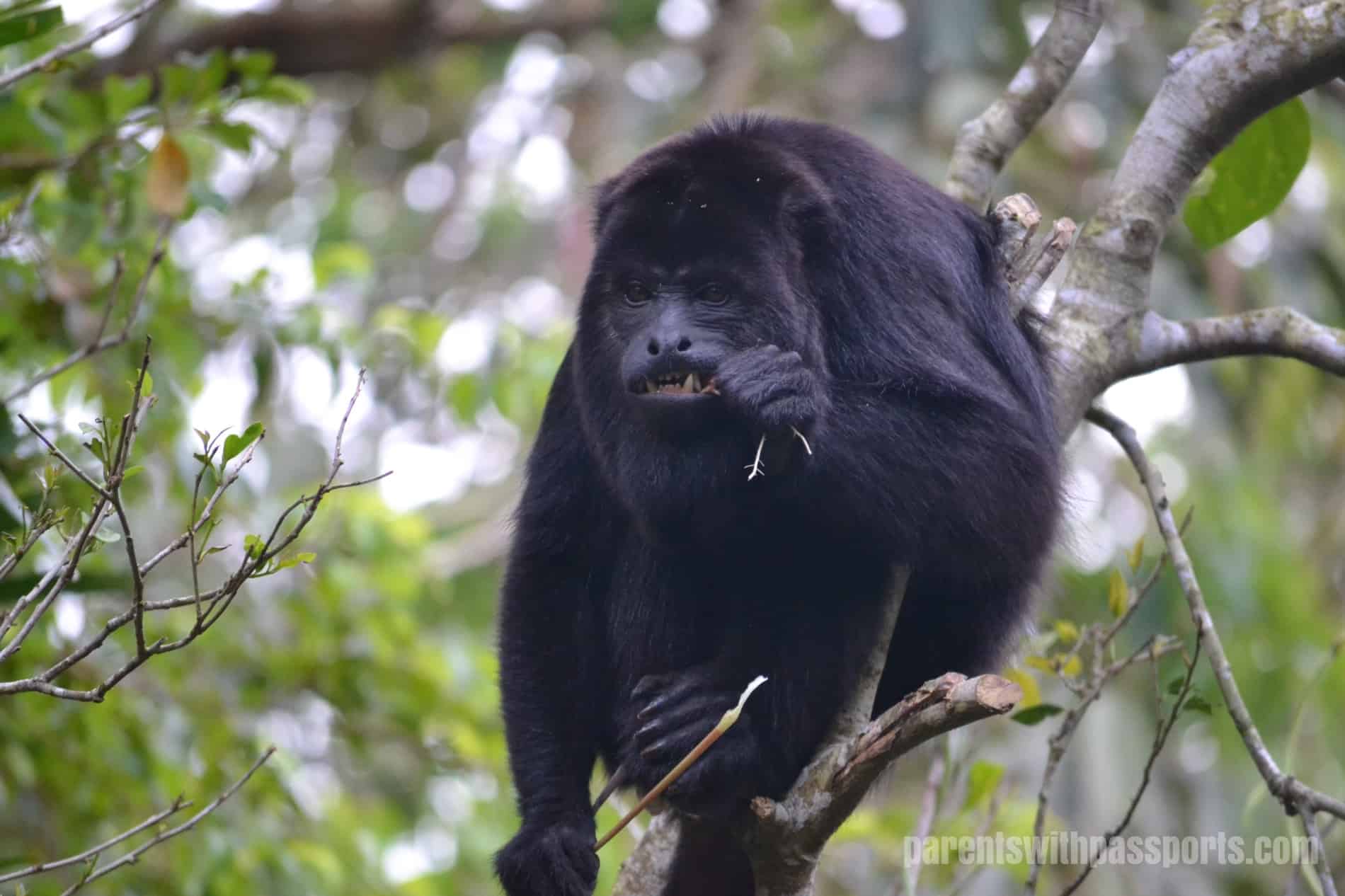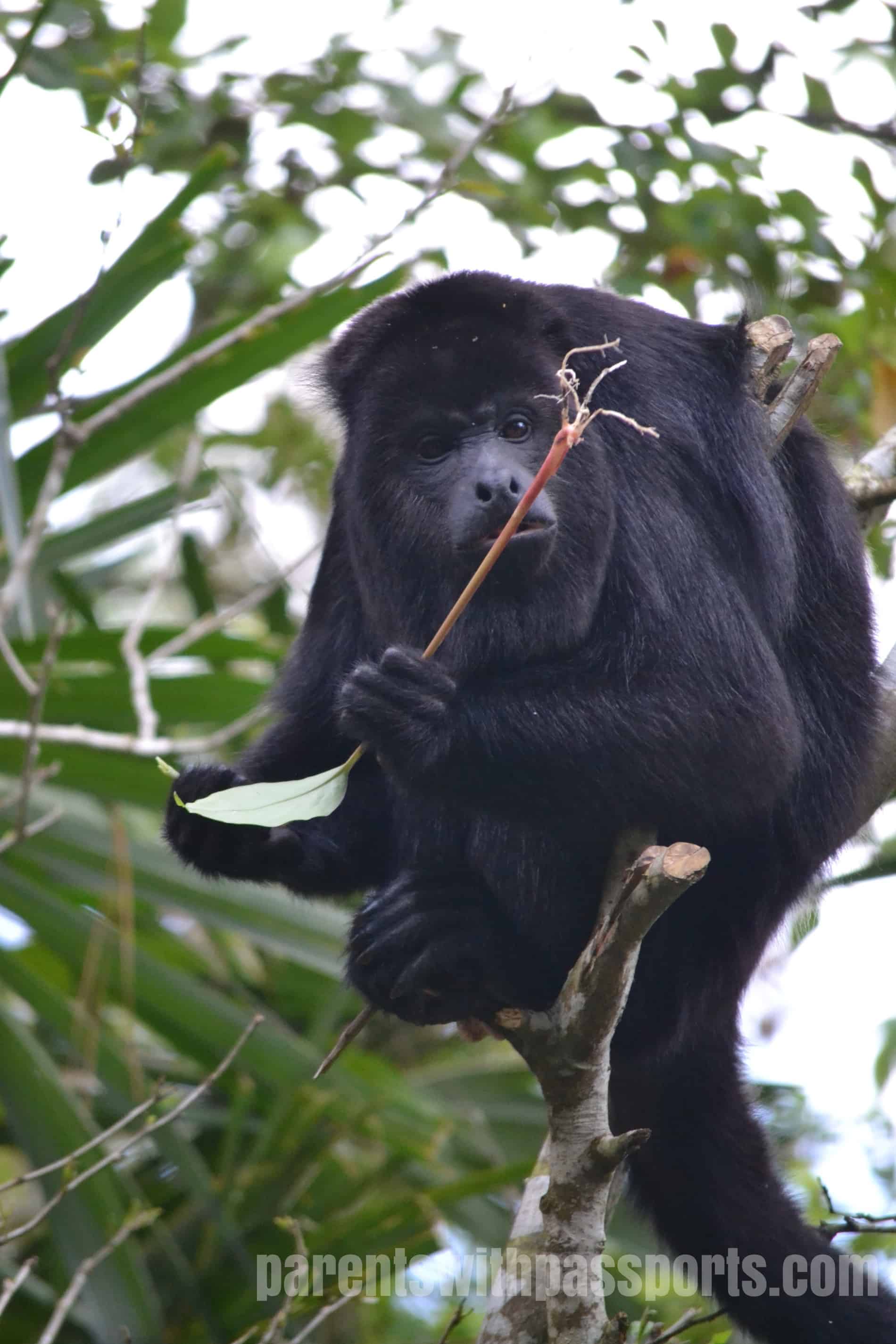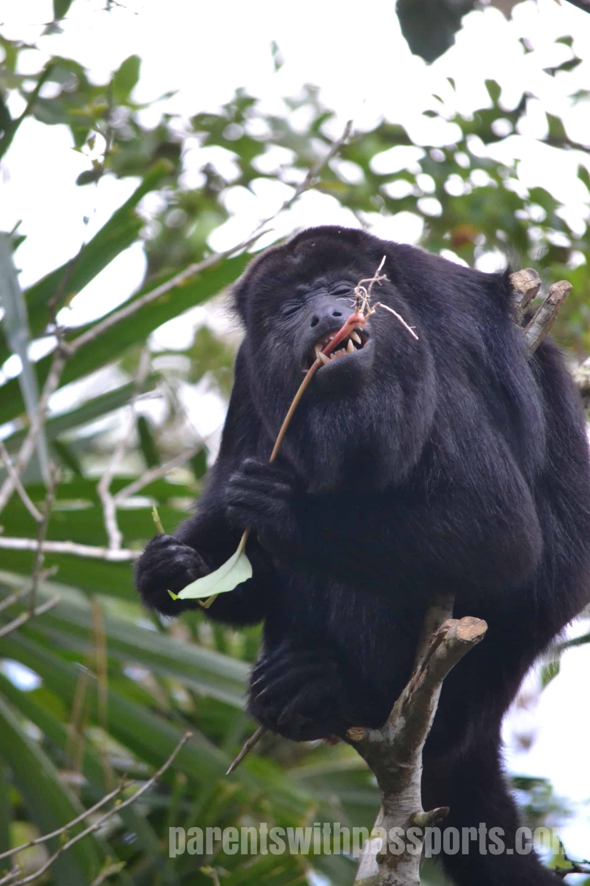 The howler monkey is also known as a baboon in Belize. They are the largest – and loudest – monkey in Belize. While they were mostly seen and not heard while we were at the zoo, we became quite familiar with their howling calls during our nights in the jungle. Howler monkeys are endangered and can only be found in Belize, Guatemala and Mexico. Belize is doing its part to save the species and has created the Community Baboon Sanctuary along the Belize River to preserve its habitat. We enjoyed close-up views of the howlers as they feasted on leaves and branches. They were very expressive and focused on the task at hand.