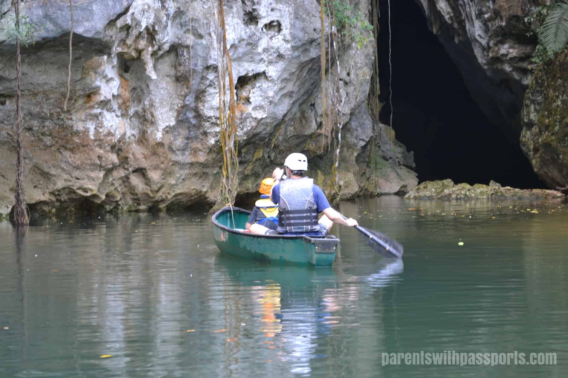 We had two canoes for the five of us – Blair paddled one canoe with JB manning the spotlight.  Roque paddled the other with RB shining the way and me just along for the ride.  Roque got Blair and JB all set up and ready to go and they paddled around while we got situated.  The area at the mouth of the cave was beautiful and peaceful.  Within a few minutes, we were ready to head into the cave.