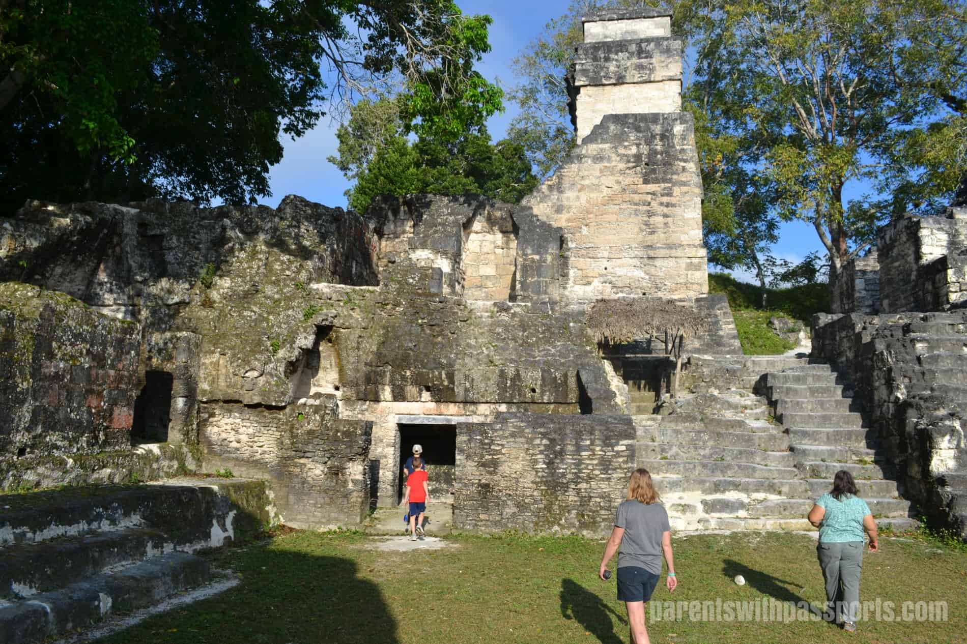 Most people who stay overnight in Tikal do so in order to go on the sunrise tour. I am certain that watching the sun come up over the jungle treetops while listening to the birds and animals wake up around you would be an absolutely amazing experience. I am also certain that it involves getting up at a ridiculous hour. I know my children’s limits. A 4am departure time for a tour is not within their limits.