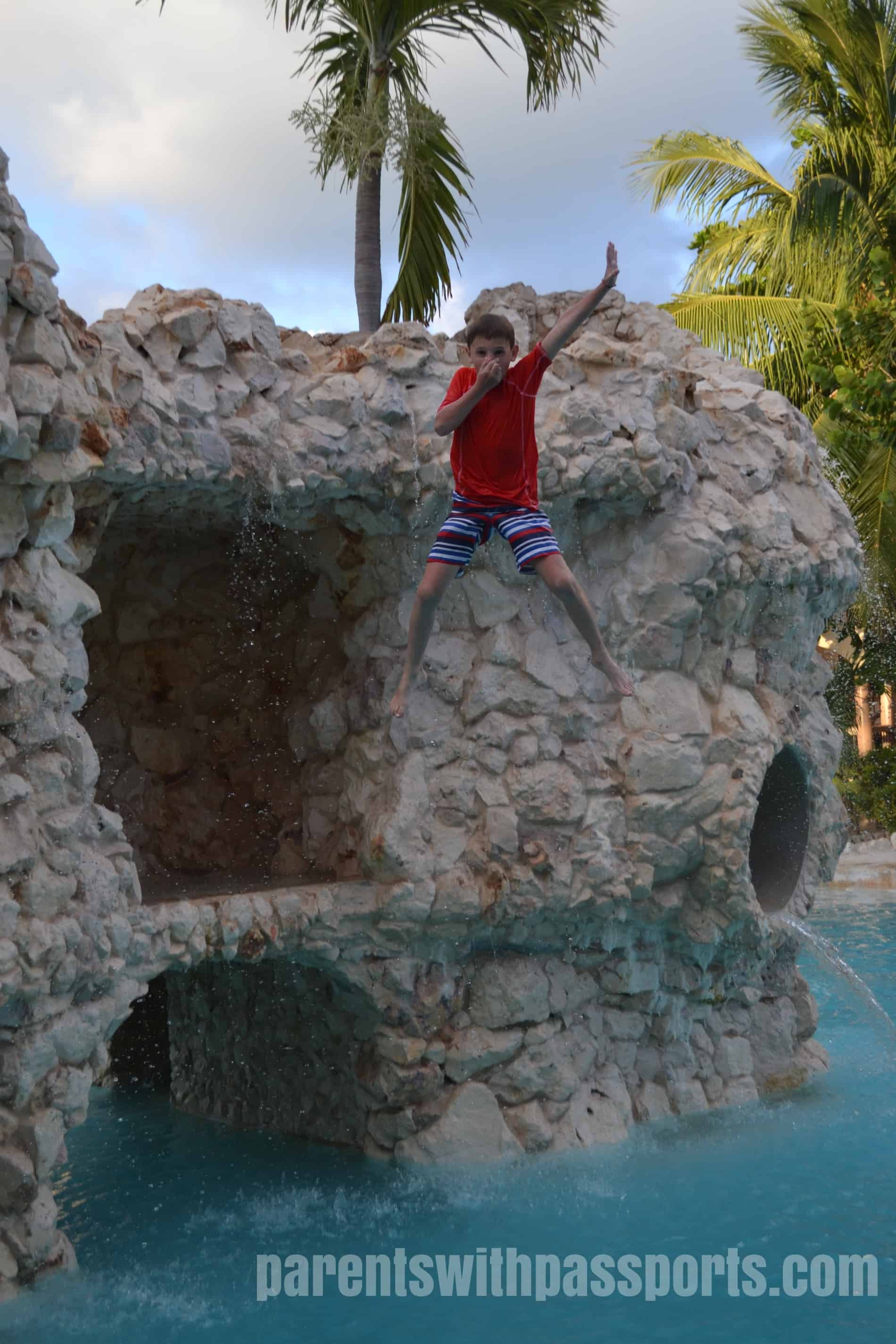 The other pool had a giant waterslide and rock structure to jump off of. It was not for the faint of heart. I jumped once and that was enough for me. It was high. Really high. But the kids couldn’t get enough of it.