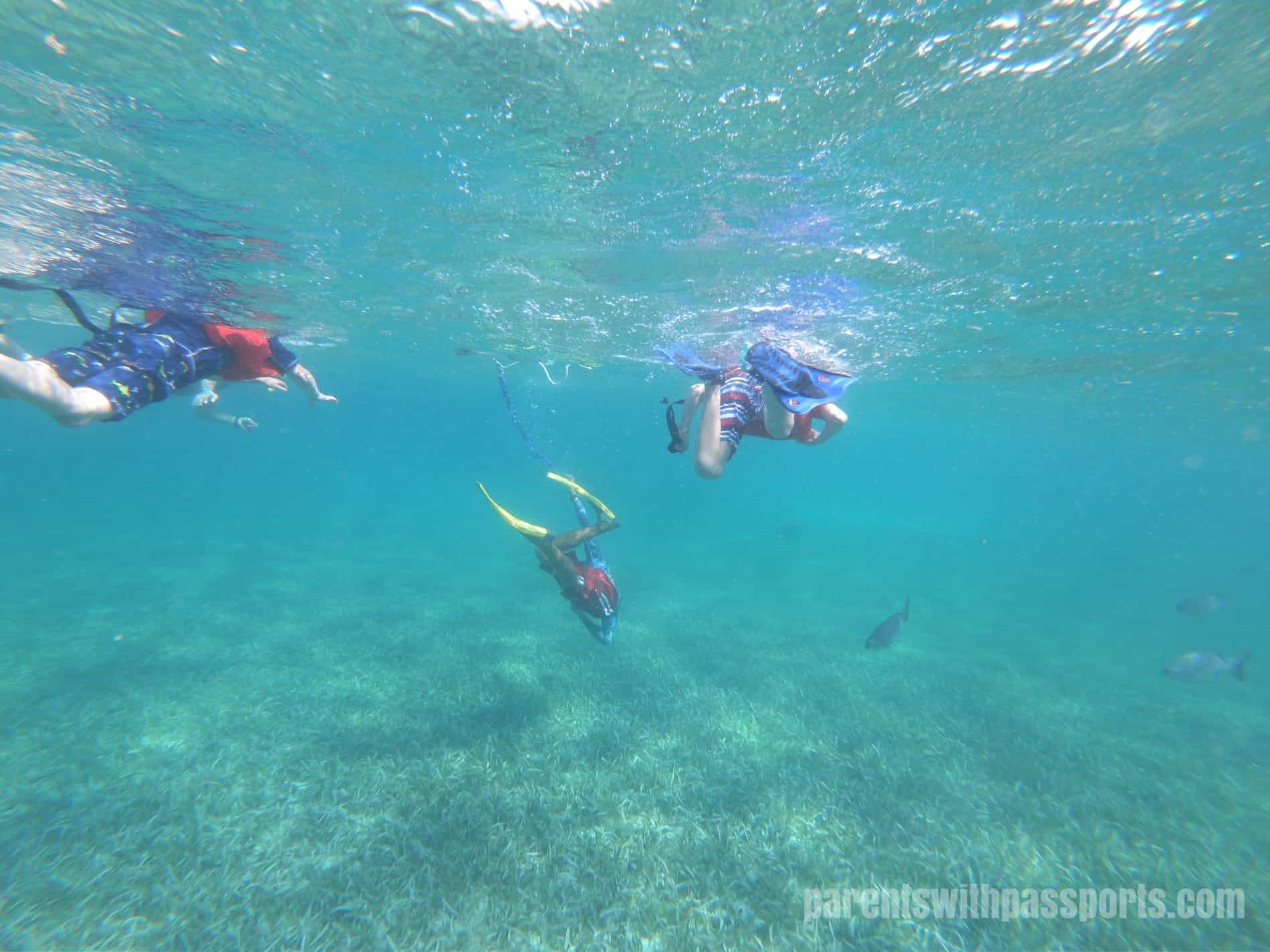 Despite my hopes that things would go smoother on this snorkeling adventure, we decided to book a private snorkeling tour just in case they did not.  I didn’t want the boys holding up an entire group of strangers.  I also knew that I didn’t want to spend the entire snorkeling trip worried and watching them.  I liked the idea of a guide being dedicated just to them and their safety.  I called around and got the best rate from Tuff e Nuff, which conveniently happened to leave from the dock at Coco Beach.
