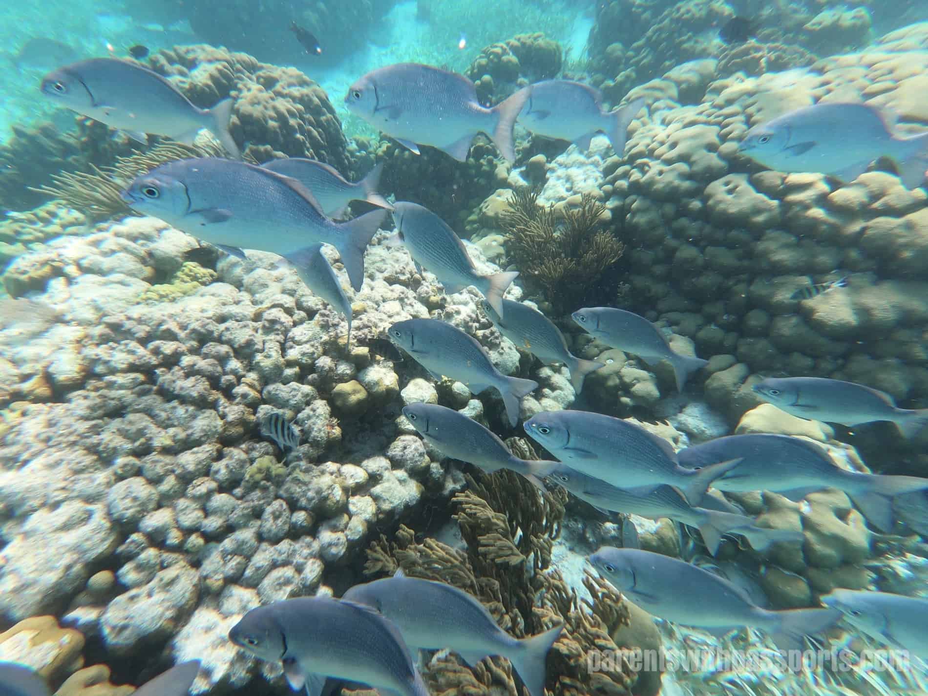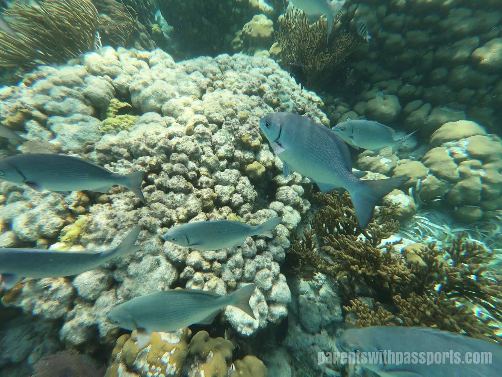 In between trying to defuse the escalating situation with the boys, I did get to do a little actual snorkeling.  I’m sure my experience was clouded by the external stressors, but I was actually a little underwhelmed by the whole thing.  I expected vibrantly colored coral and thousands of beautiful fish swimming around, but we got neither.  We did see a moray eel and an eagle ray, which were both amazing, but other than that it was one school of gray fish and some dull colored coral.