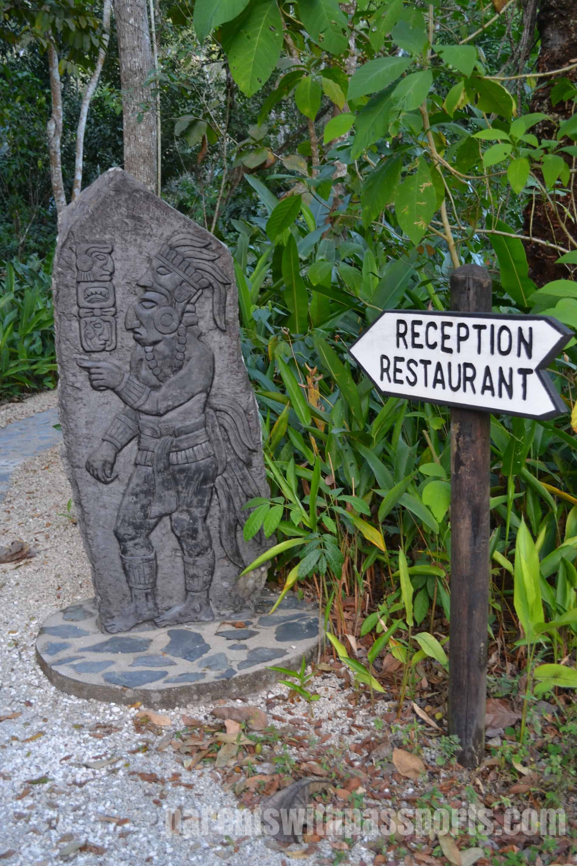 Right from arrival, we could see how beautiful the grounds were and how well taken care of the property was. Signs and decorations celebrated Belize’s Mayan heritage and the thatched-roof main building gave it a real jungly feel.