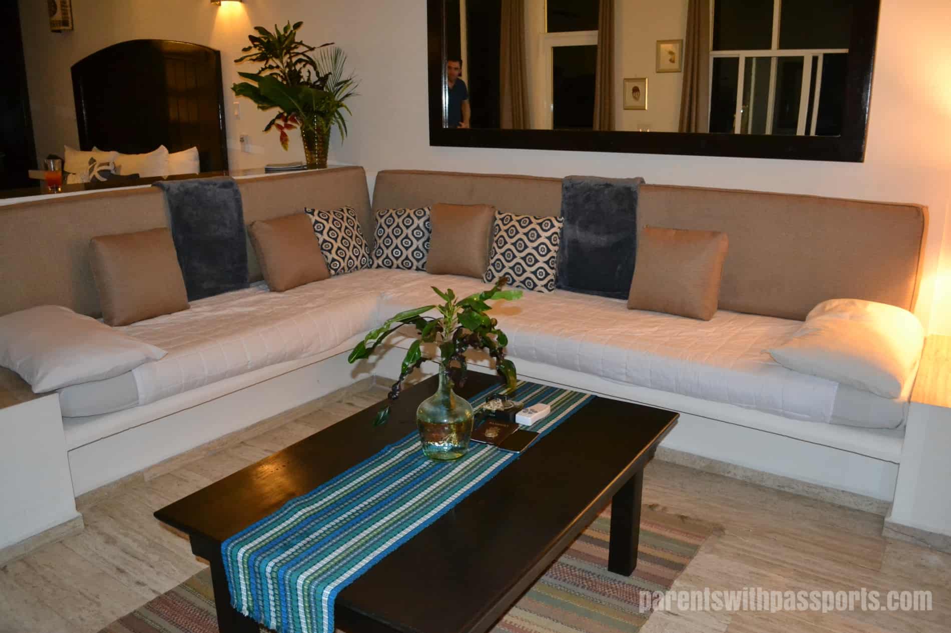 The River Front Suite was spacious and had plenty of room for a family of four. The couch was made up as two twin beds, which was perfectly fine for my boys at 8 and 10 years old. I’m not sure this particular room would work as well for teenagers or especially tall kids. It just depends on the kids and how much bed space they need to be comfortable. For us the room layout and space was great.