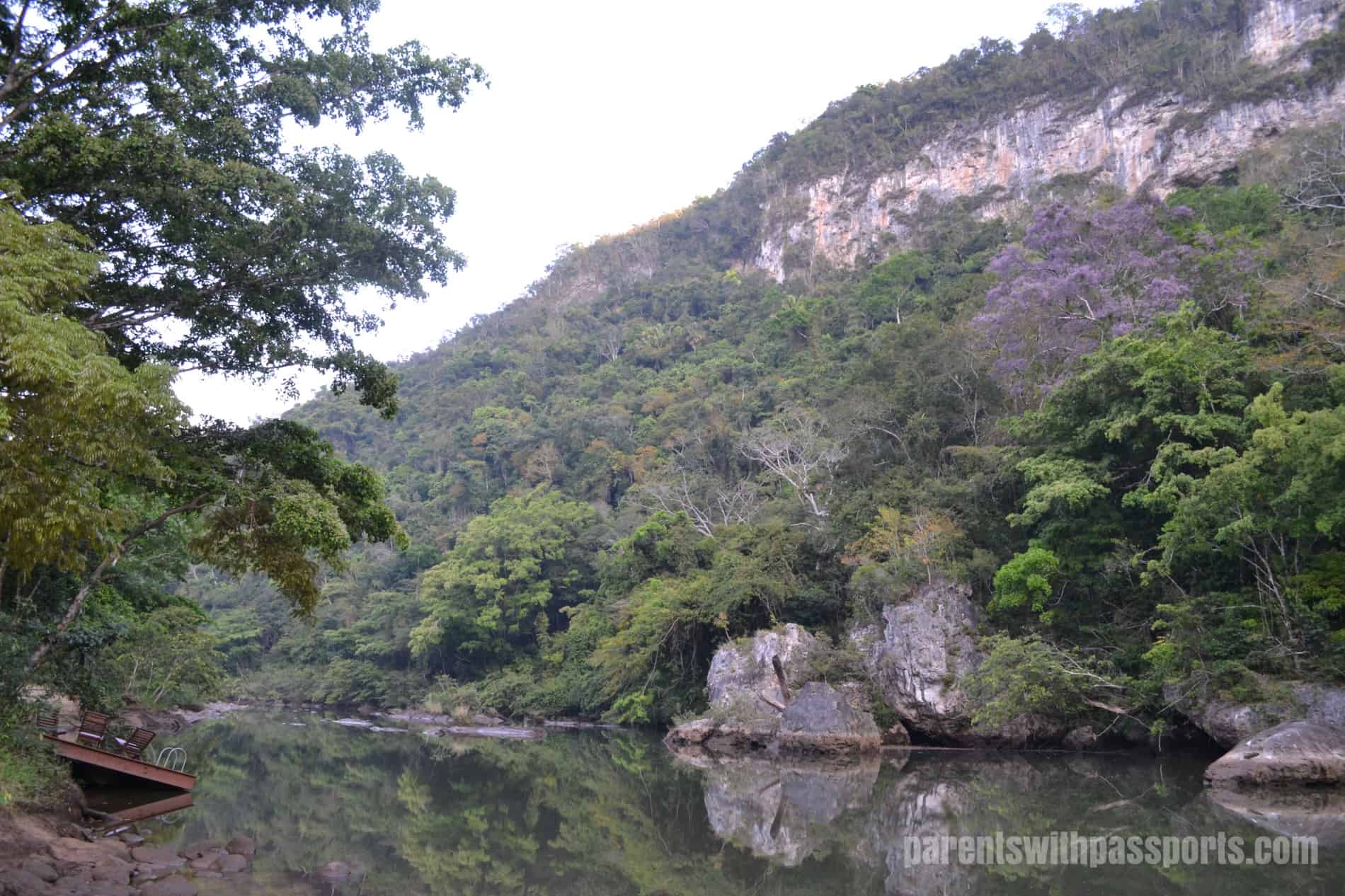 The setting of Black Rock Lodge is stunning. Deep in the jungle, there is nothing around you for miles. The Macal River flows below and the jungle trees across the river are filled with toucans and howler monkeys. And there is no shortage of animals on their side of the river. There are almost 400 species of birds living around Black Rock Lodge, and we also saw dozens of lizards and even a boa constrictor.
