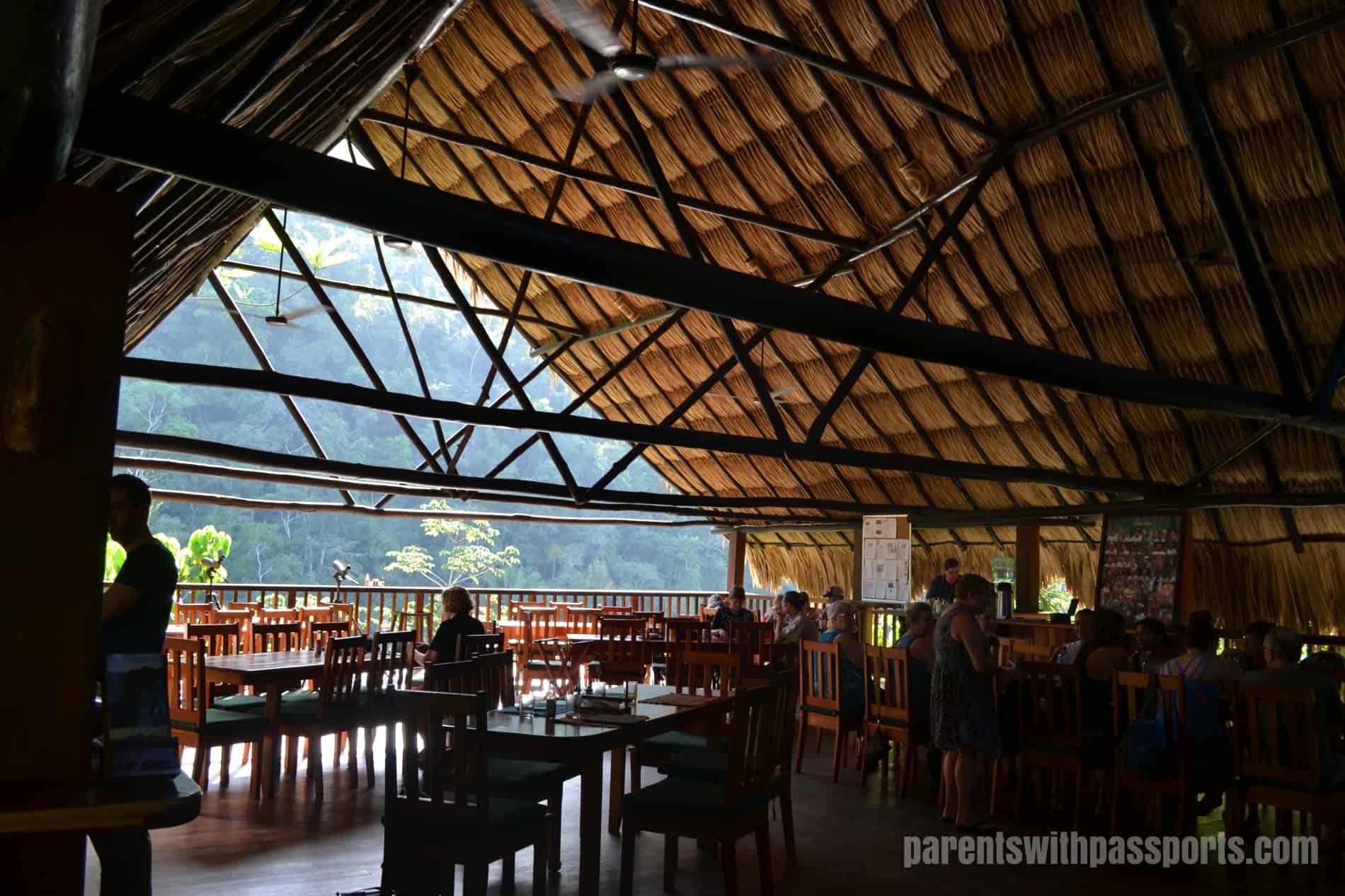 The main room of the lodge was a huge, open-air, thatched-roof building that served as the restaurant, bar, lobby, and meeting area. It was beautiful. It looked down over the river below and the bar at the railing was a great place to spot birds and wildlife.
