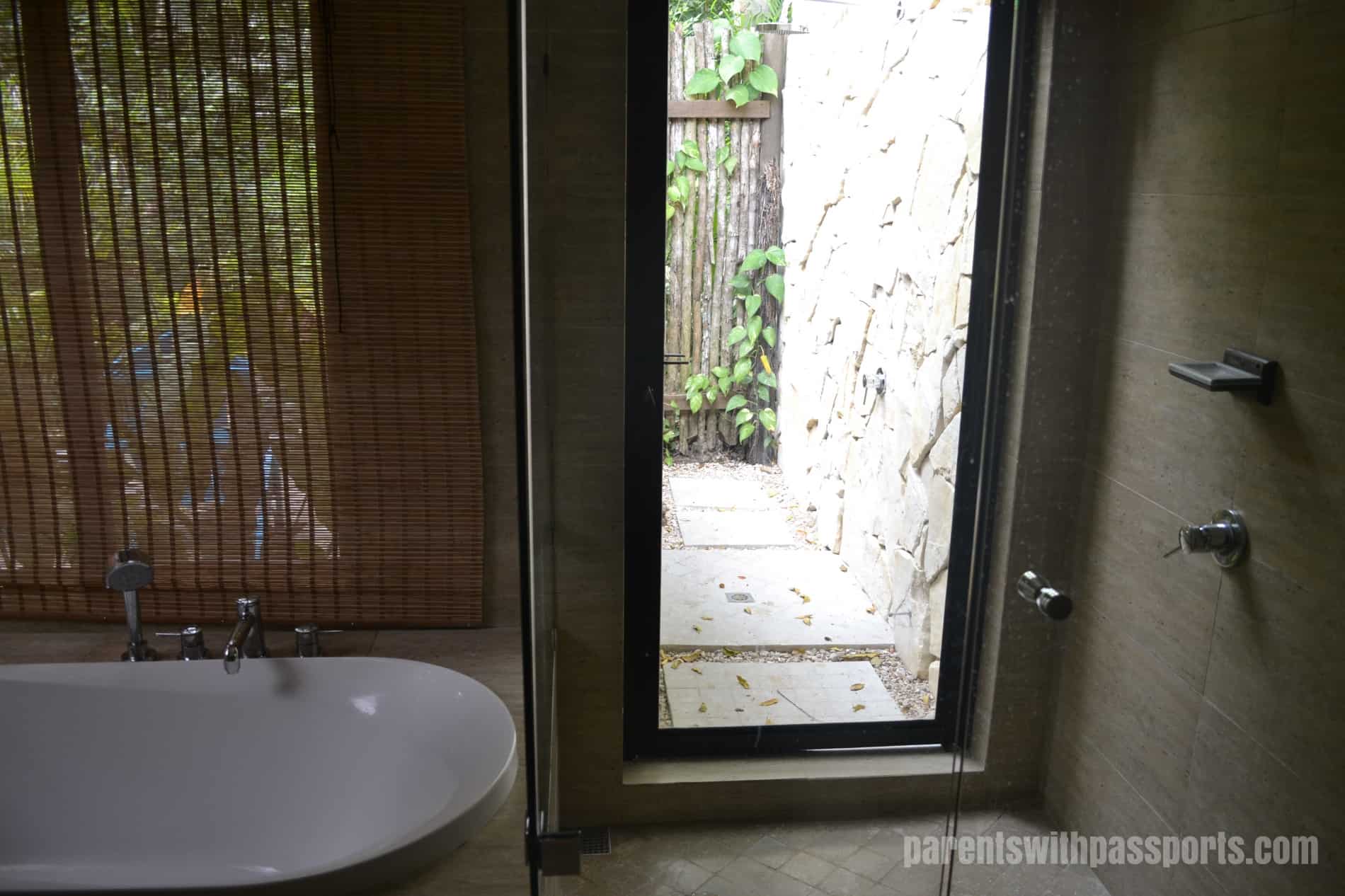 We had a private outdoor area in the back of the cabin with a cute sitting area and a hot tub. We didn’t have the time or appropriate temperature to make use of the hot tub but it was a nice touch. I imagine on a cooler evening it would be a neat experience to sit in the hot tub and listen to the jungle sounds around you.