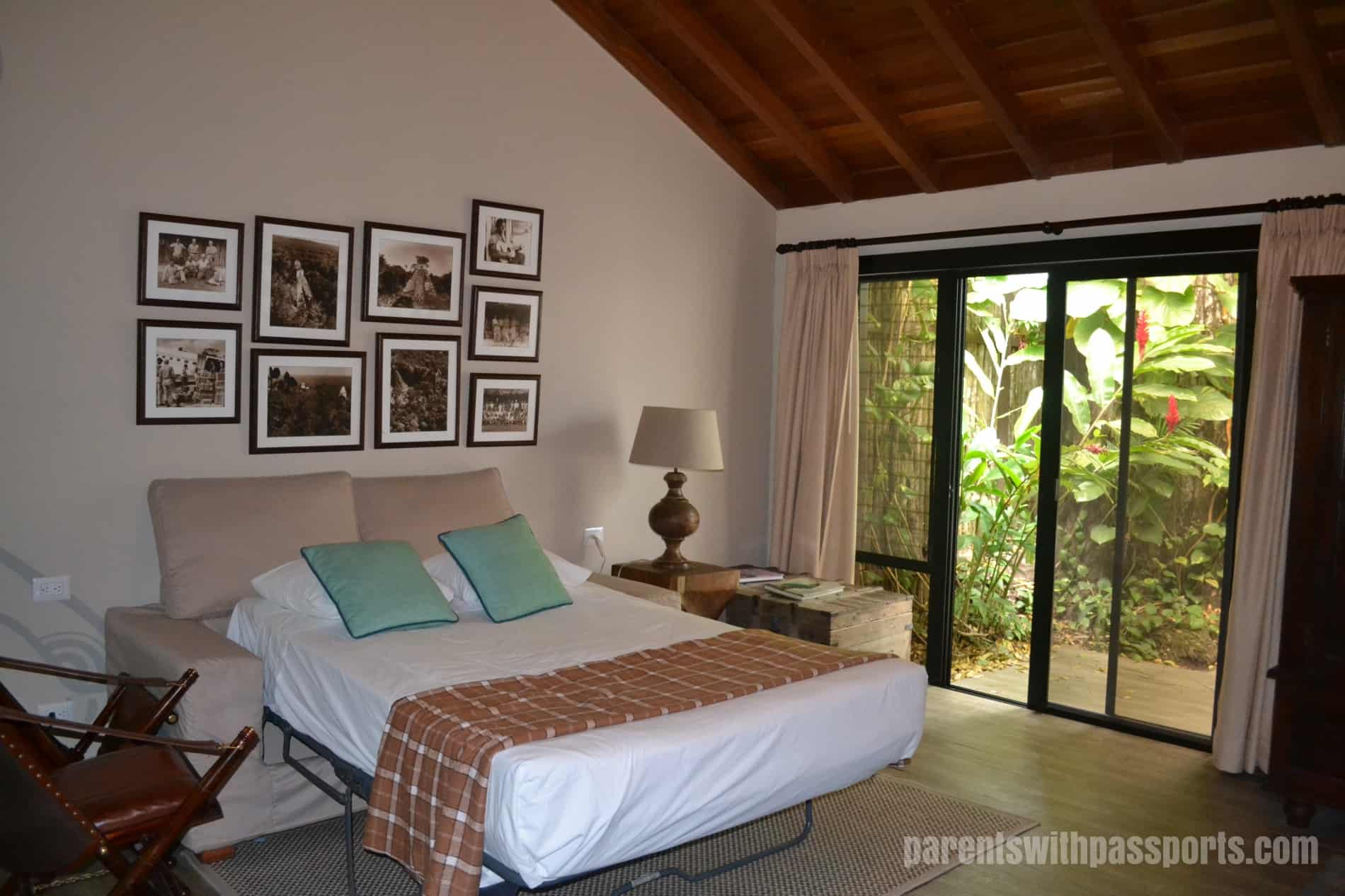 We were in cabin 4, a cute cabin nestled in the jungle behind the main building. It had a king-sized bed and a queen pull-out couch. The bed was comfortable and the boys slept well in the pull-out. The room was a little crowded when the pull-out was set-up, but since we were only in the room for a brief period of time, it wasn’t an issue.