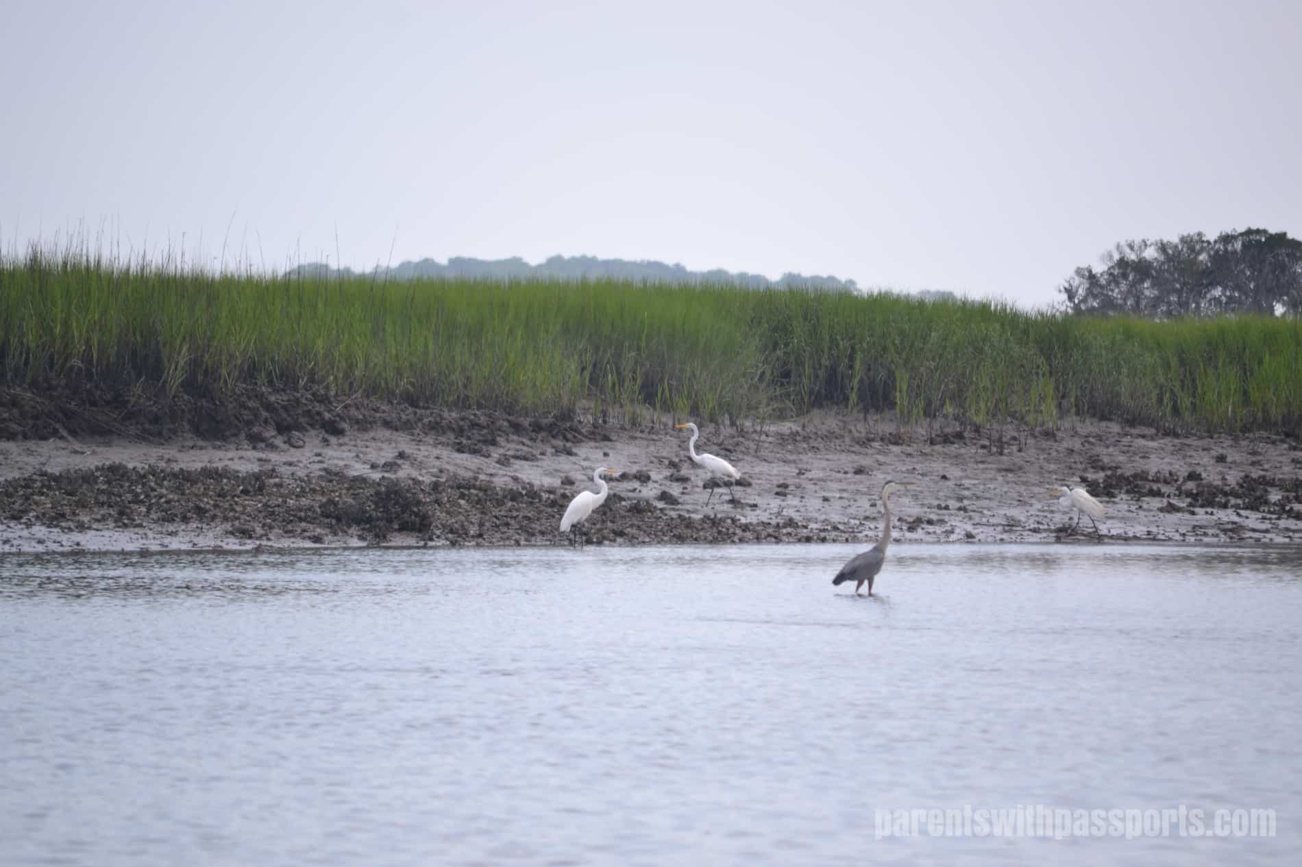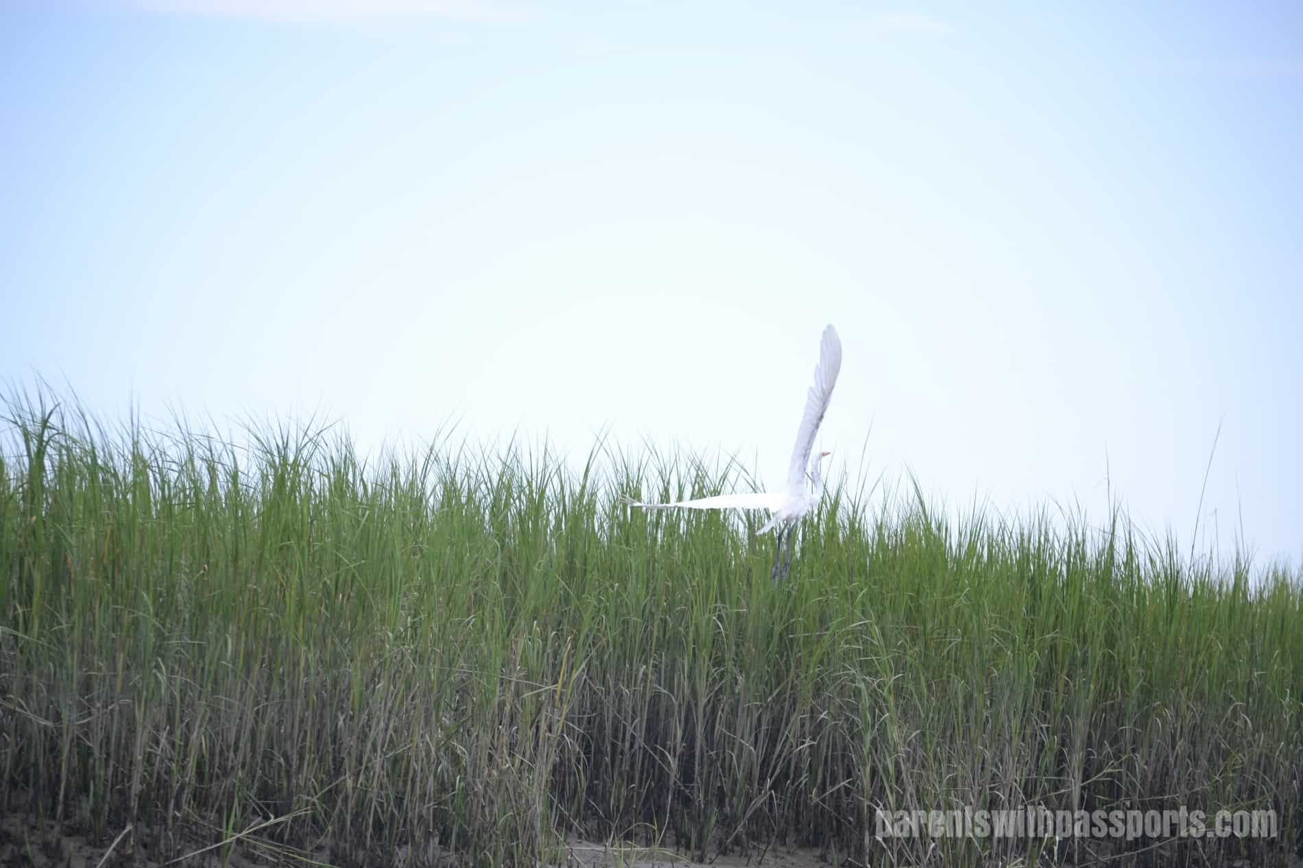 And being in the creeks and marshes meant more opportunities for wildlife spotting, which was one of our main reasons for taking this trip.  (We were going to the island to take the “Wild Daufuskie Eco-Tour”.)  We saw tons of beautiful herons and egrets, as well as some playful dolphins swimming near the boat.