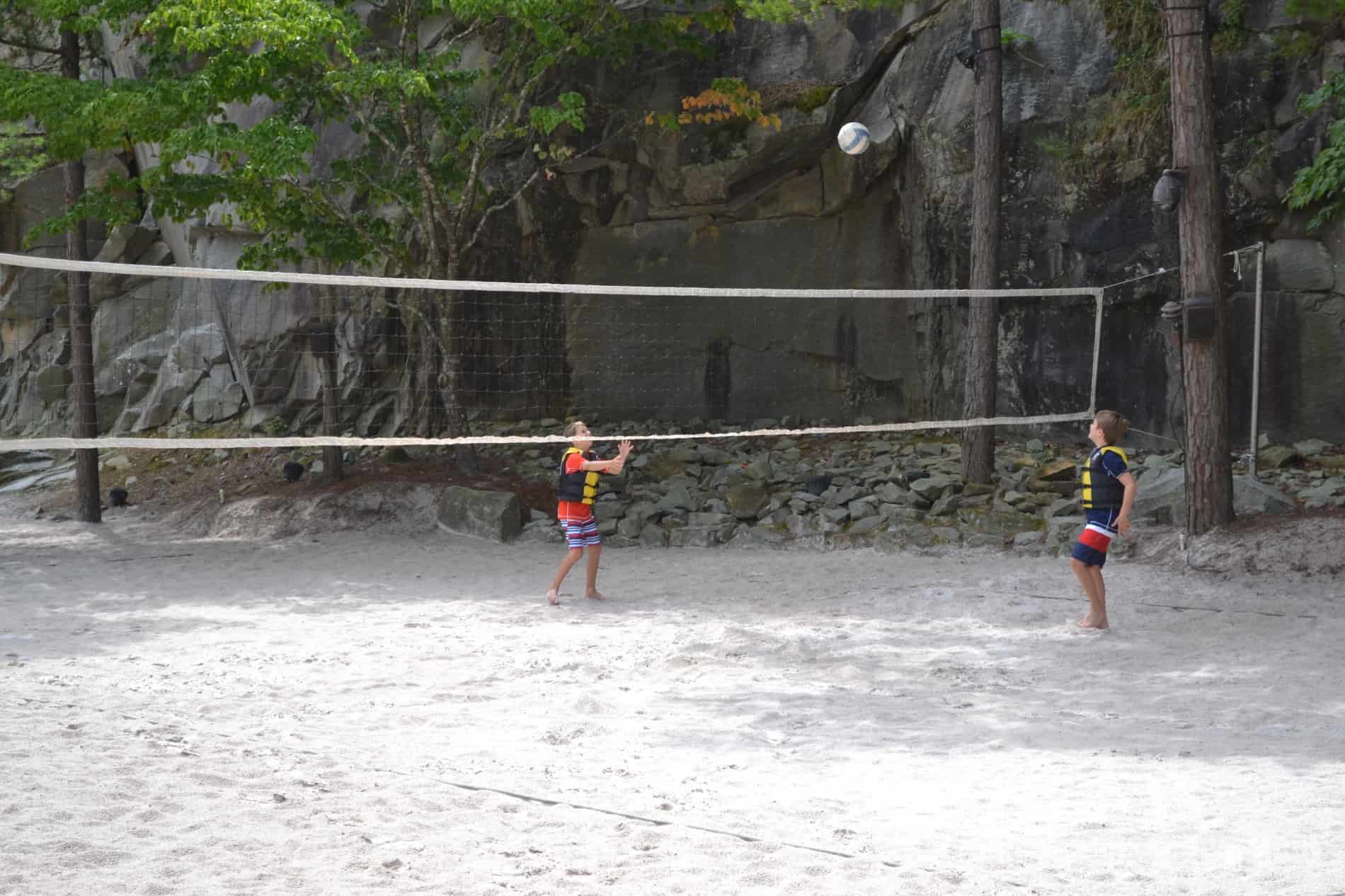 In addition to the natural swimming pool, the quarry area has a small white sand beach, a sand volleyball court, a grassy area, and a covered pavilion. You can bring blankets and chairs and set up on the grass, or grab a table under the covered pavilion for some shade. Food and beverages can be brought in, but alcohol is not allowed.