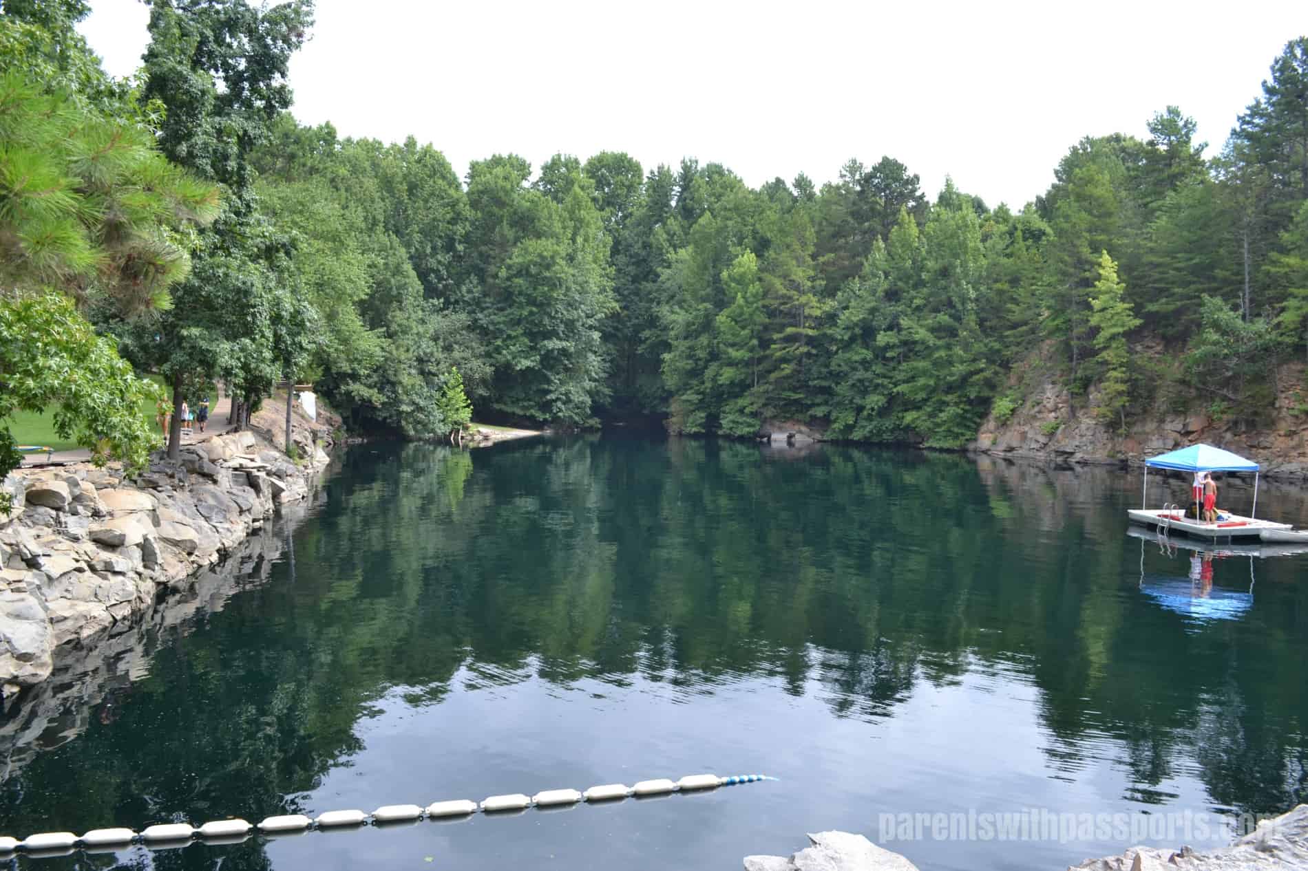 Located about 30 minutes north of Charlotte in Mooresville, Carrigan Farms is a 5th generation family-owned farm. With pick your own strawberries in the summer and pumpkins and hayrides in the fall, it is one of several farms to choose from in the Charlotte area for a fun family outing. But Carrigan Farms also has a feature that is completely unique – a natural, spring-fed body of water known as The Quarry.