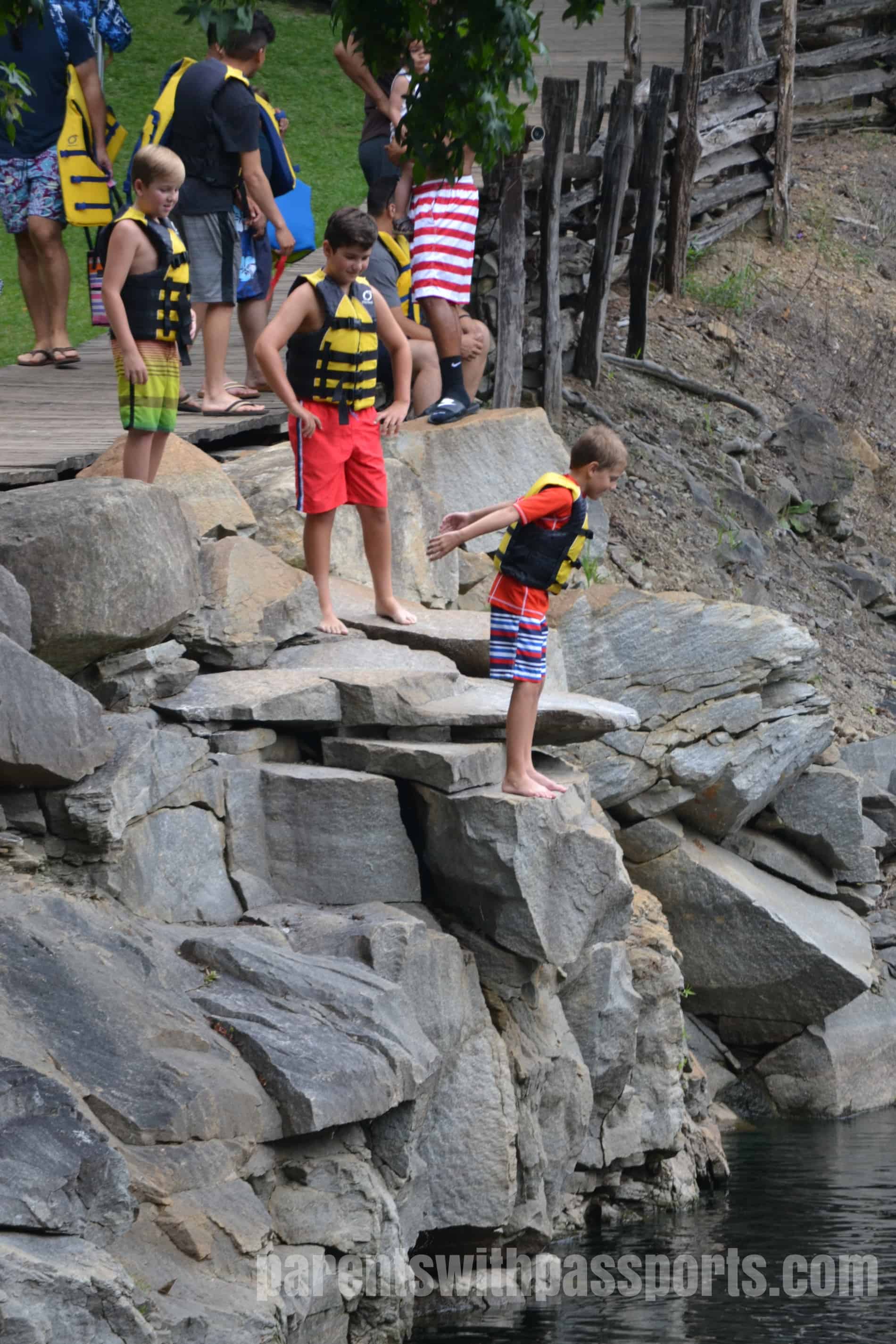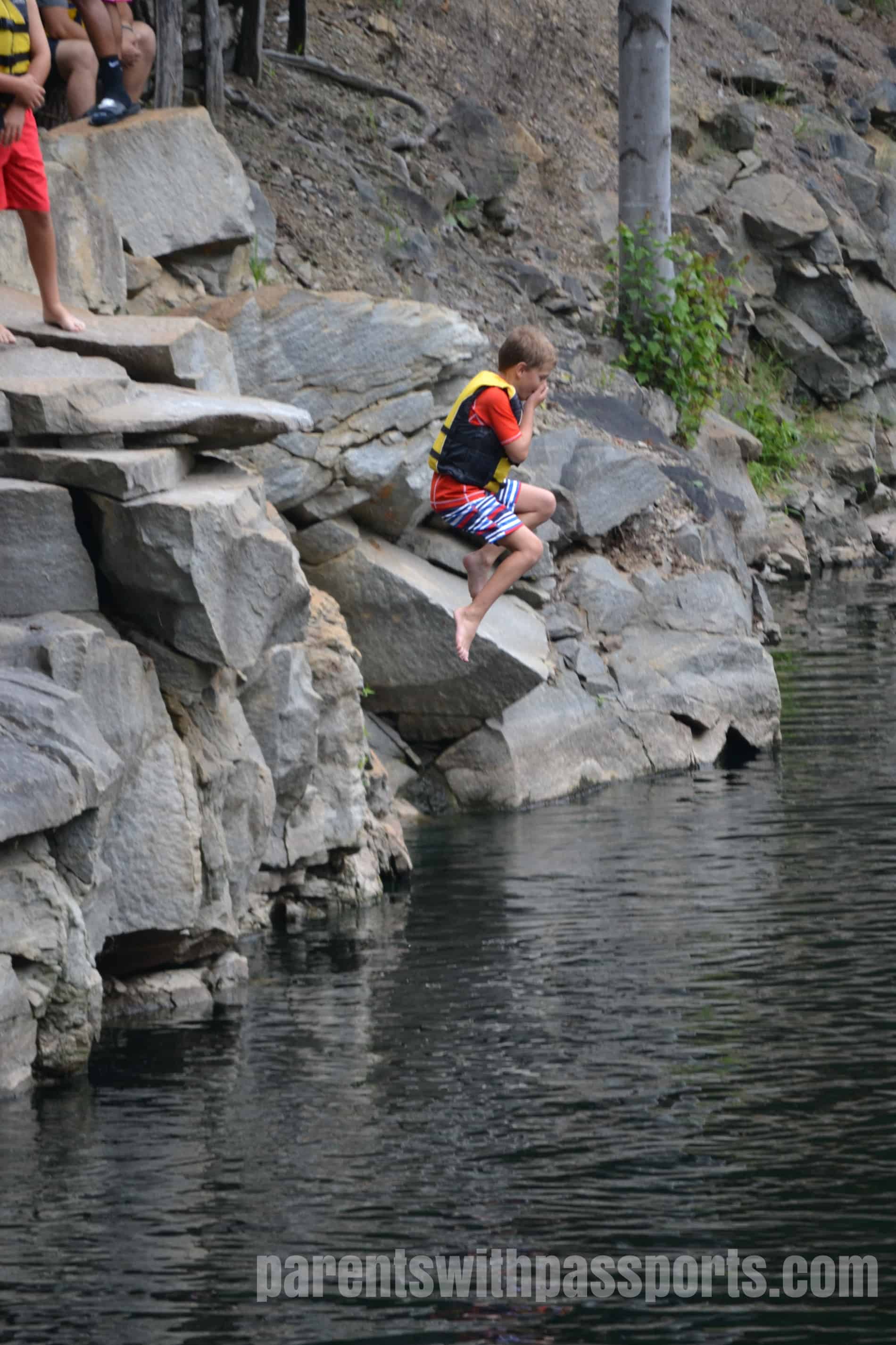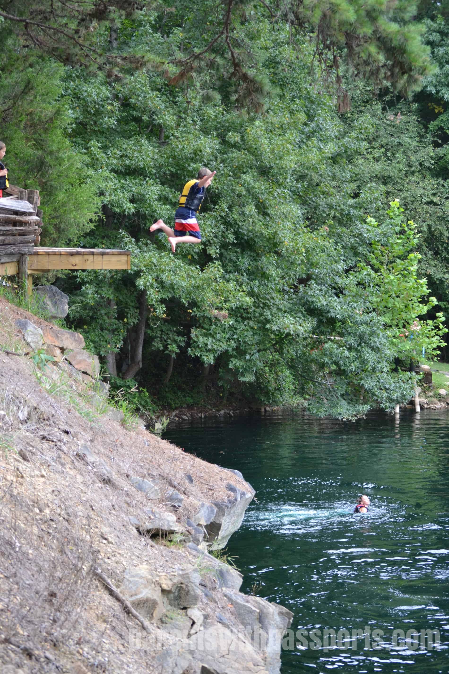 There are a handful of designated jumps – a specific rock that juts out over the water or a small deck built out over the water – but for the most part it is a free-for-all on where you could jump. With the exception of a few spots where the lower rocks came out too far, you could safely jump in just about anywhere. The plus of that is that there were many places to jump, offering a variety of heights and experiences. The minus of that is that it can potentially be chaotic as people could be literally jumping almost everywhere and lifeguards can’t be at ever single spot that someone might jump from. I will say that when we were there, everyone seemed to be respectful and careful of others. But parents should watch their kids to be sure that the spot they are jumping from both has enough clearance from the rocks below and is free of other swimmers immediately beneath them.