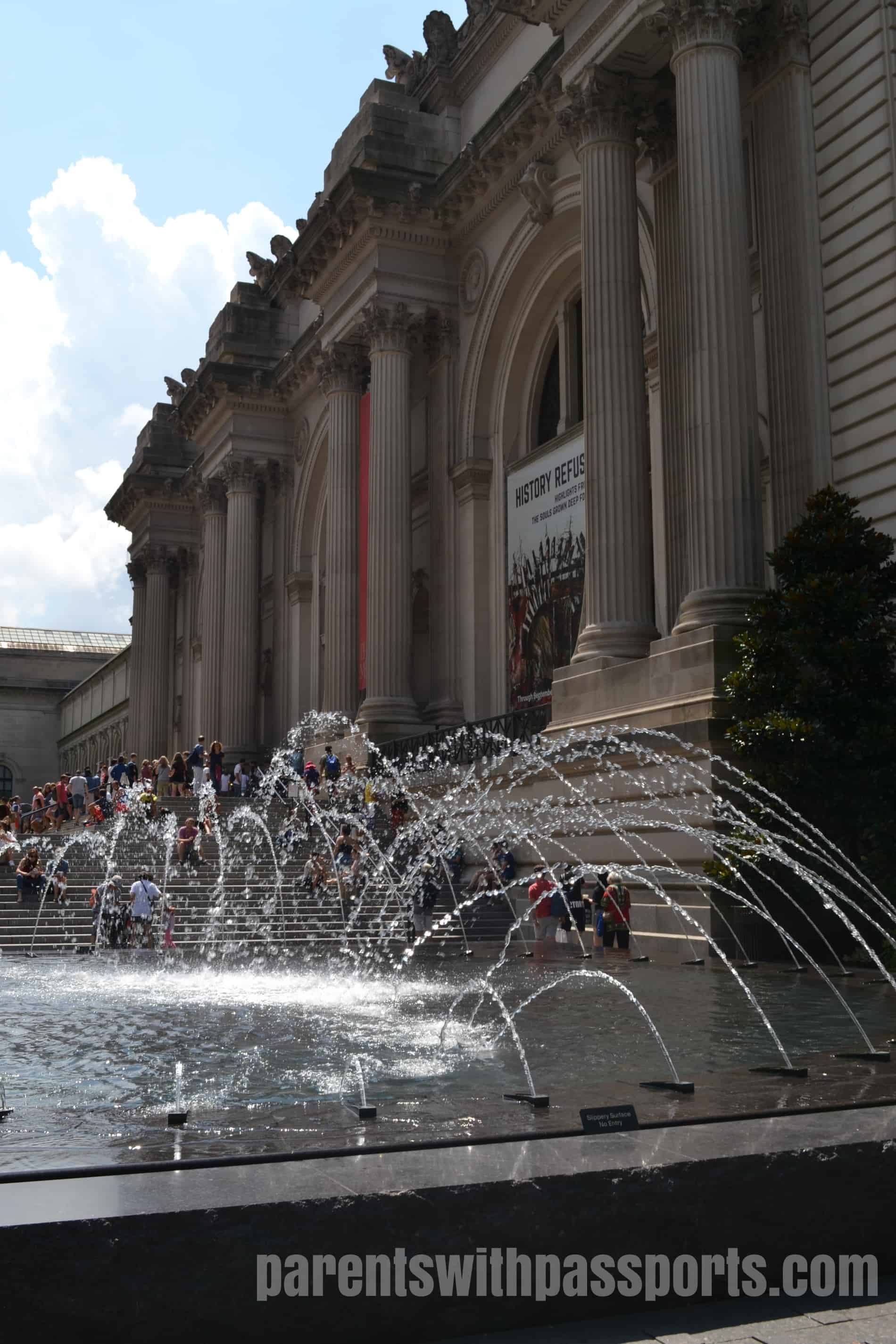 The Met was our last stop in NYC. And of course, when we headed that way, the skies completely cleared and we had the best weather of the weekend. But we stuck to the plan rather than change to an outdoor destination. The boys were excited, so no use in rocking the boat. We did enjoy some time outside before our visit at the museum’s fountains and after our visit getting pretzels and ice cream.
