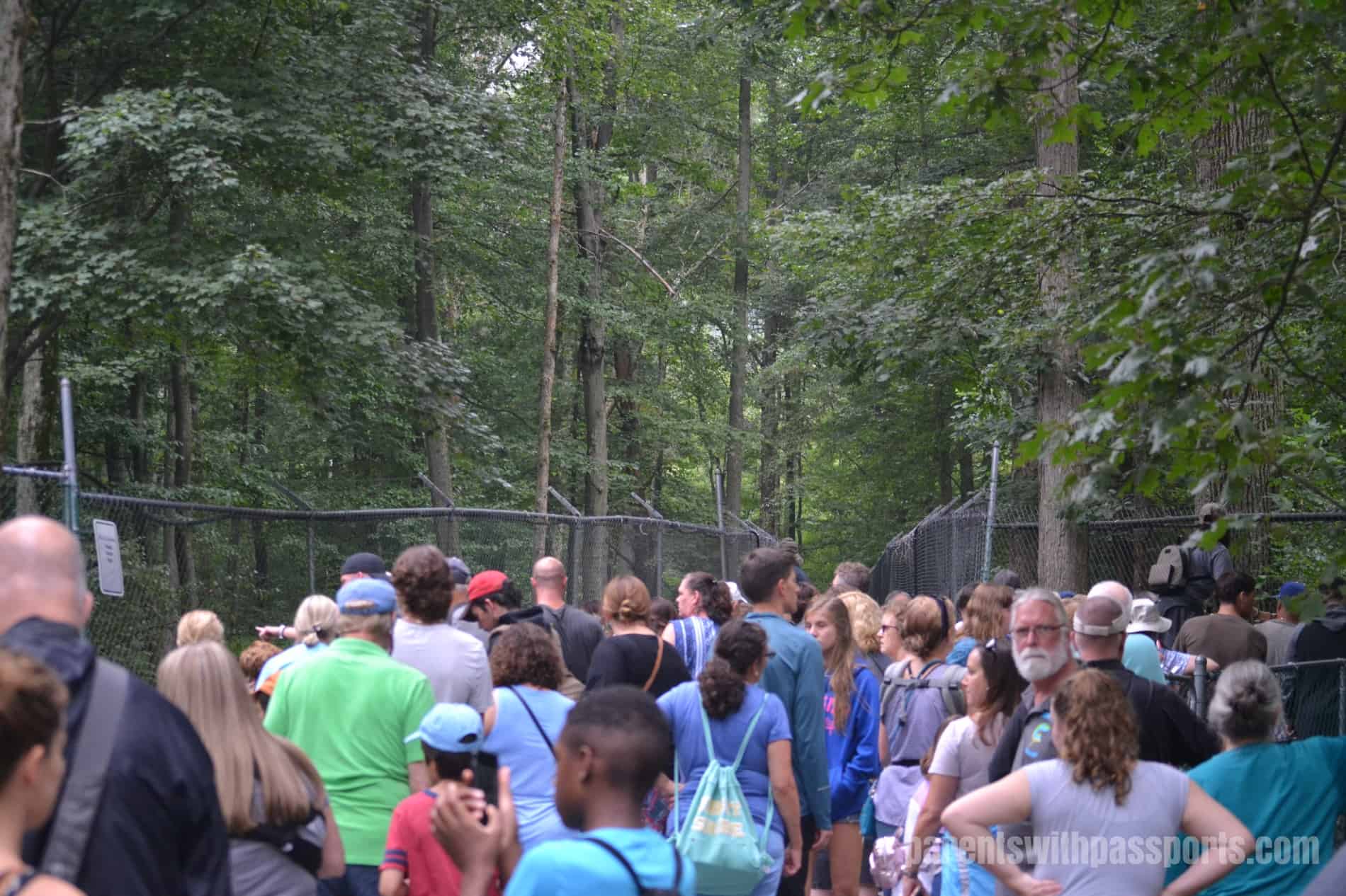 That being said, there were so many people on this tour.  There had to be well over a hundred people.  I was surprised that they allowed so many to come, especially since I had been dissuaded from coming the previous day because they said a lot of people were signed up.  I can’t imagine having any more than they already did.  Unfortunately, I think it took away from the experience.  Despite having a loud voice, it was still difficult to hear Jim much of the time.  And with so many people crowded around, it was especially hard for kids to get views into the enclosures he was talking about or to see the wolves up close when he called them and gave them treats.