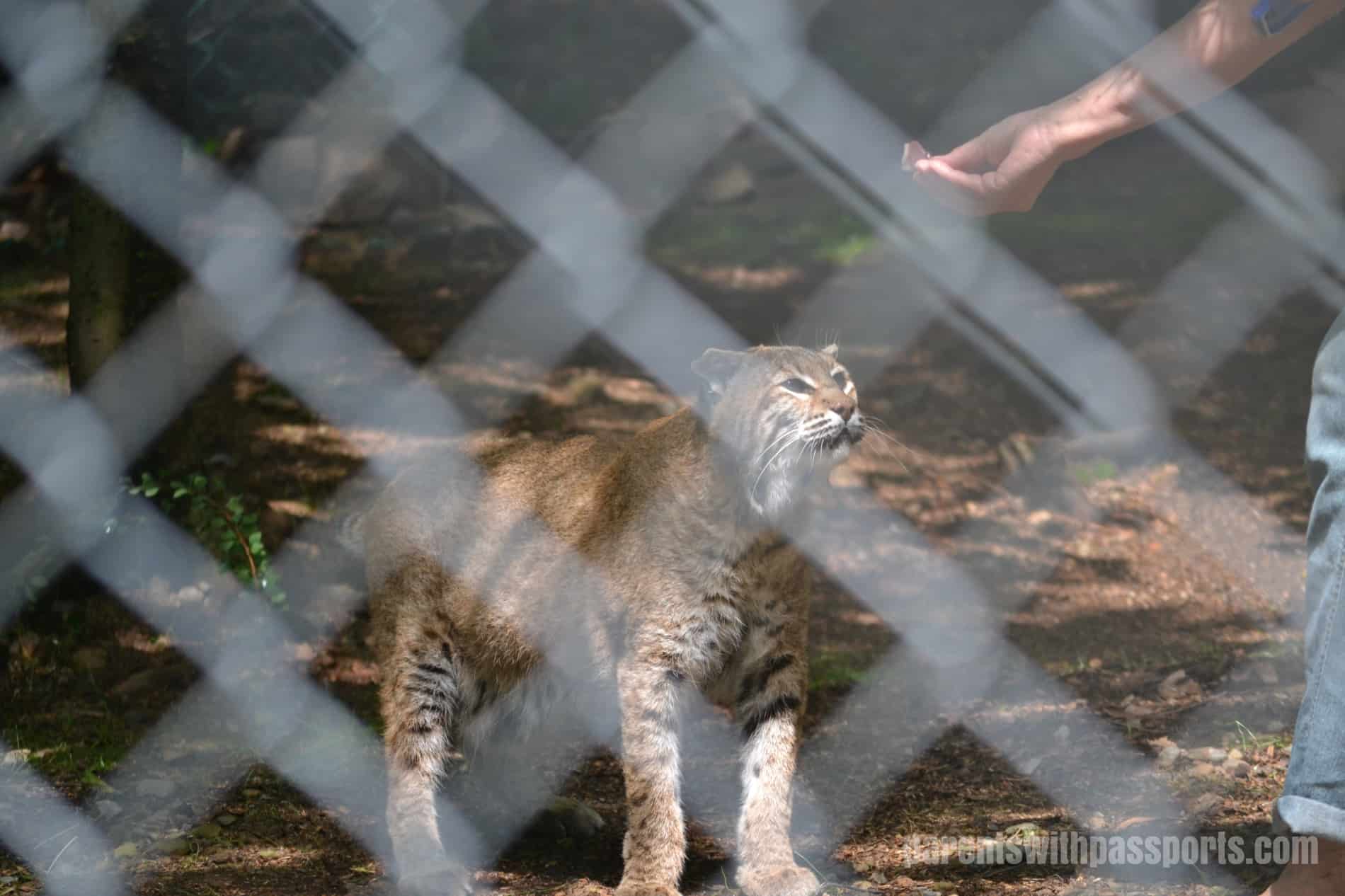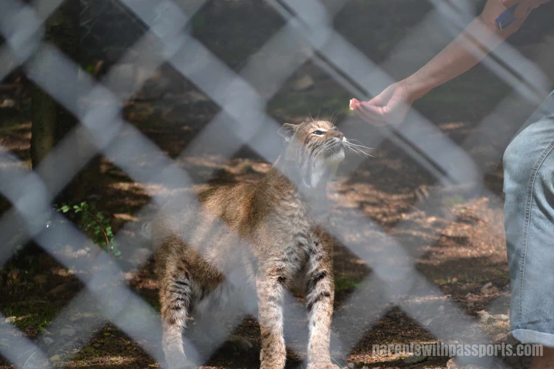 After the wolf part of the tour was over, we left the observation area and went to an area outside the bobcat enclosure.  Becky took over the tour from here and was inside the pen with the bobcats first and then the foxes.  Her knowledge and passion about these two animals equaled Jim’s about the wolves.  You could really feel their love and dedication to the animals.