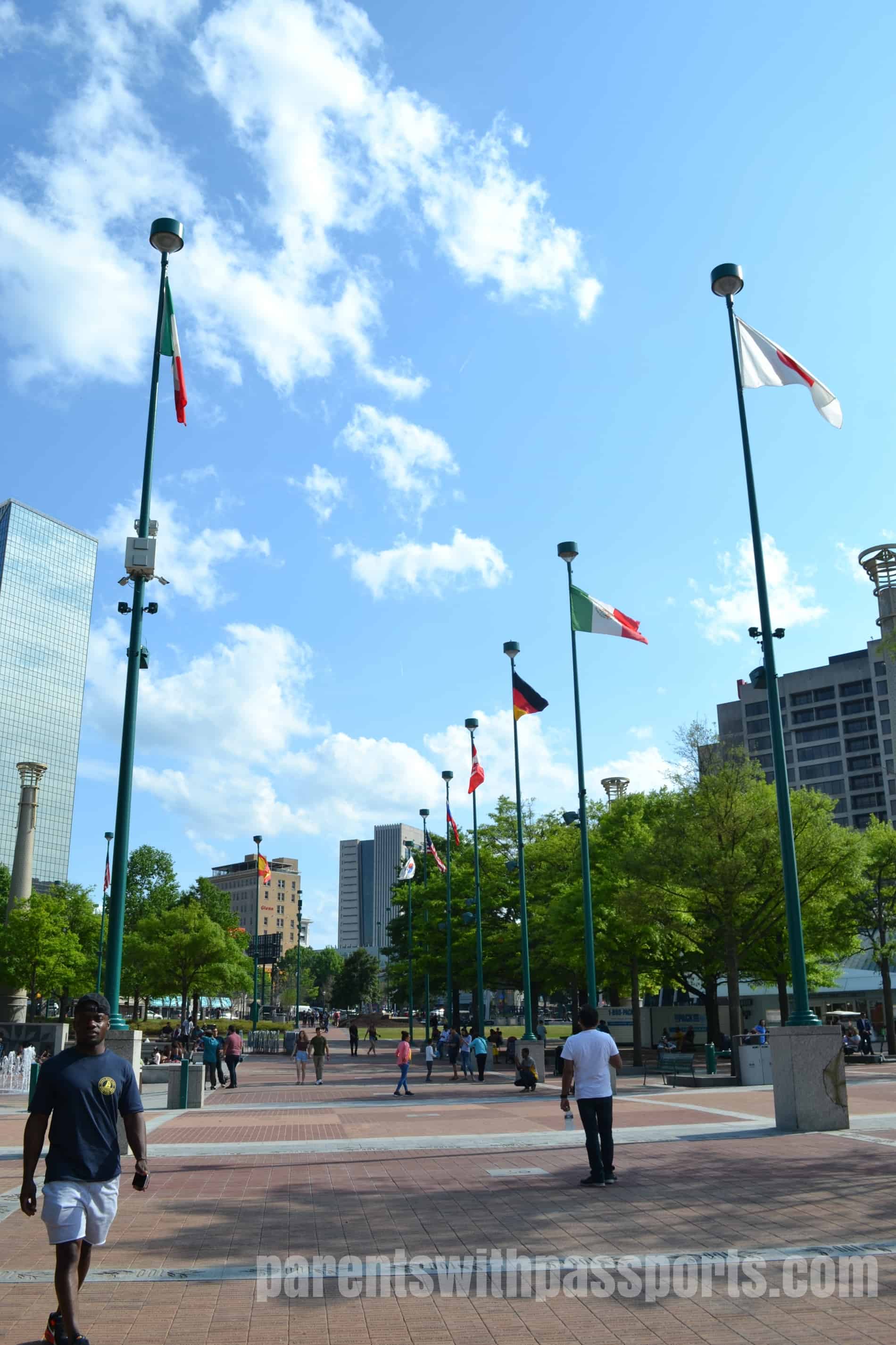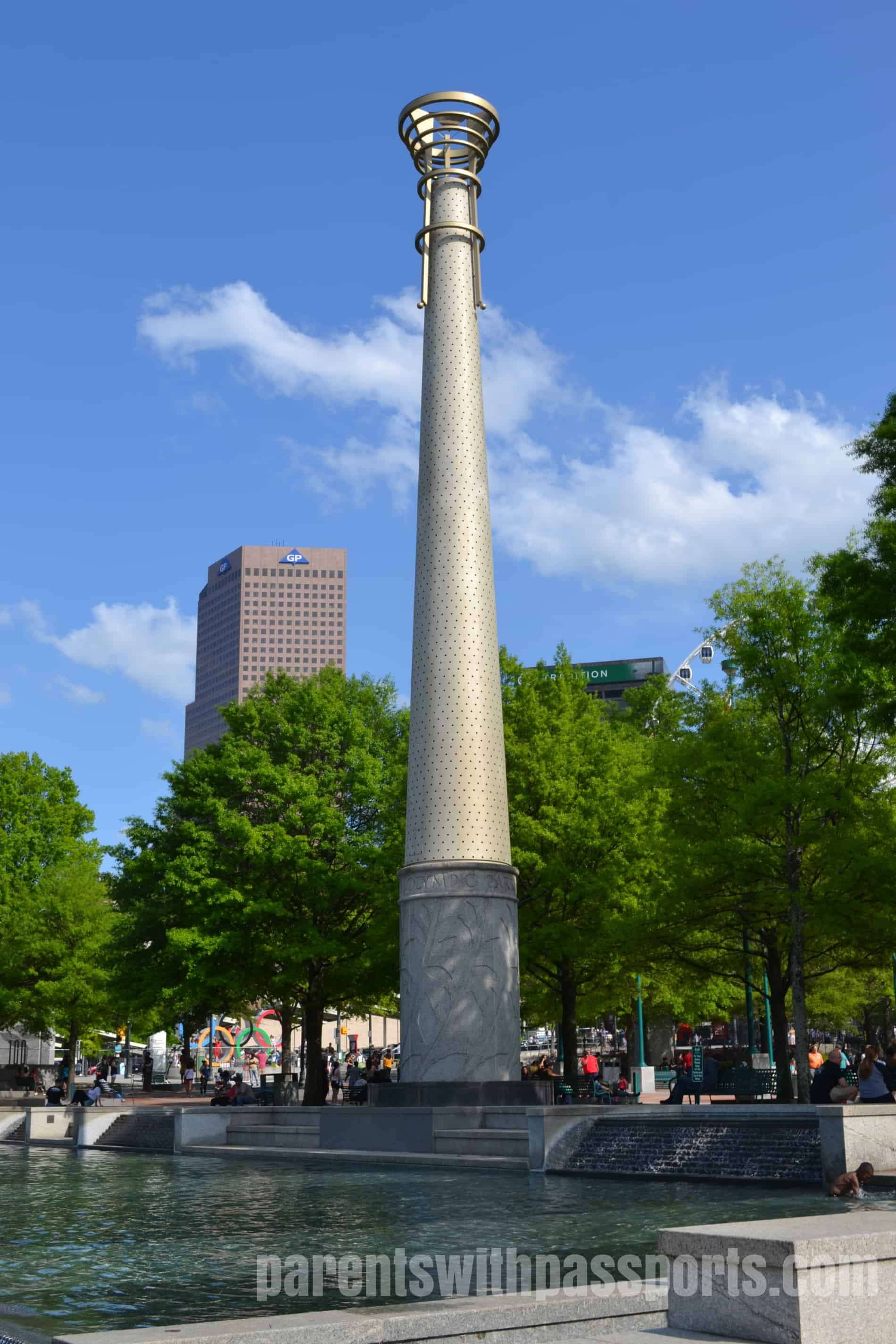 Built for the 1996 Summer Olympics, Centennial Olympic Park is 22 acres of green space in the heart of Atlanta’s downtown area, surrounded by some of the city’s top tourist attractions. We arrived in Atlanta late in the afternoon and decided to walk around the city after checking into our hotel. The Centennial Olympic Park was just a few blocks away from our hotel. We entered the park from the north, after passing by the Georgia Aquarium, World of Coca-Cola, and the Center for Civil and Human Rights. They were setting up for a festival but for now the entire park was open for us to wander.