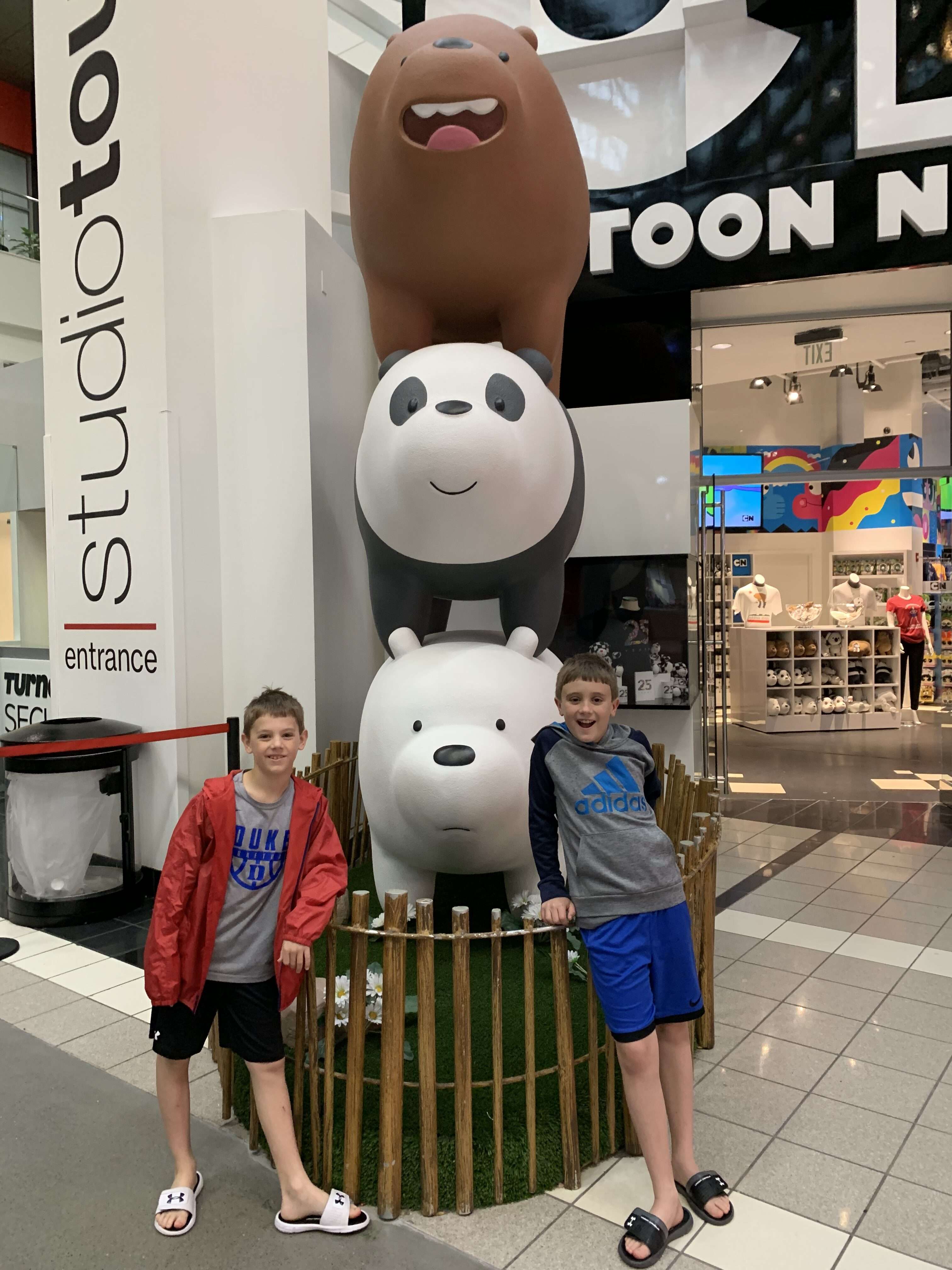 You don’t need to buy a ticket if you are using the CitiPASS book, but you do have to wait on the line to turn in your CitiPASS ticket and get an assigned tour time. Tours run every 20 minutes between 9am and 5pm. The next tour that had available slots started in about 25 minutes so we wandered around the CNN Center and the gift shop. The boys’ interest level definitely shot up when they spotted the giant We Bare Bears statue outside the Cartoon Network section of the store. News is not super interesting to 9 and 11 year olds but cartoons definitely are!