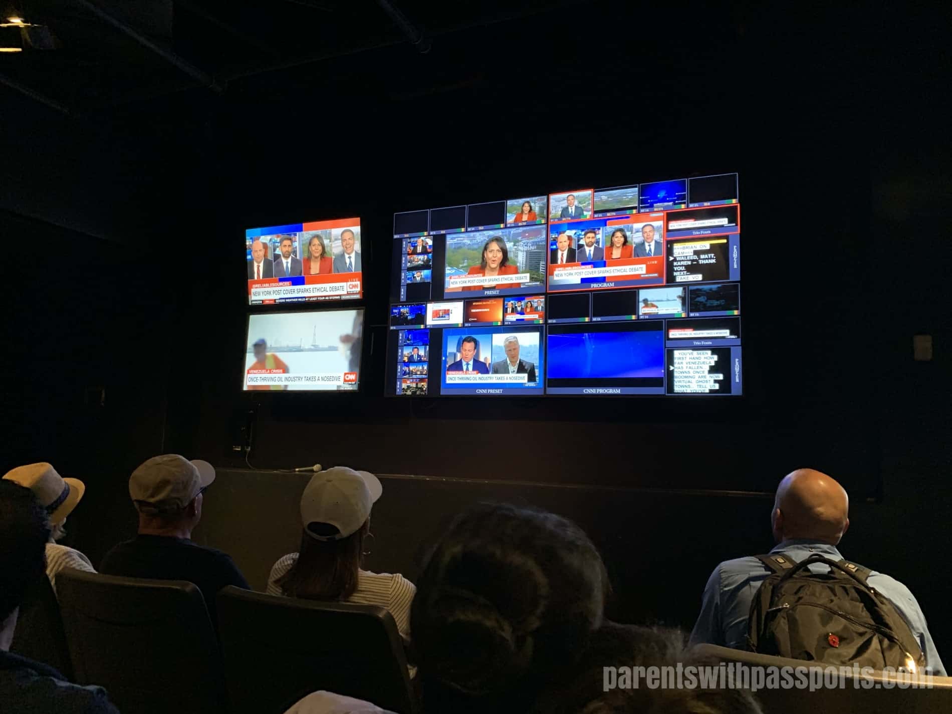 Once inside the globe, we were lead to a small theater which was running multiple CNN broadcasts from around the world. They showed different views that the producers would see during a live broadcast and gave you a little glimpse into the behind-the-scenes directing of the broadcast. Then there was a short film on the history of CNN. The Cable News Network was launched in 1980 as the first 24 hour news network.