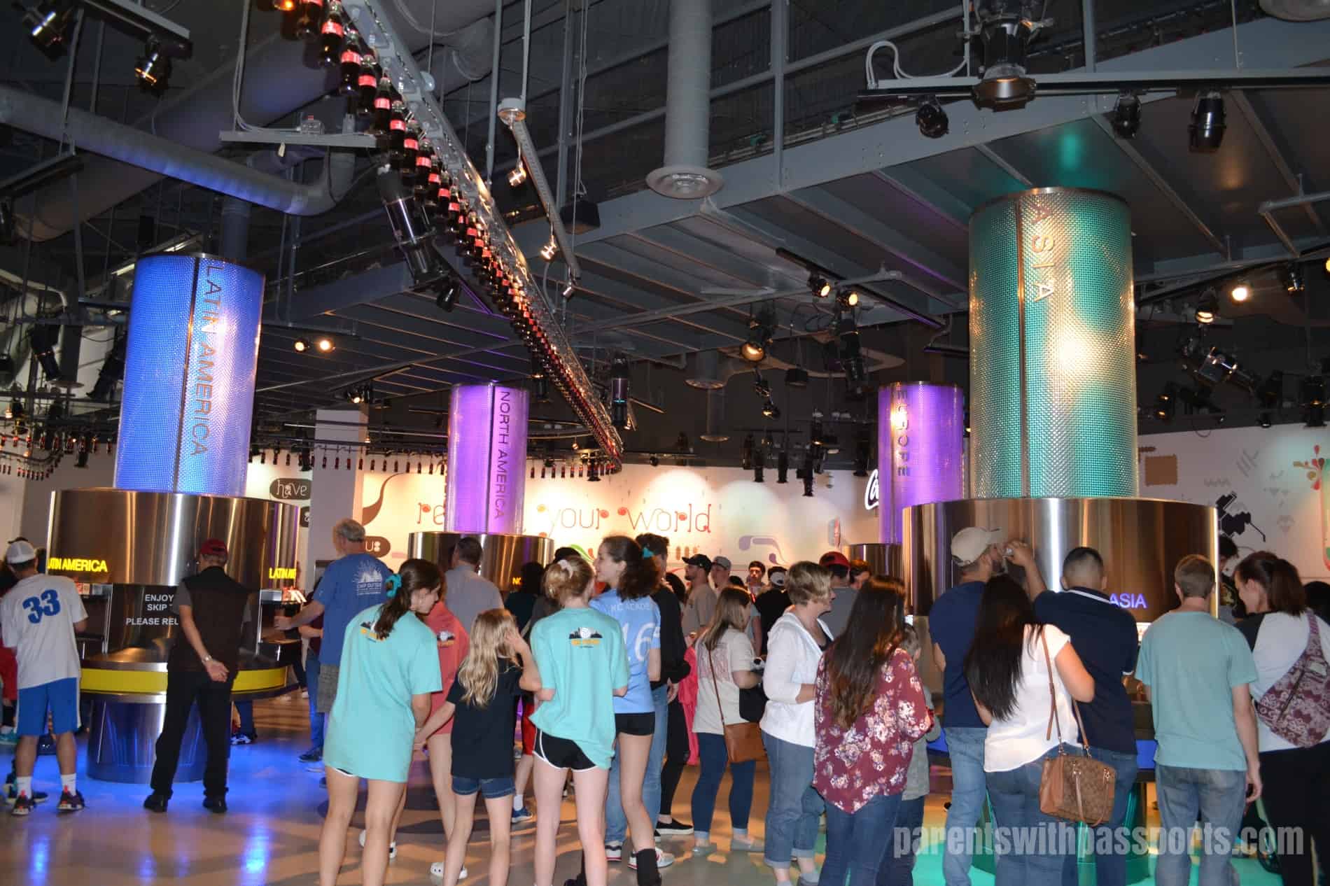 And finally… the moment the boys had been waiting for. We ended our tour in the Tasting Room. Everyone was handed a cup and released into the wilds of the self-serve tasting room. There were 5 stations representing the different continents where Coke products are sold. I wasn’t super brave in my sampling but the rest of my family tried a lot of them and loved every minute (if not every sip) of it.