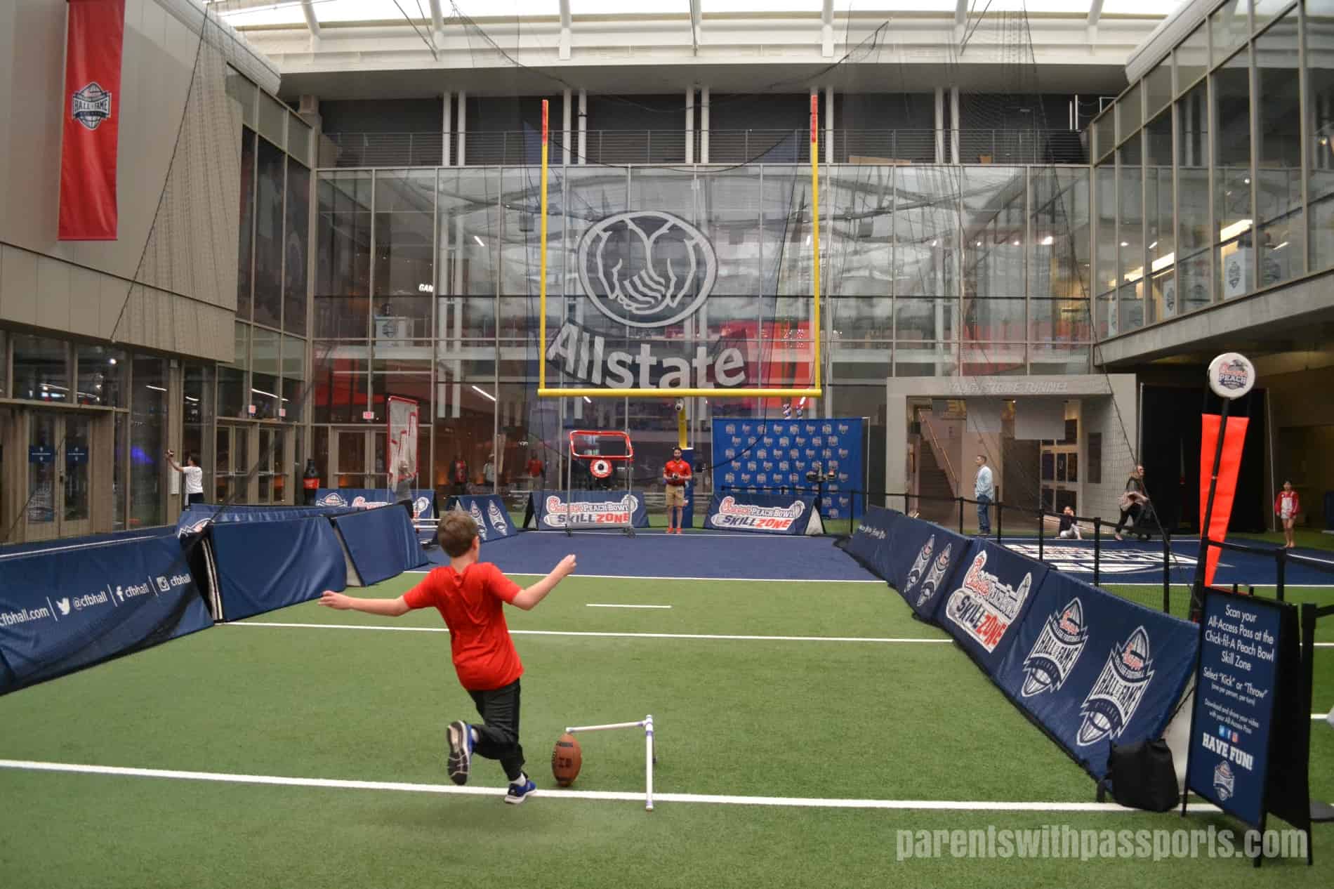 With two Duke alumni in the family, college football is an afterthought in our home. We are all about college basketball. But still, with one ticket left in our CitiPASS book and two hours until closing, we decided that the College Football Hall of Fame was worth a stop. After an emotional visit to the National Center for Civil and Human Rights, burning off some steam (both physical and emotional) was a great idea for the kids.