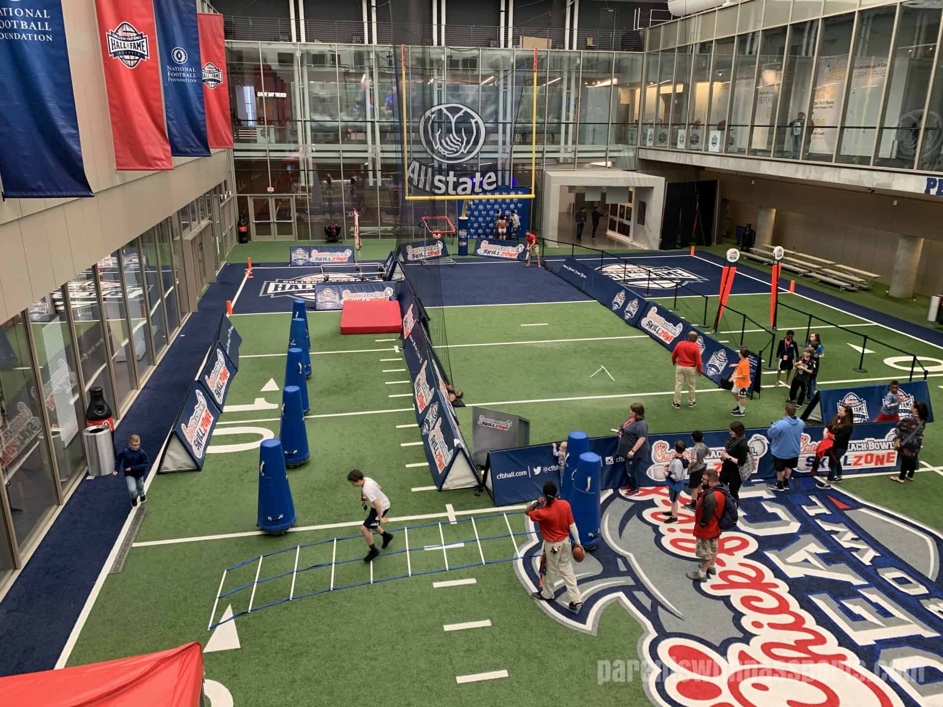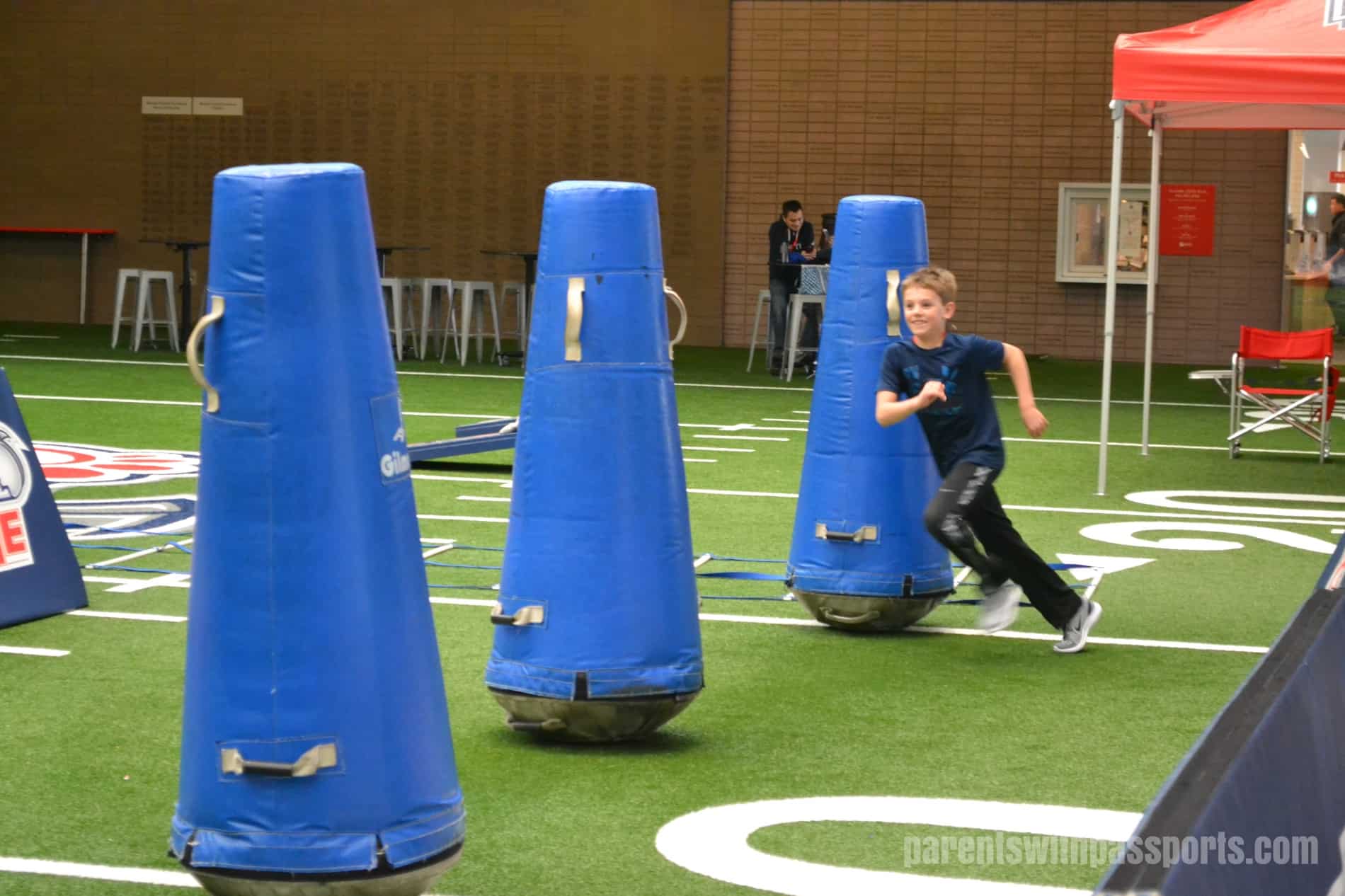 They could run an obstacle course and try to catch a pass, kick a field goal, or throw a touchdown. Tailgating tents, cornhole boards, and other low-key activities are setup for the parents to enjoy or for those in need of a rest. For nearly an hour, the boys ran around and played in there until we literally shut the place down at 5:00. They had an absolute blast.