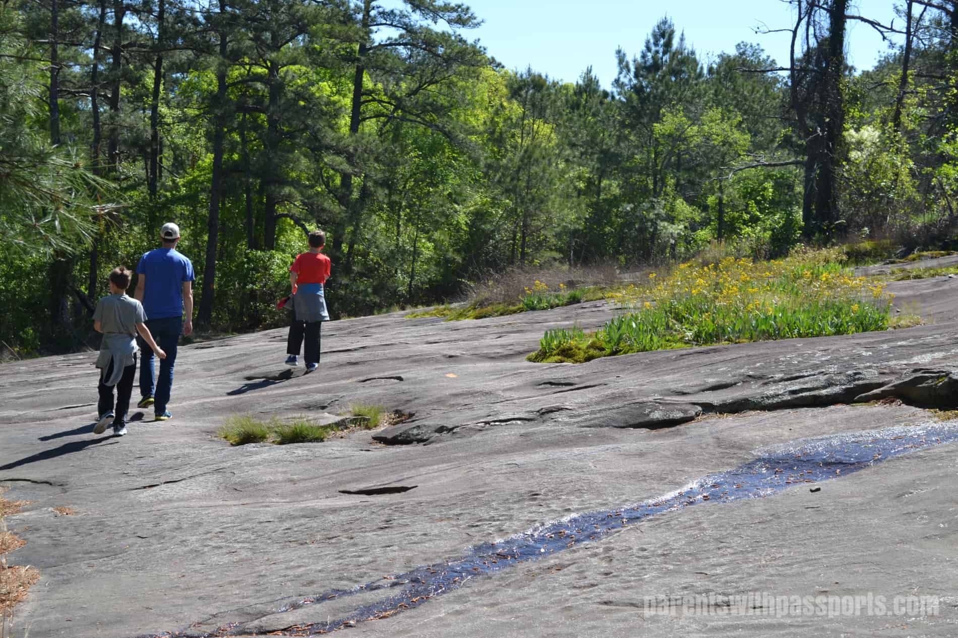 We emerged from the woods at the lake in front of the Confederate Memorial Carving.  Walking in front of the lake definitely gives you the best view of the carving.  You really get a sense of how big it is.  (We were shocked to find out it is larger than Mount Rushmore.  We were also all unanimously less interested in seeing Mount Rushmore after this.)