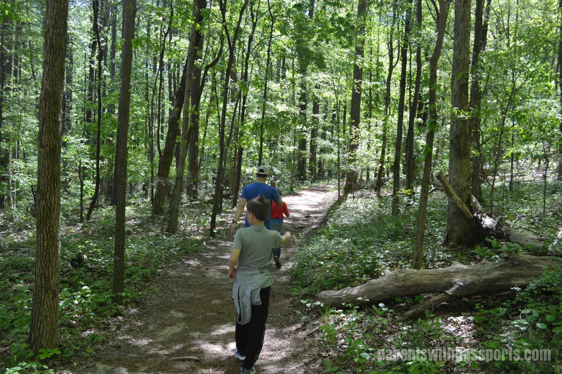 The trail up/down the mountain is approximately 1 mile long. It’s steeper and rockier towards the top and becomes more lush and rolling as you go down. There were plenty of fun places for the kids to play and explore just off the path.