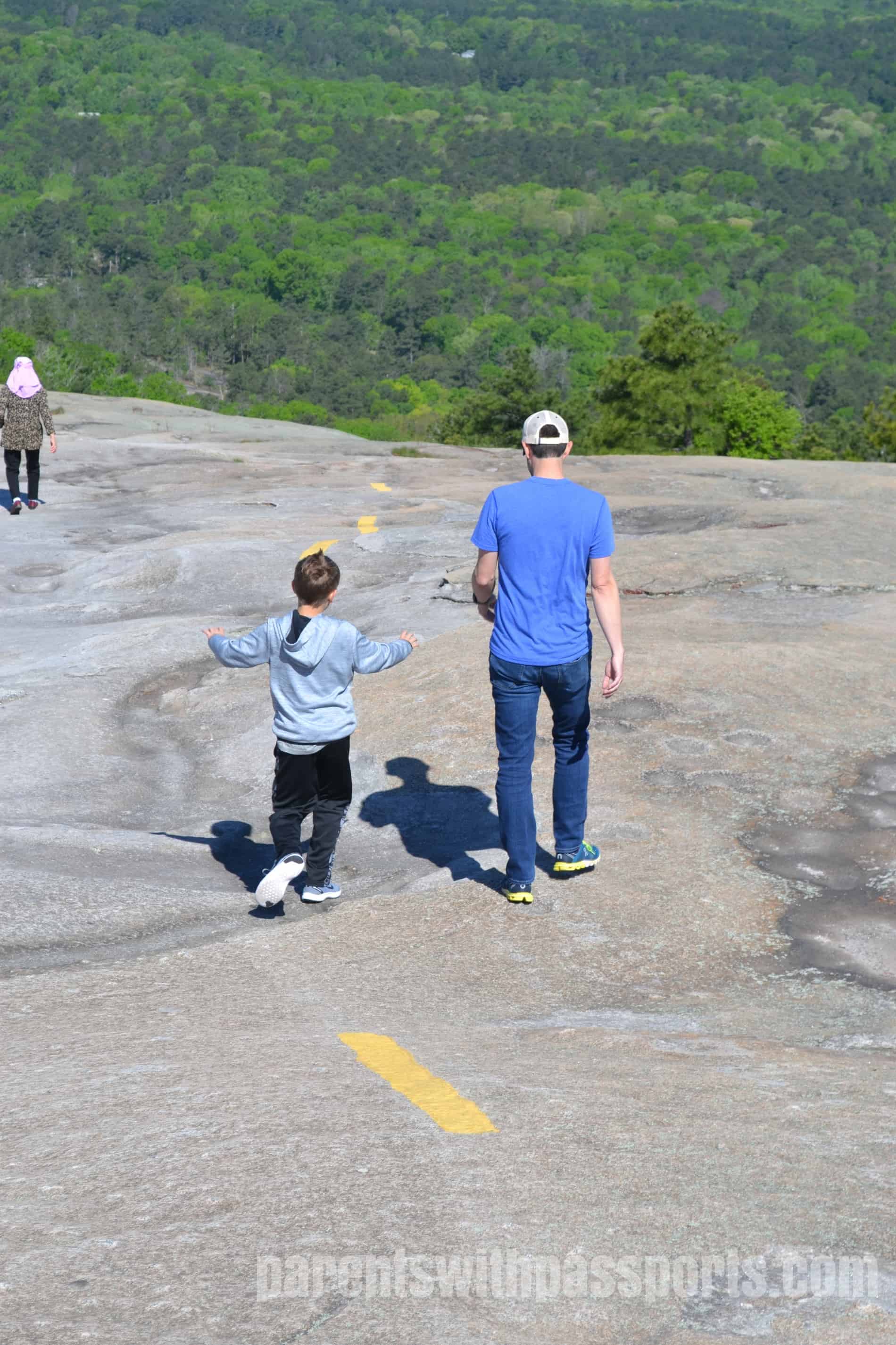 We spent a little over half an hour at the top and then started to make our way down.  Since the mountain is made of granite, there are no cleared paths to follow.  Instead, the path down is marked by a yellow dotted line painted on the rock.  It is steep in spots – be sure to use the handrails where they are available.