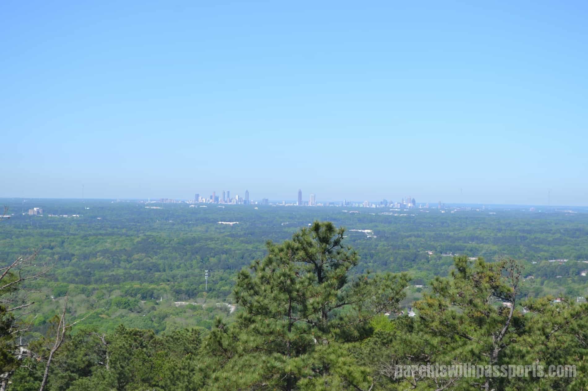 We wandered around the top for a while, taking in the views in all directions.  You can look back over the park and tramway, out towards the mountains in the distance, or check out the city of Atlanta.  I was confused by the fact that there appeared to be 2 Atlantas.  Apparently Buckhead is much bigger (and further away from downtown Atlanta) than I realized.